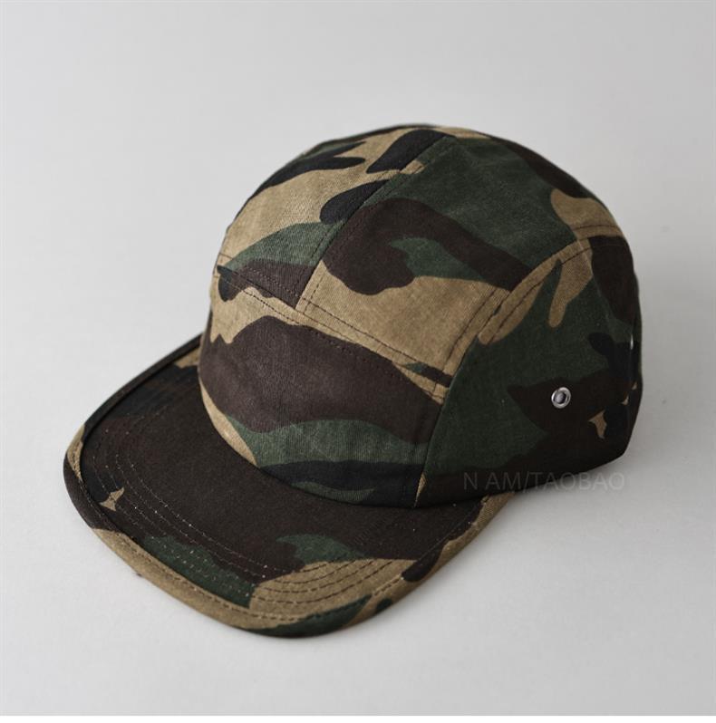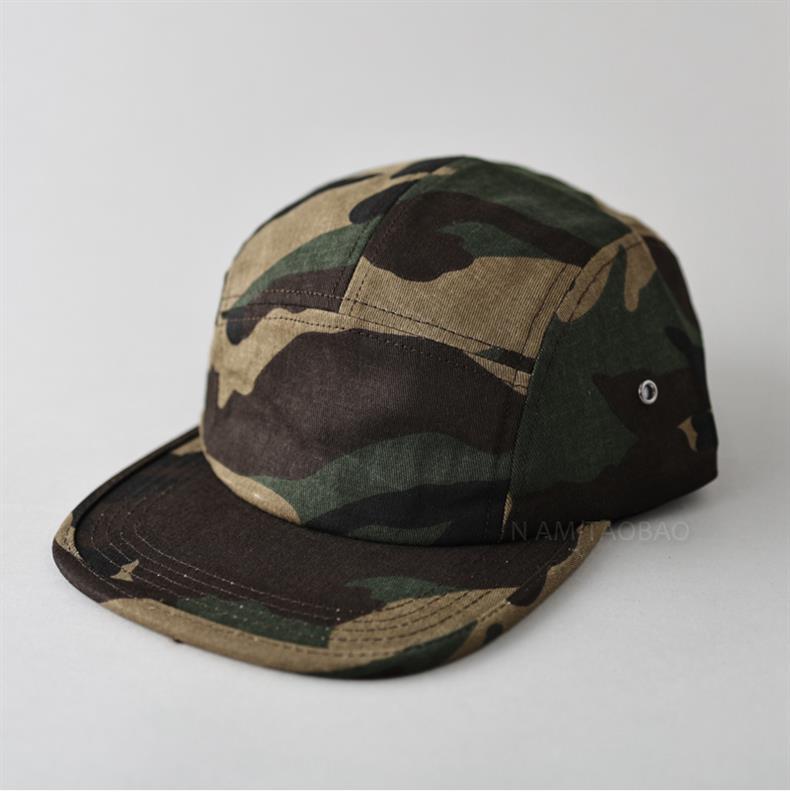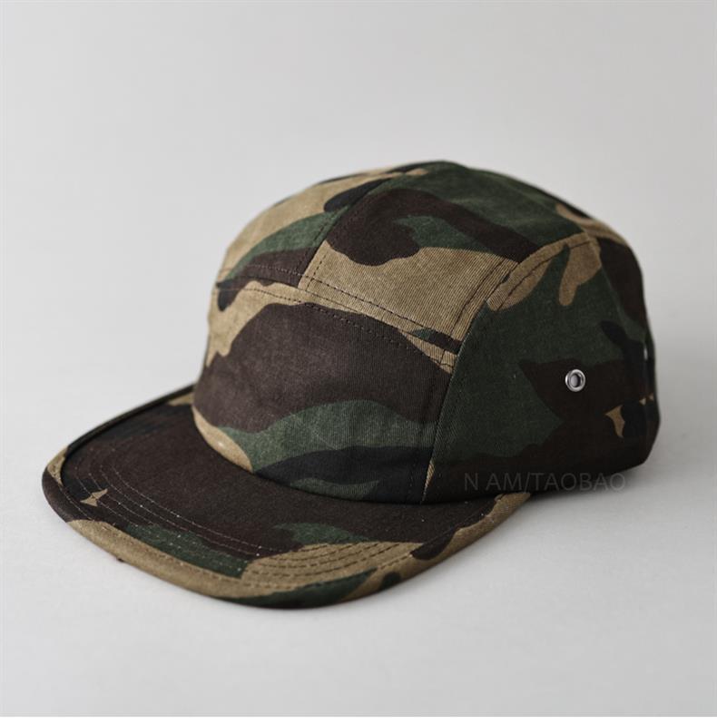 Five-panel flat-brimmed camouflage hat with hemmed edges (picture color