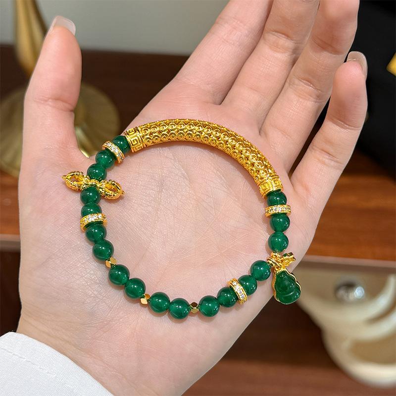 Nuevo Estilo Chino Retro Moda Exquisito Versátil Hueco Diamante Mortero Piedra Natural Cuentas Pulsera Lujo Ligero Joyería de Alta Gama