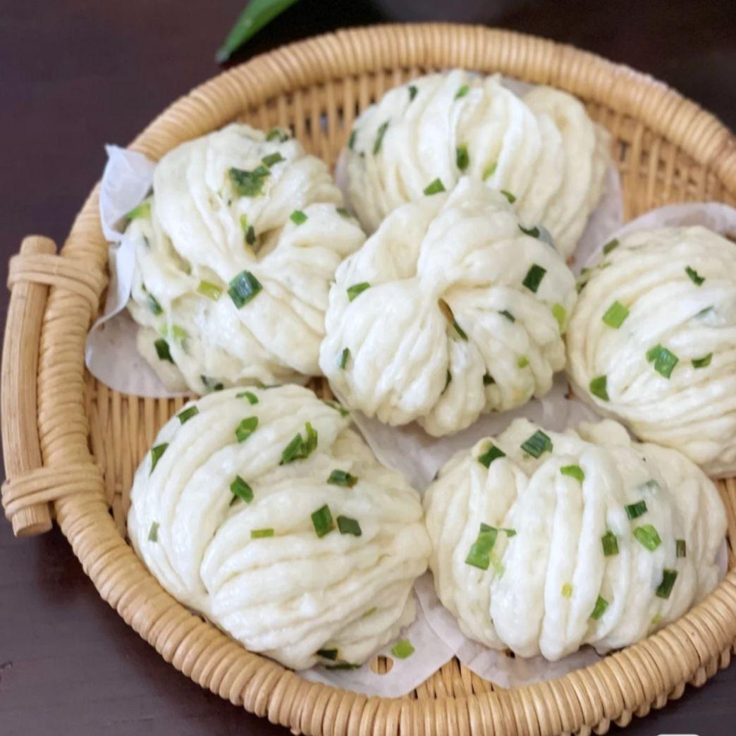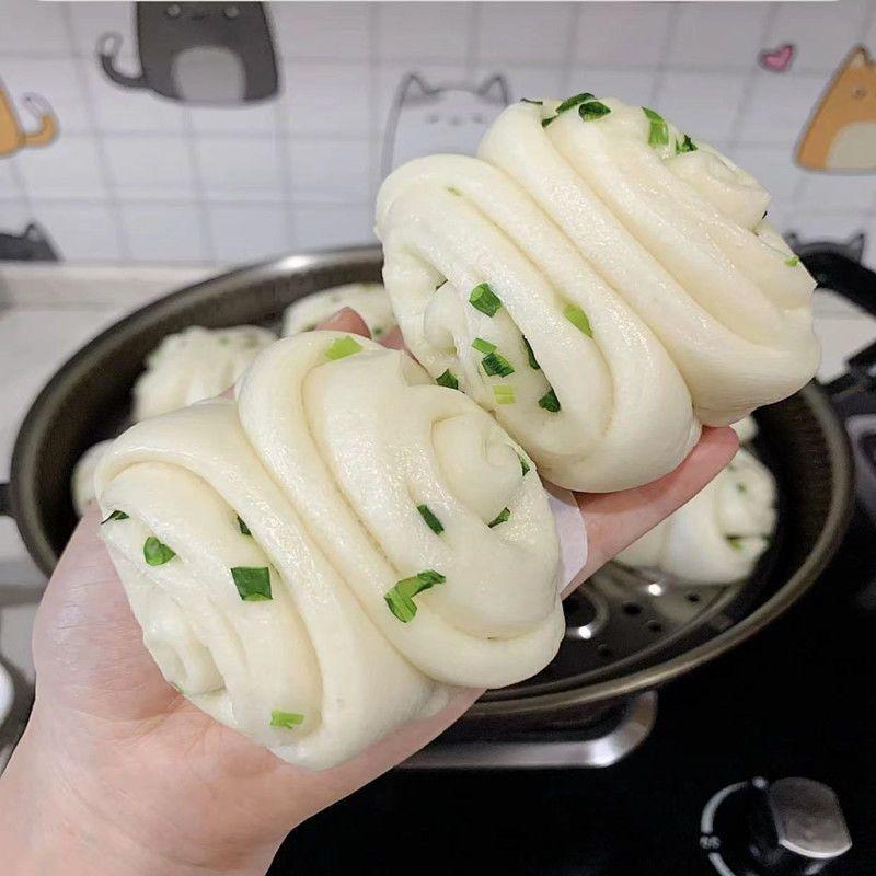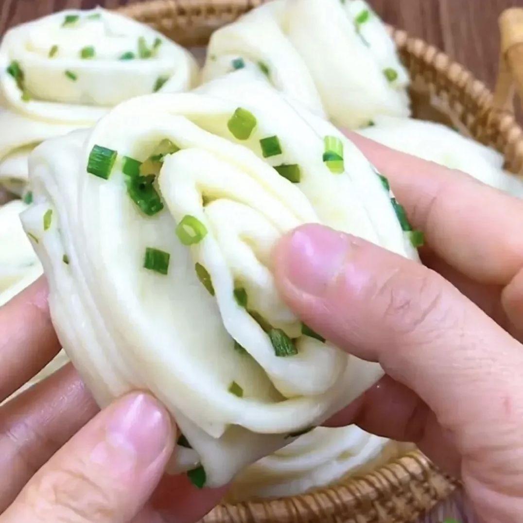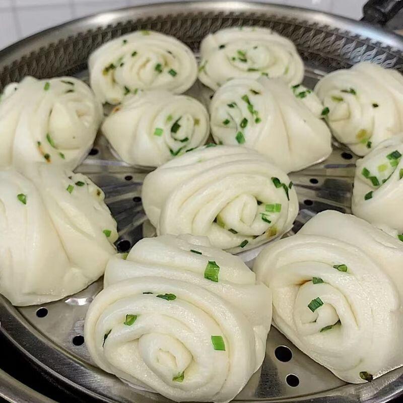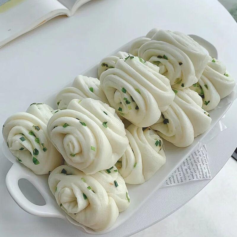 Auténtico Panecillo al Vapor con Rollo de Flor de Aceite de Cebollín Hecho a Mano Desayuno Producto Semielaborado Congelado Rápido Pastelería Lista para Comer Calentada 0.5kg Paquete Familiar Instantáneo