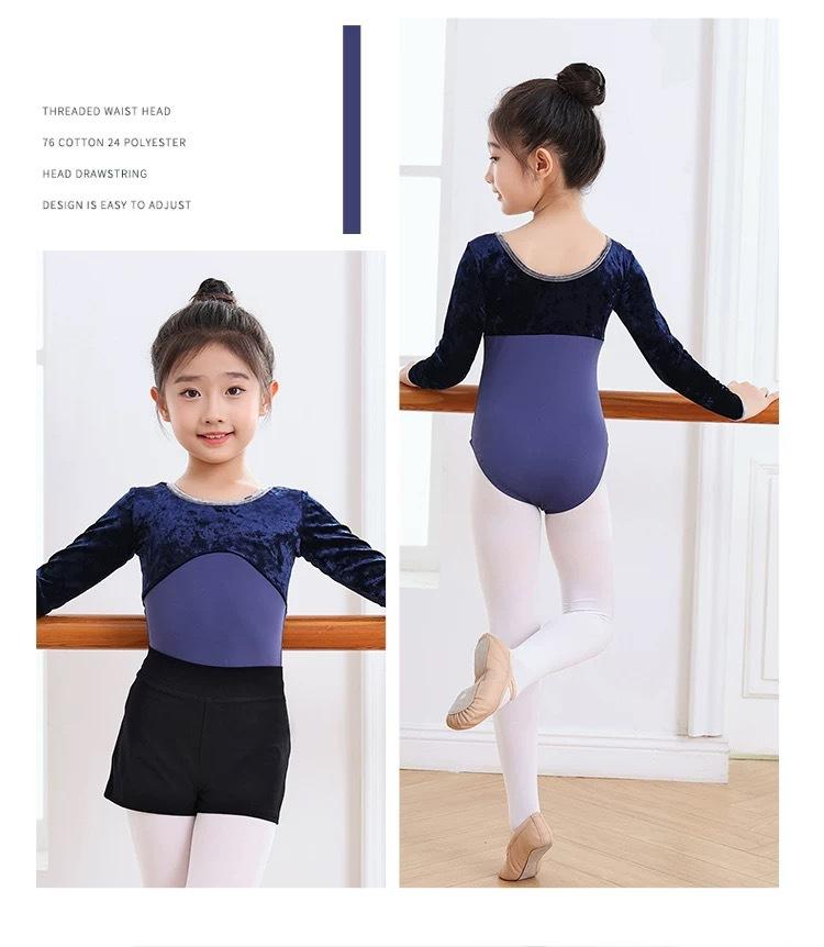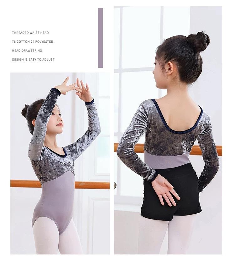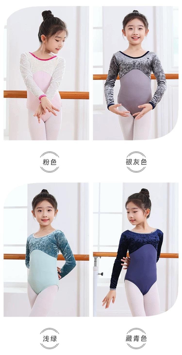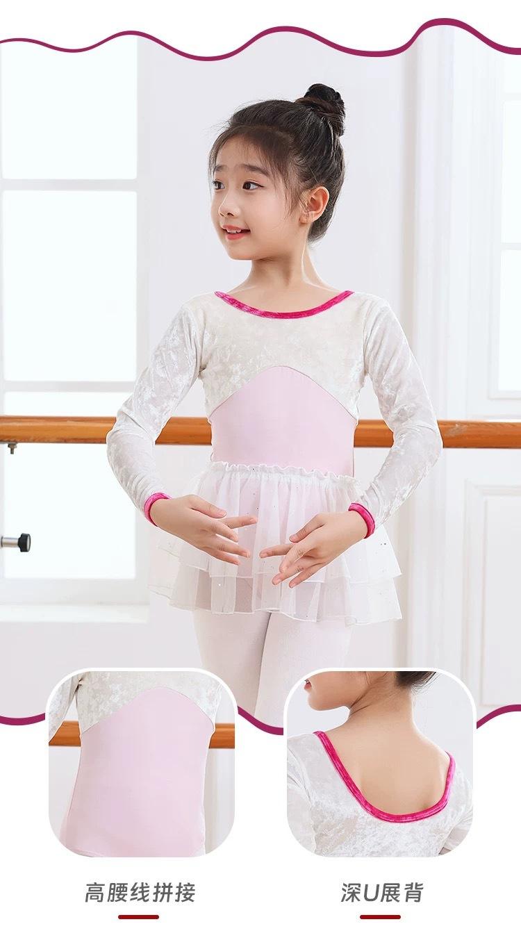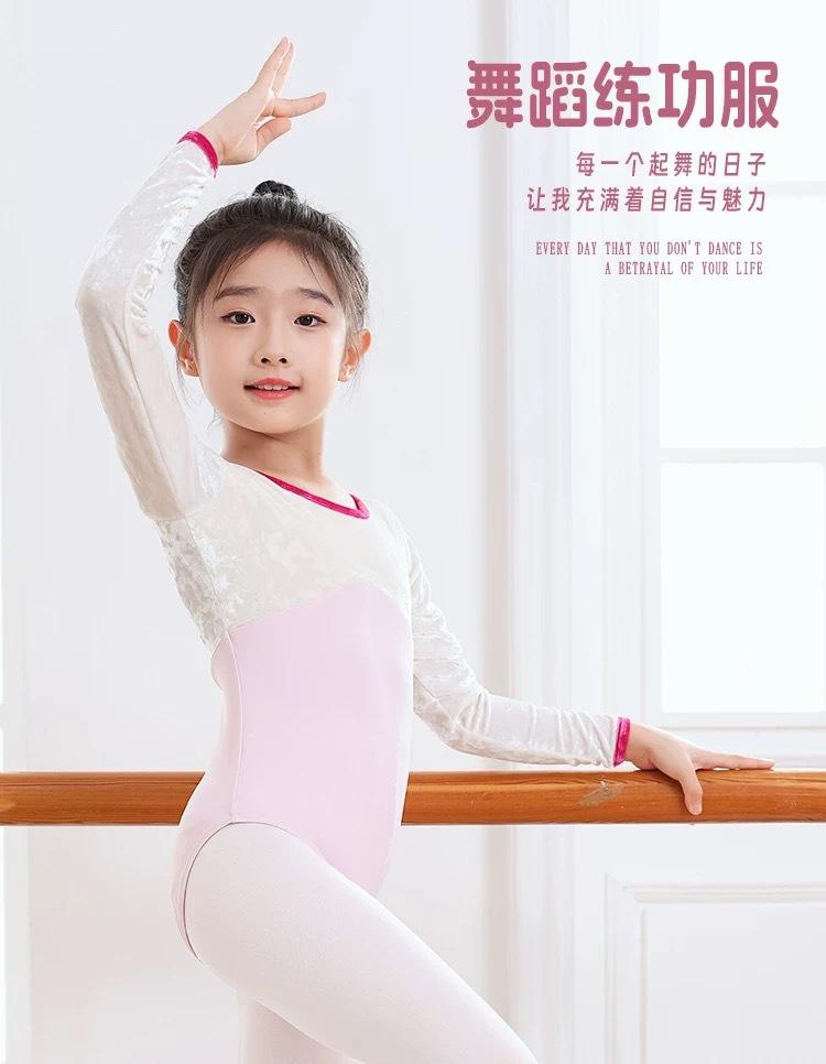 Traje de Danza para Niñas Mameluco de Manga Larga Traje de Práctica con Encaje Traje de Gimnasia Traje de Prueba de Danza China