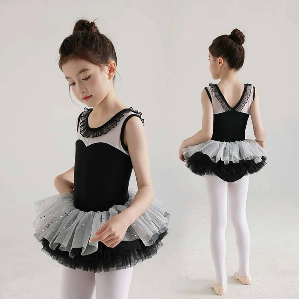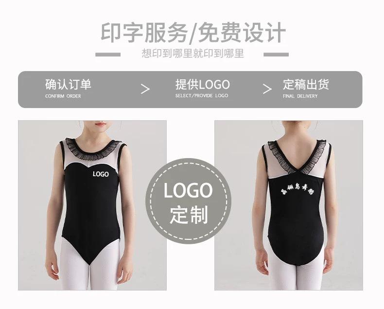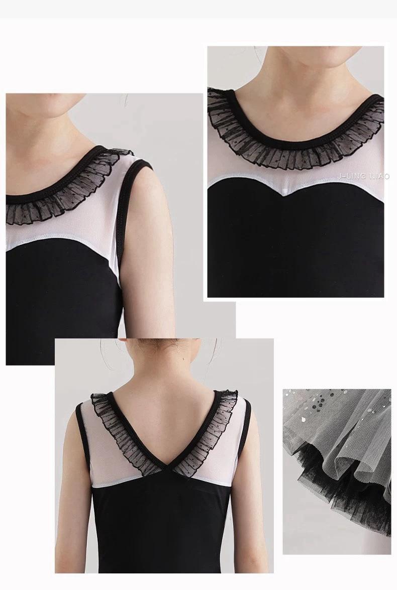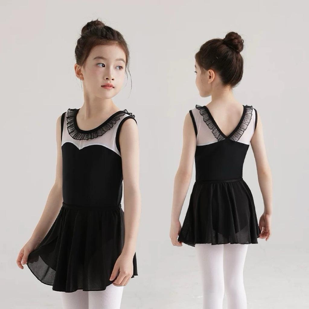 Traje de Danza de Verano para Niños con Manga Canssleeve Traje de Entrenamiento de Ballet con Cuello Oreja Encaje Traje de Gimnasia Enterizo para Niñas