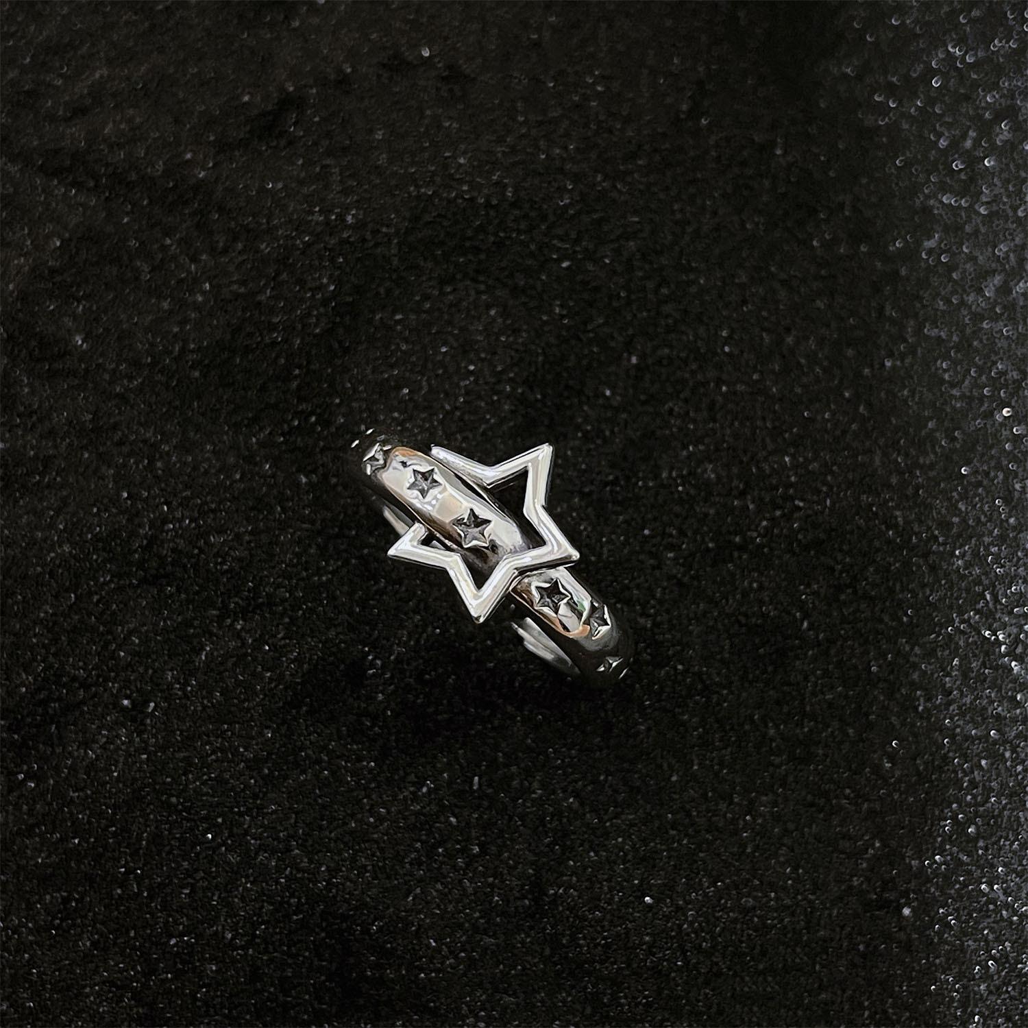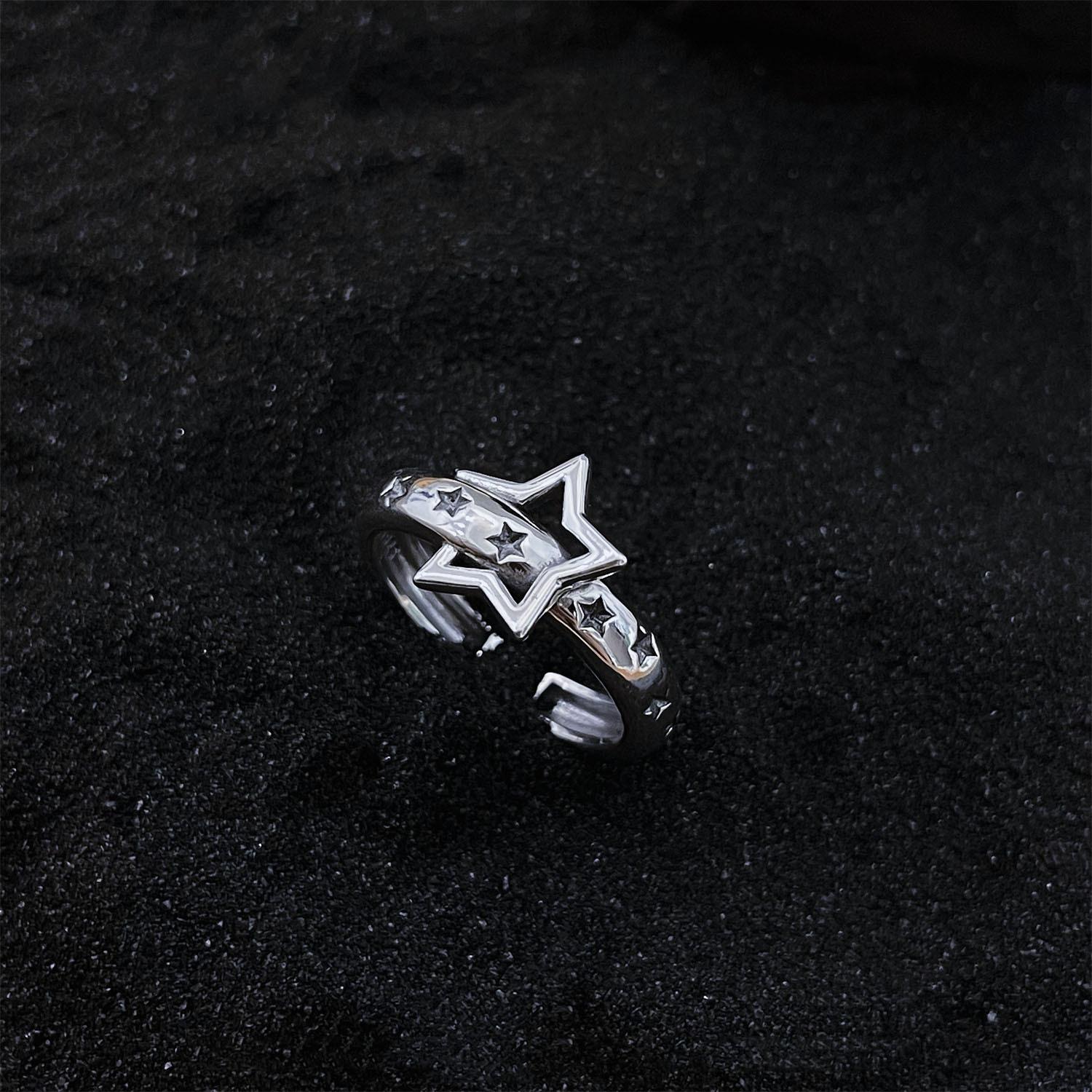 Anillo de Estrella de Cinco Puntas Vintage Anillo de Estrella para Dedo Estilo Frío para Mujer Moda Combinable Creativo Anillo Abierto