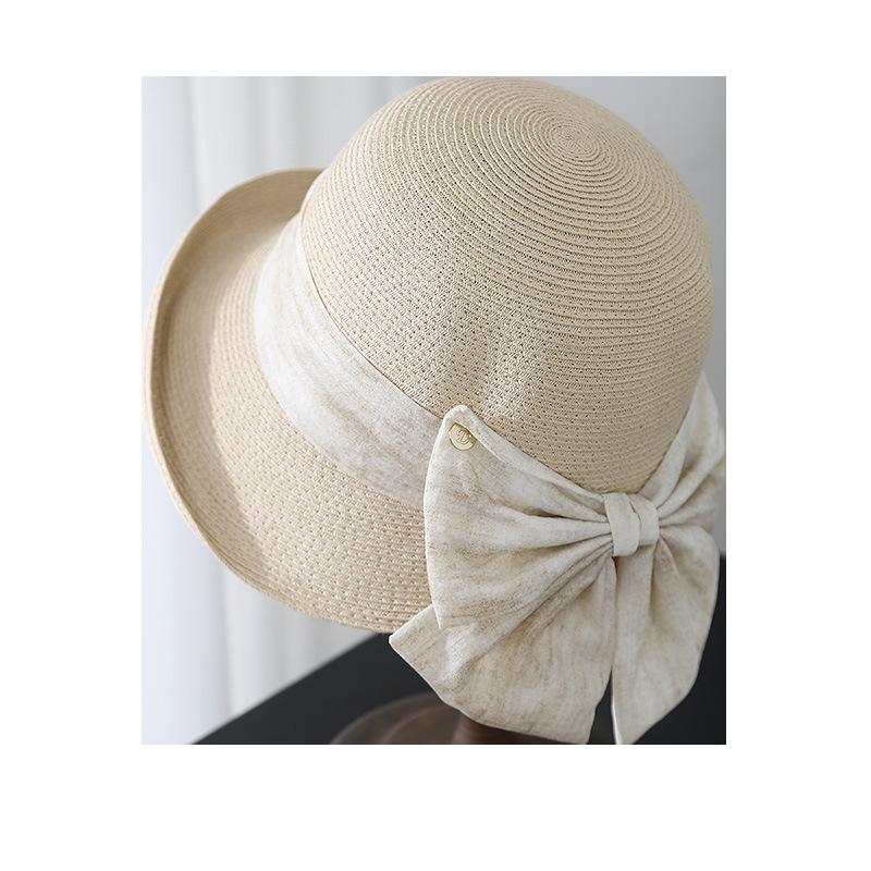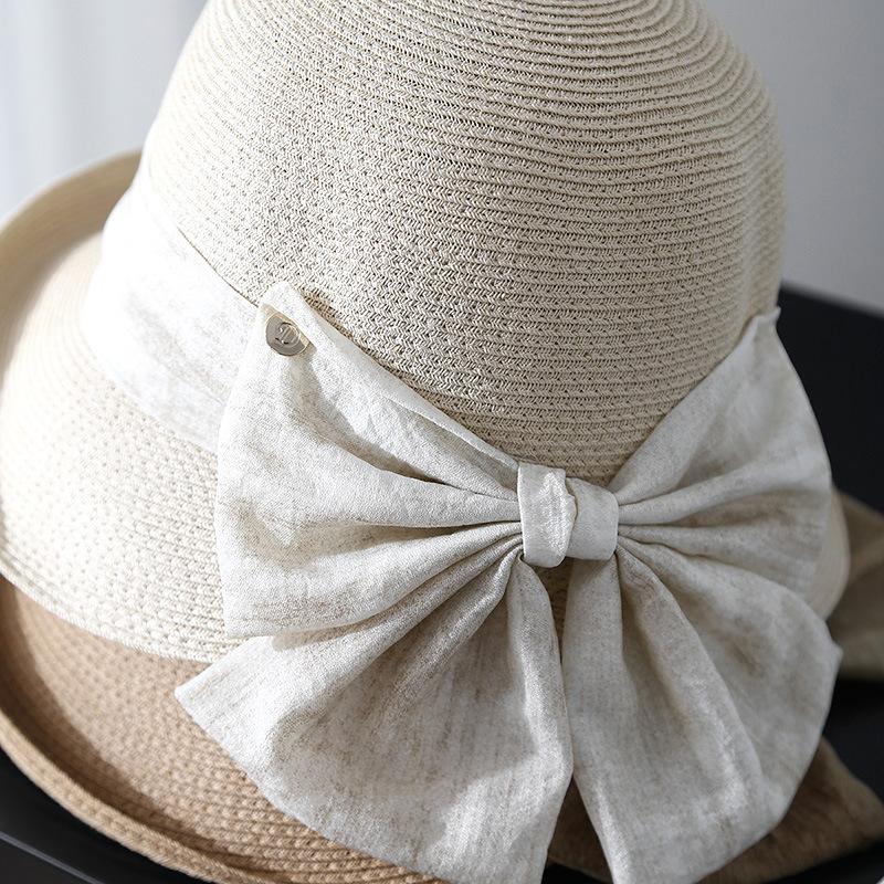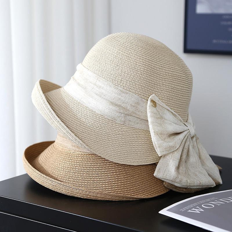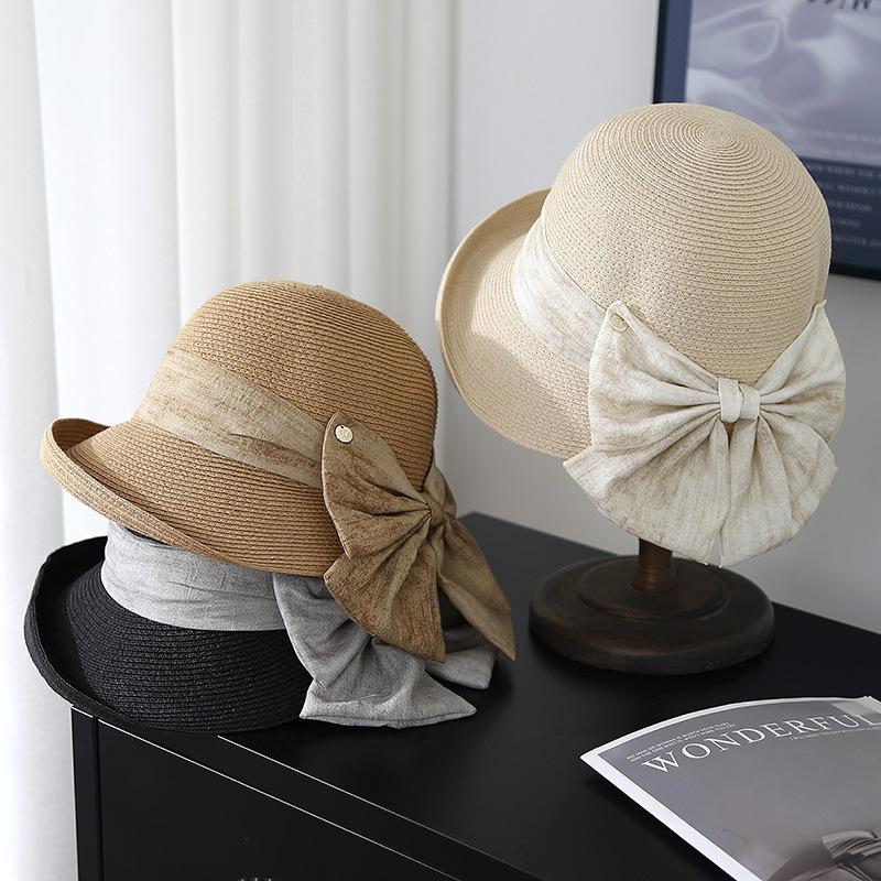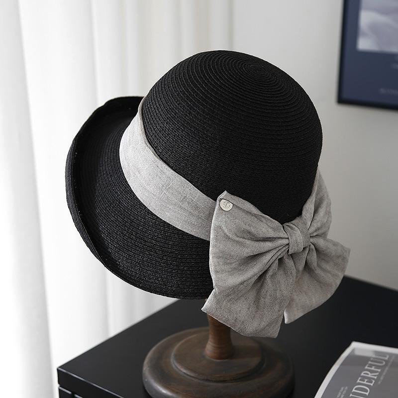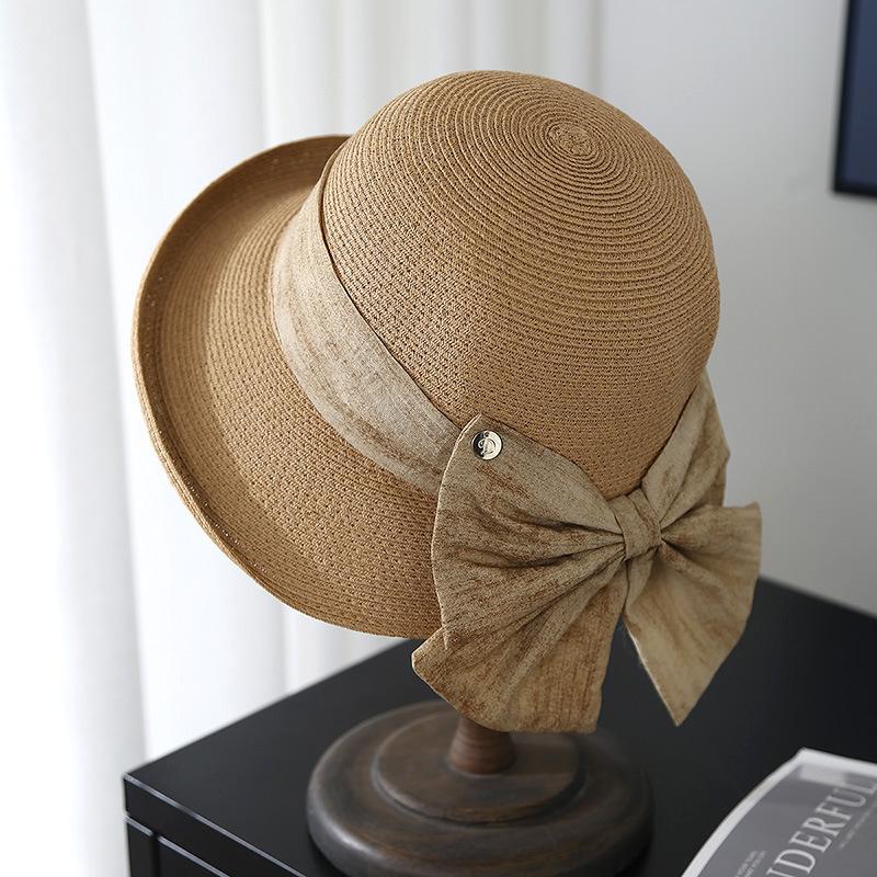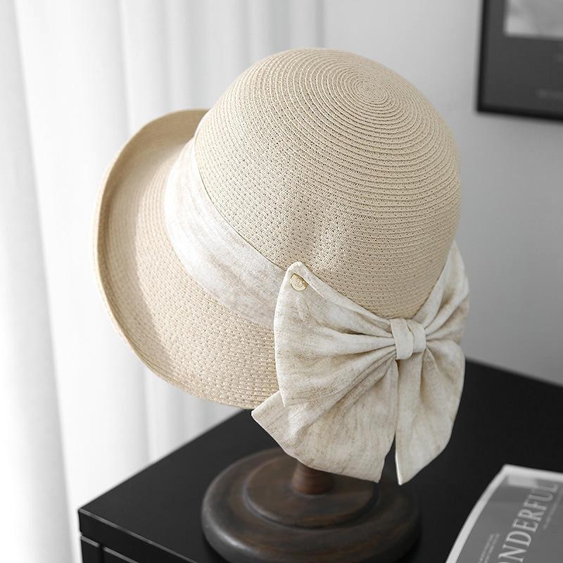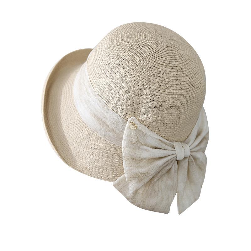 Elegante Sombrero de Cubo Estilo Hepburn para Mujer, Nuevo Sombrero de Sol de Paja de Verano, Sombrero de Sol Versátil con Protección Solar para Exteriores