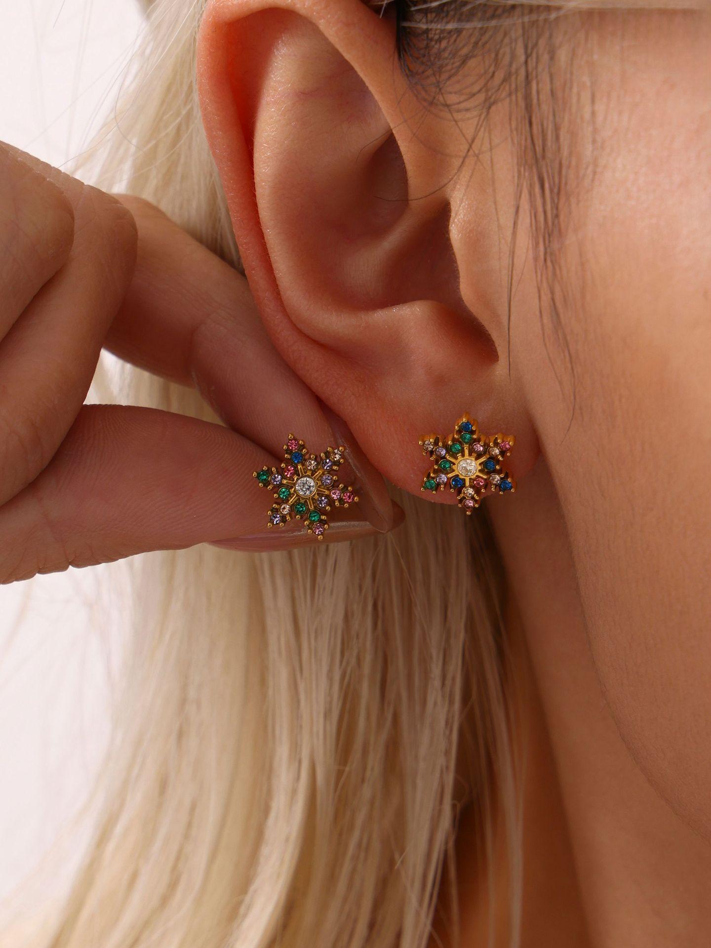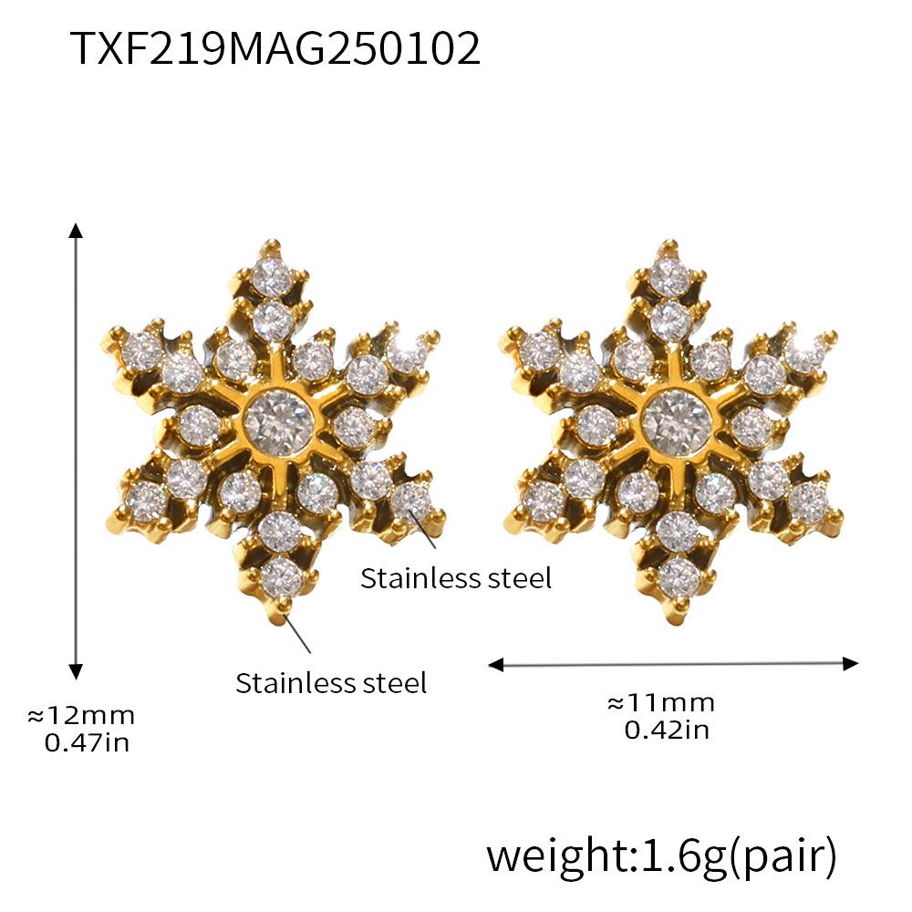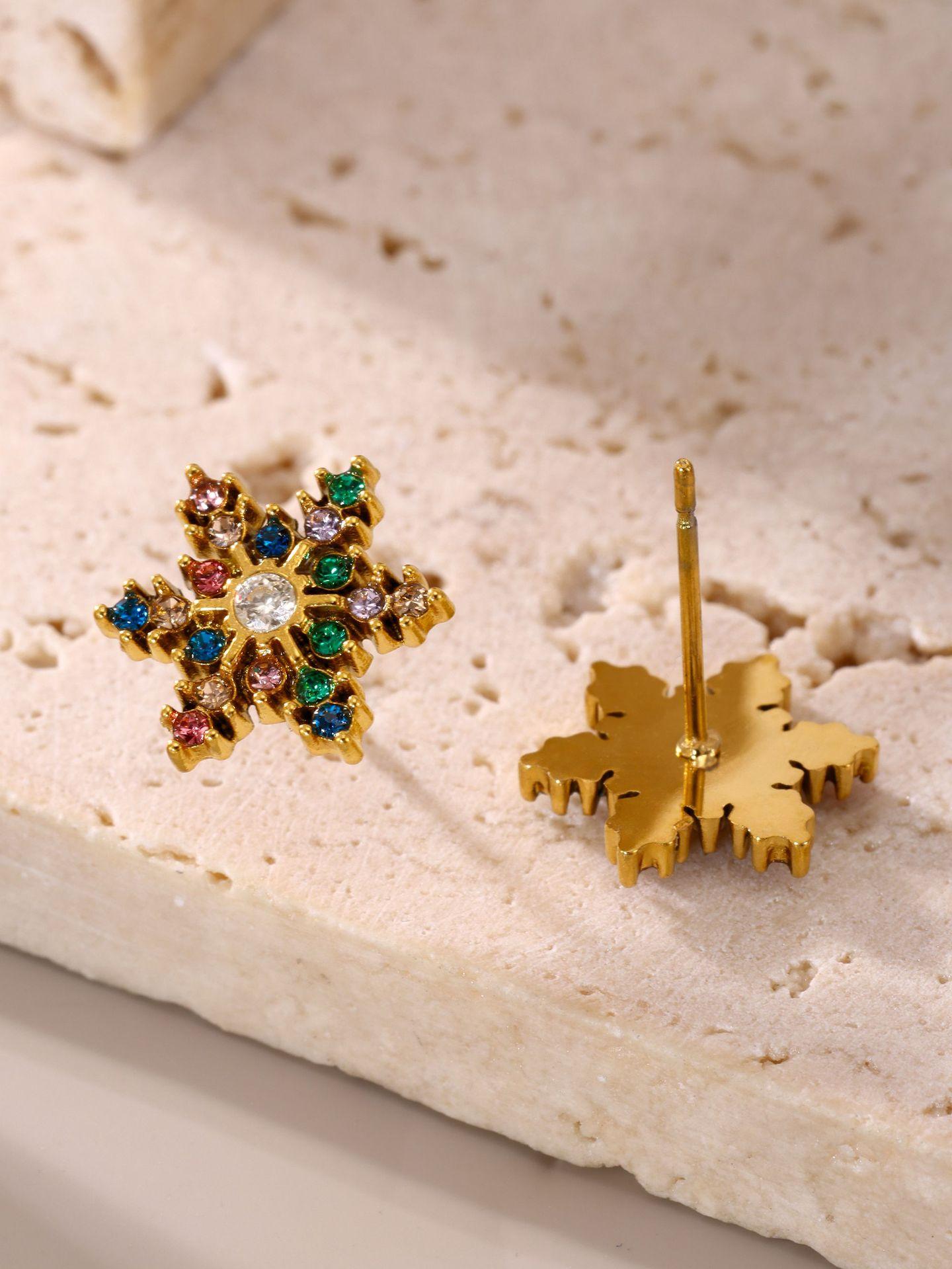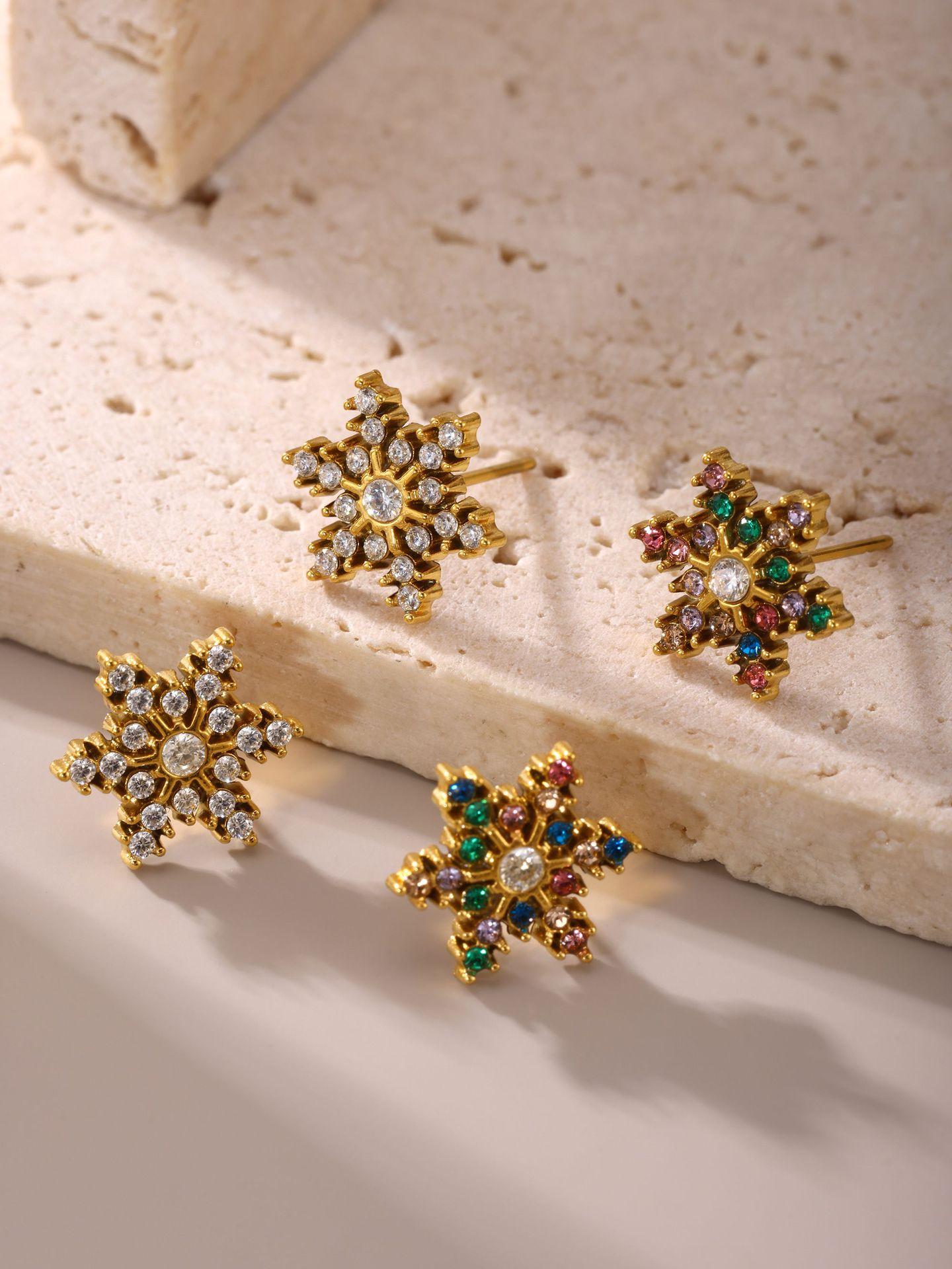 TXF219-Golden Snowflake Zircon Earrings, TXF219-Gold Mixed Color Zircon Earrings
