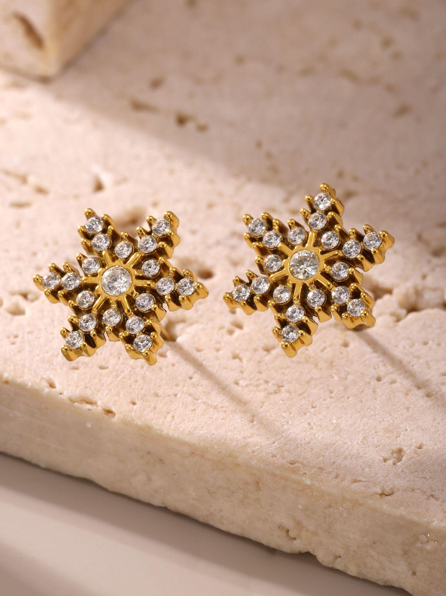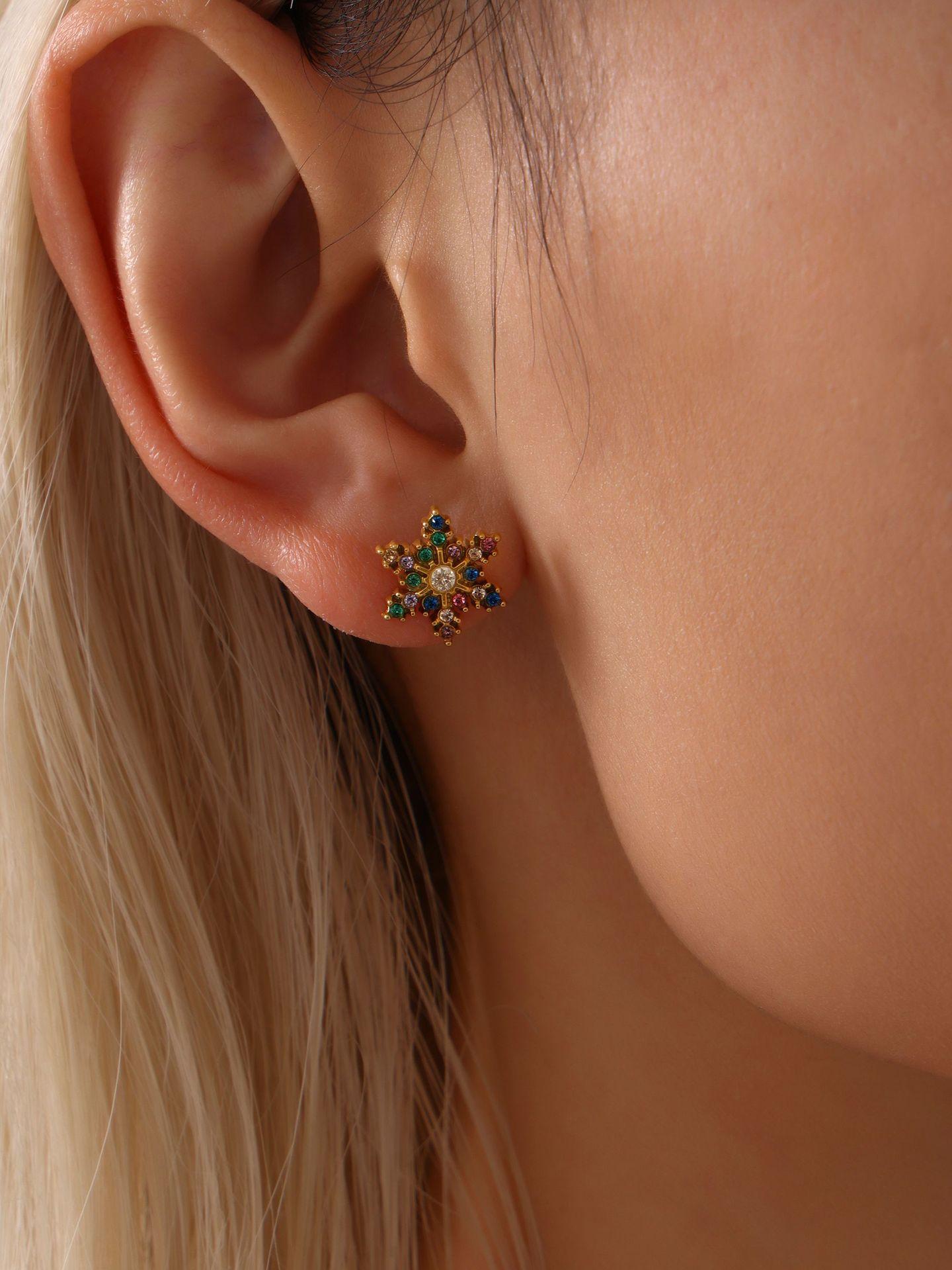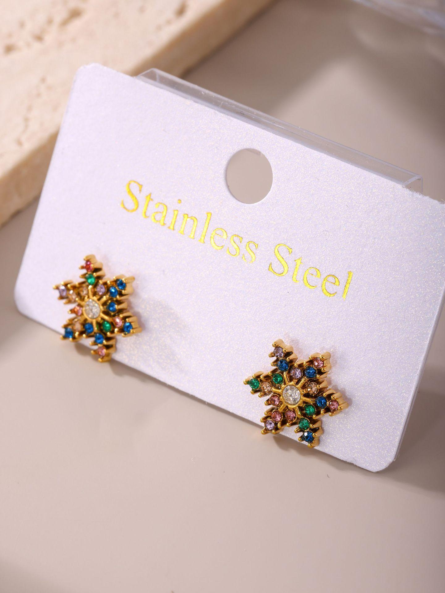 TXF219-Golden Snowflake Zircon Earrings, TXF219-Gold Mixed Color Zircon Earrings