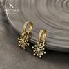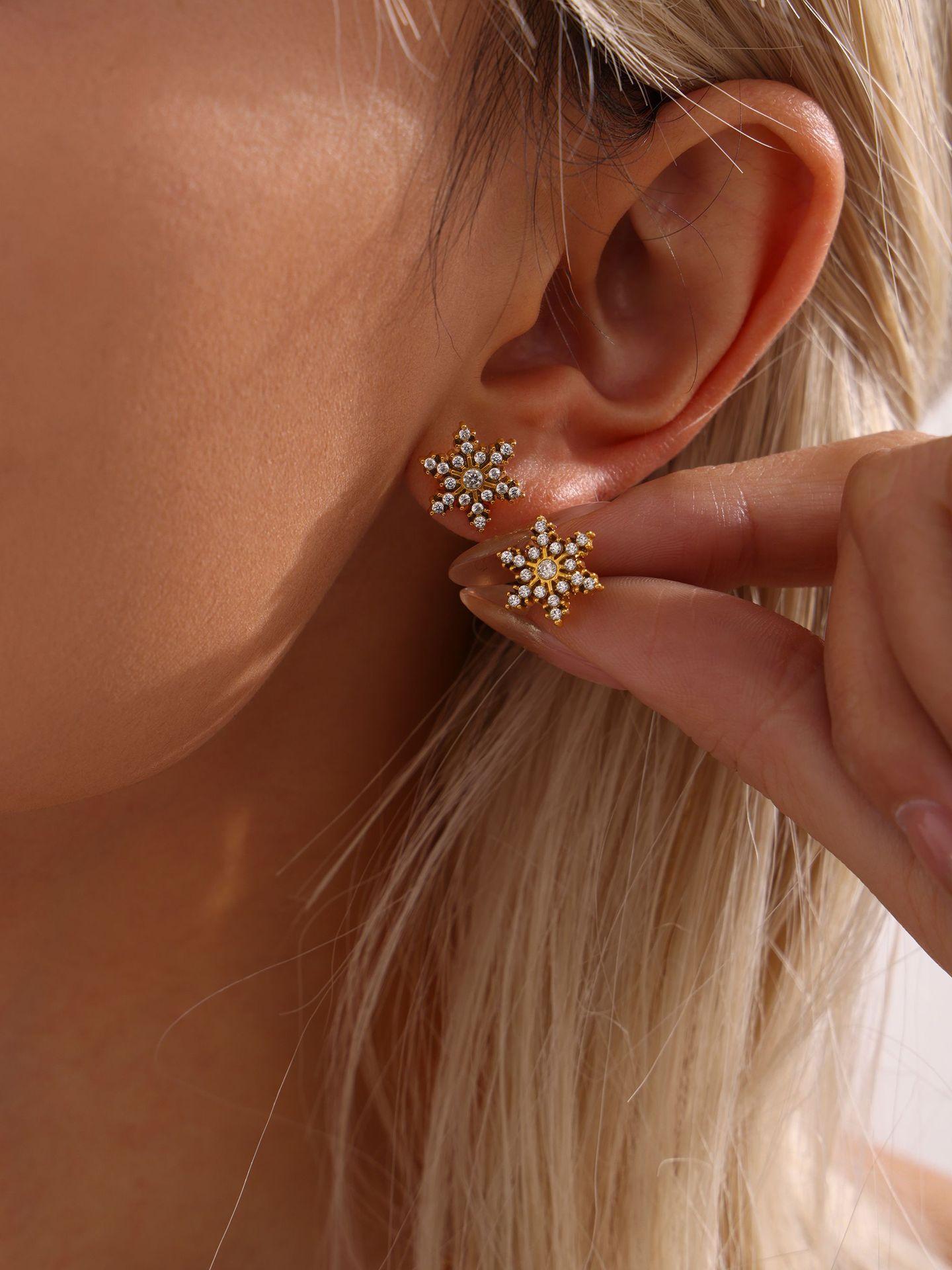Brincos Oumika feitos à mão com zircônia embutida de floco de neve, brincos de aço titânio da moda, temperamento requintado, banho PVD de ouro 18K
