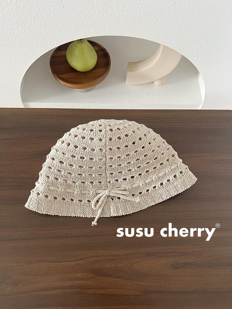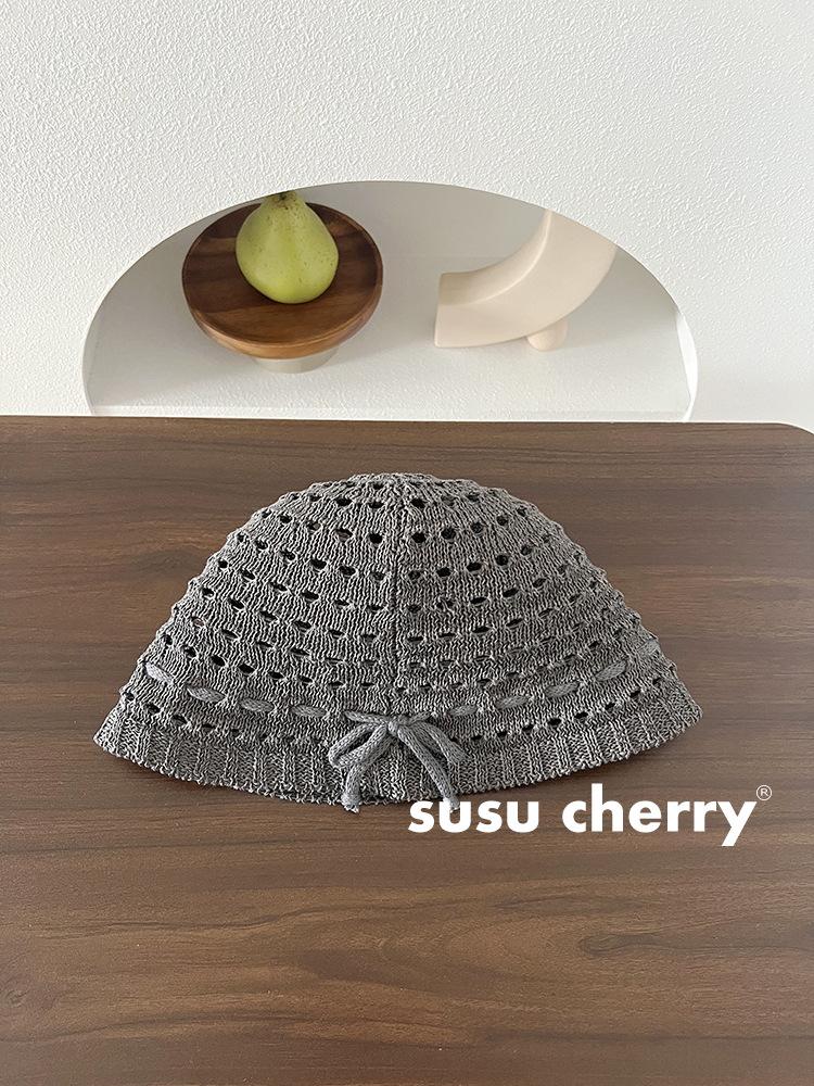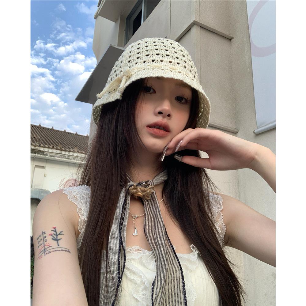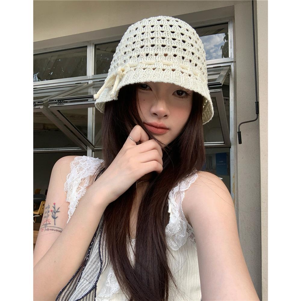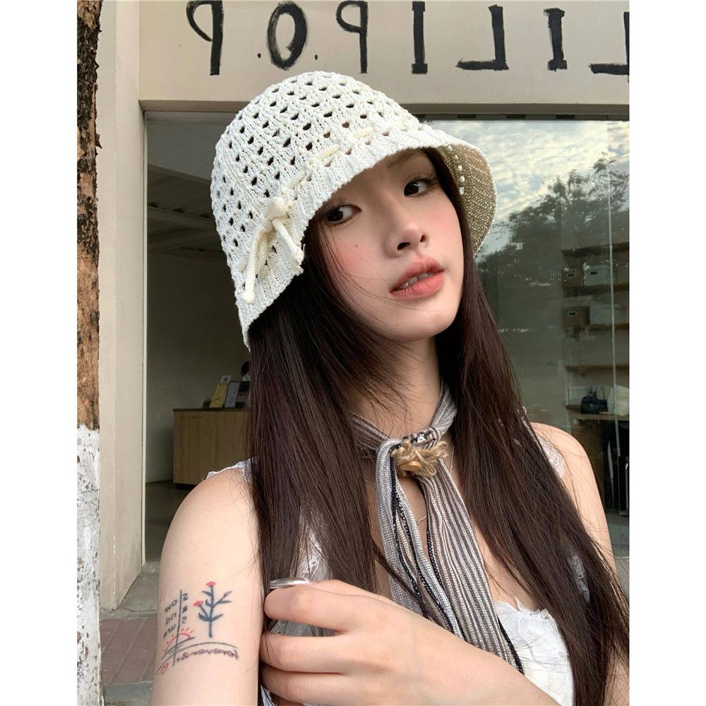 Sombrero de cubo con lazo de cordón hueco de heroína coreana, verano transpirable, delgado, moderno, combinable con todo, sombrero de cuenca pequeña para cara, marea