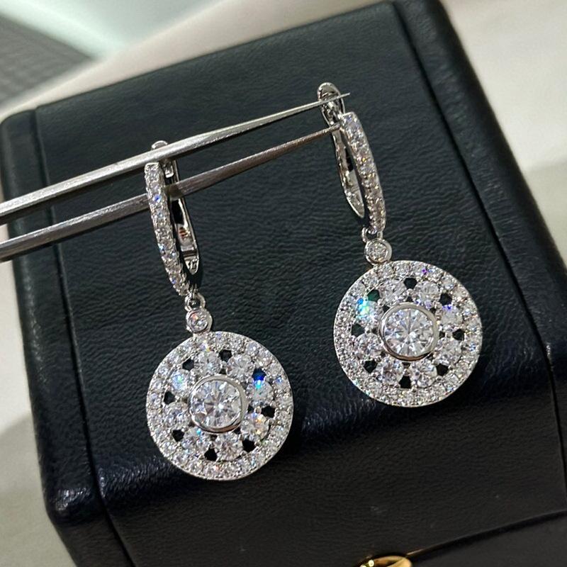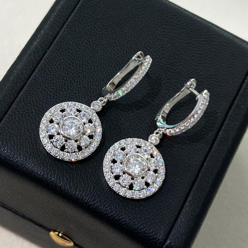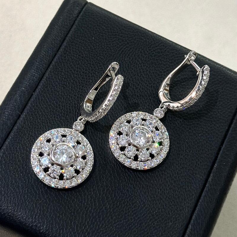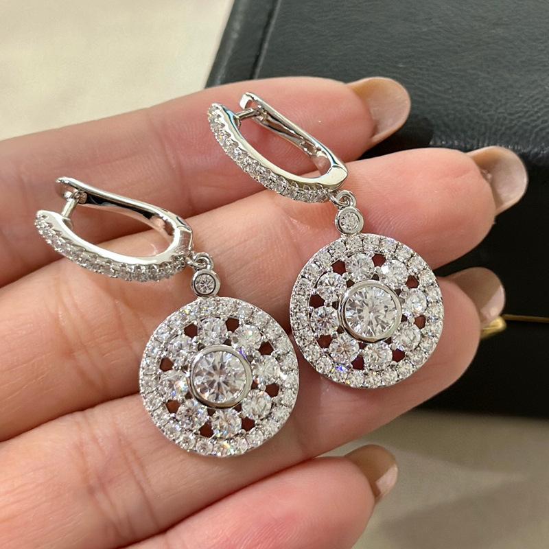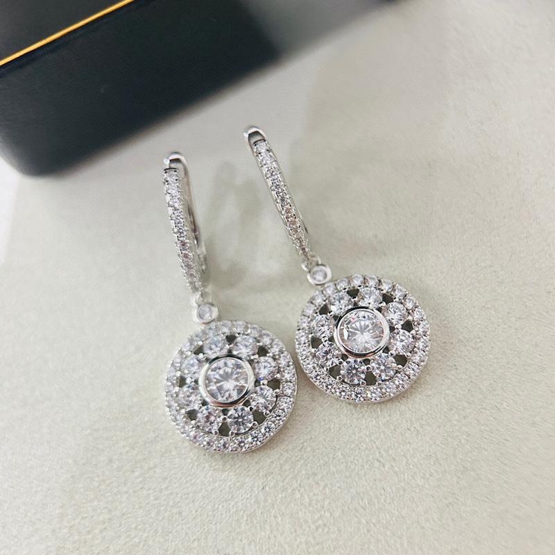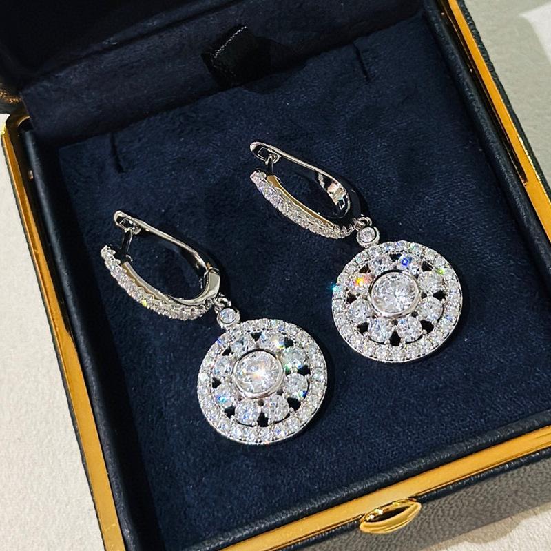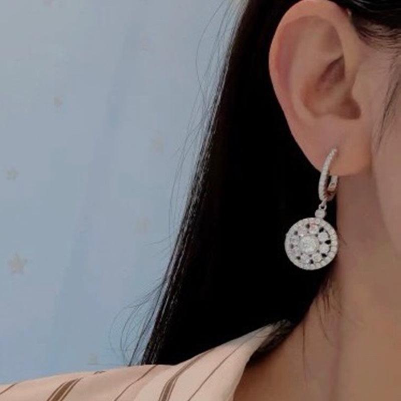 Plata S925 Seiko Advanced Sense Simulación Diamante Hueco Aretes de Disco Girasol de la Suerte Diamante Completo Hebilla para la Oreja Joyería Artesanal