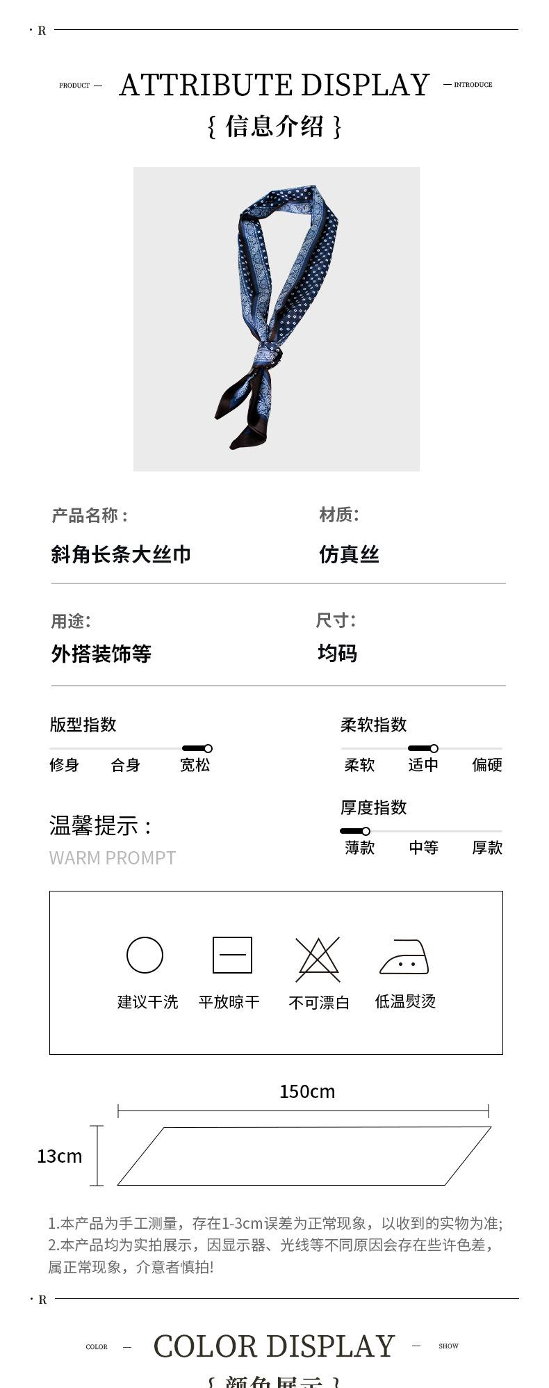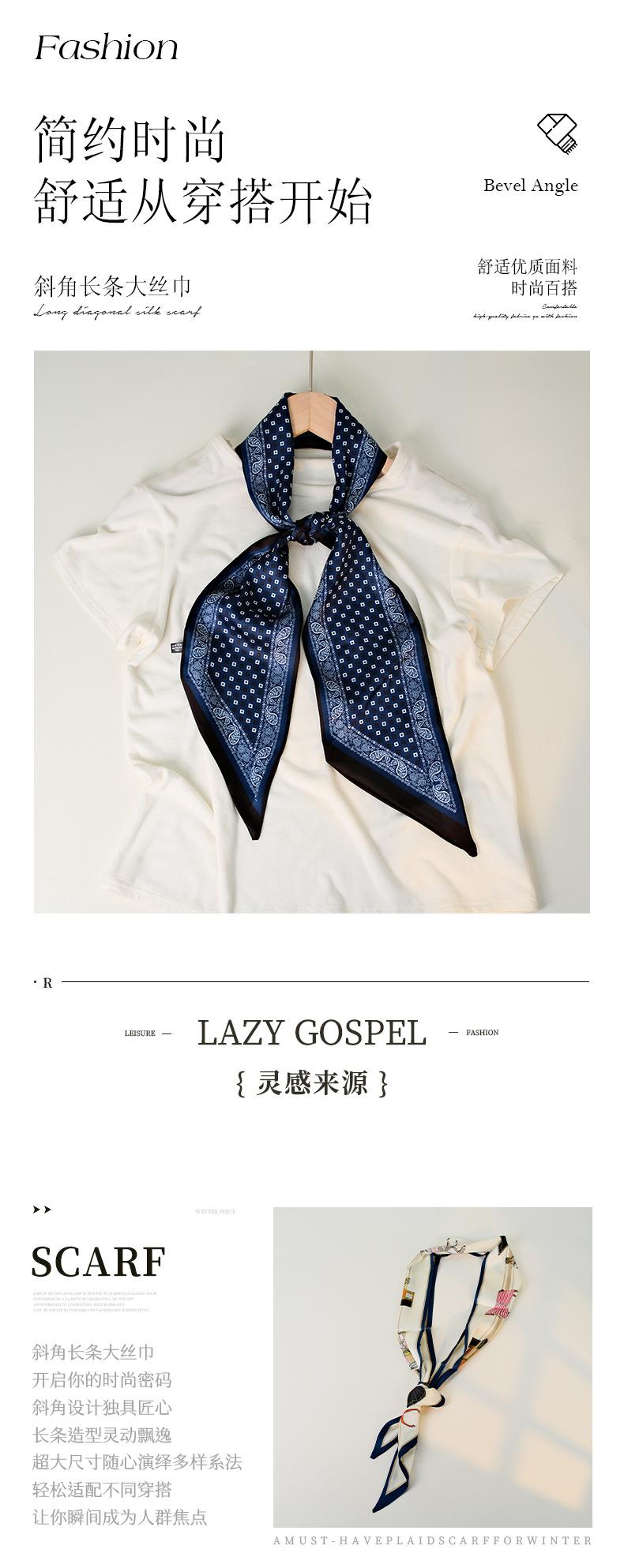 Nuevo Estilo Bufanda Diagonal de Seda Transfronteriza Imitación Seda Estampado Paisley Lunares Larga de Alta Gama Fluida Bufanda para el Cuello Cinturón de Mujer