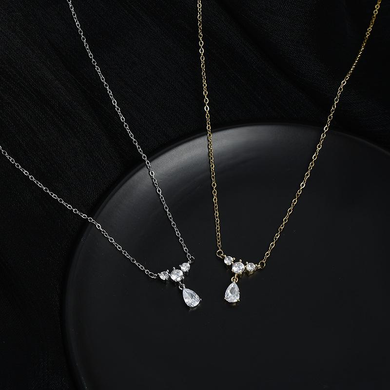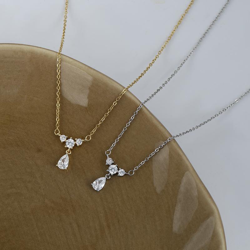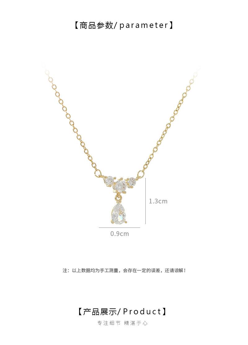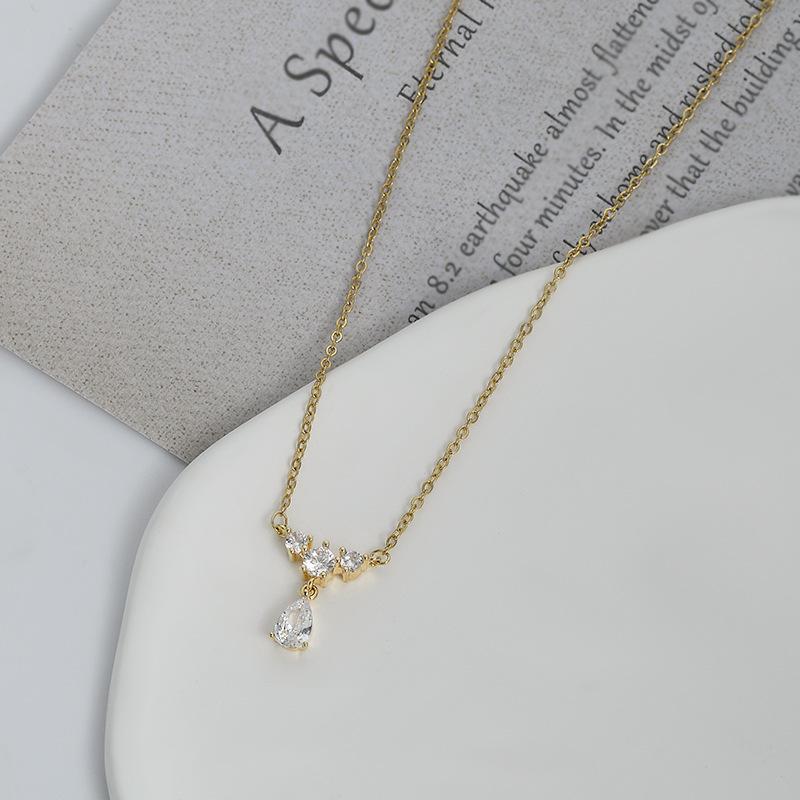 Compra Oro Verdadero Electrochapado Micro-incrustado Zircón Elegante Cadena Clavícula Femenina Diseño Nicho Gota de Agua Collar con Colgante Cadena para el Cuello Viento ins al por mayor en Joom.pro