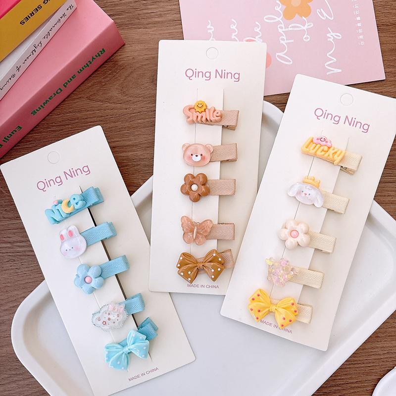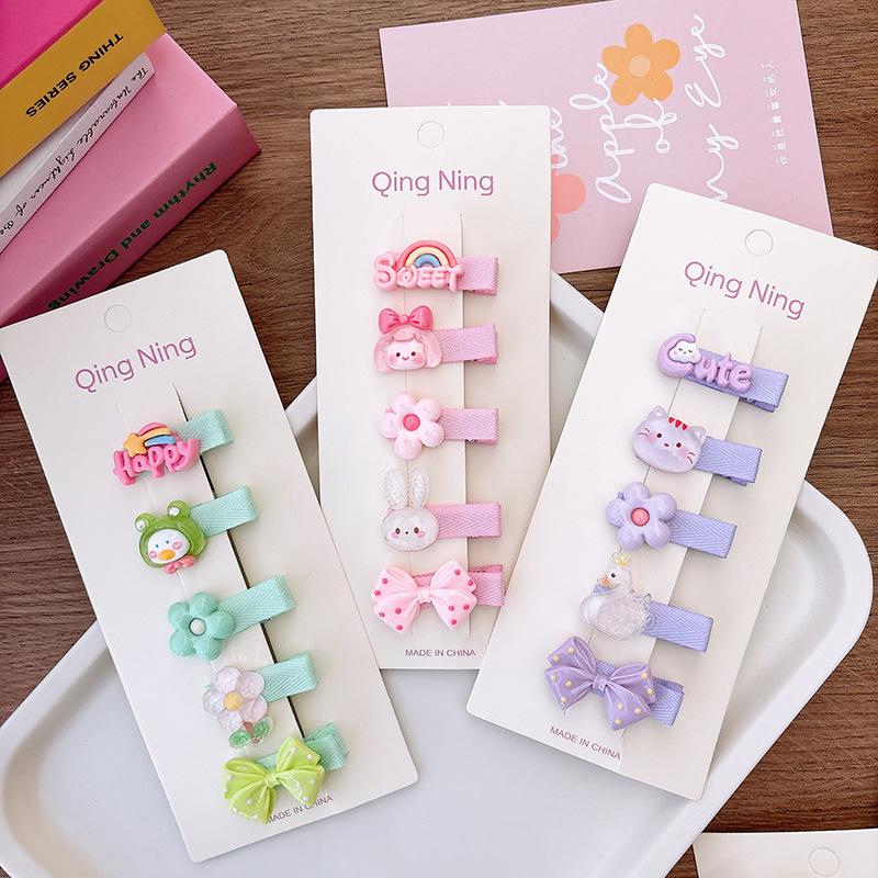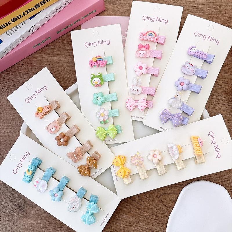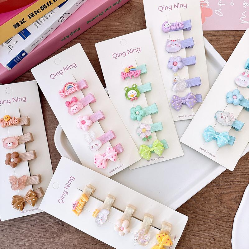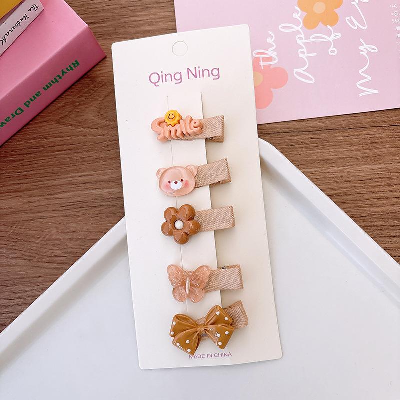 5 Lindo Dibujo Animado Pinza para el Cabello Pequeña Infantil de Tela para Niña Flequillo Pinza para el Cabello Color Caramelo Accesorios para el Cabello de Bebé Adorno para la Cabeza