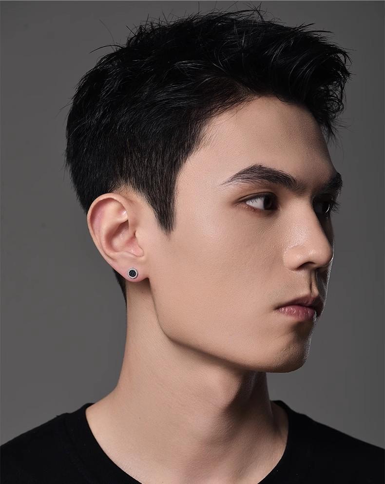 | Versión coreana de pendientes redondos de epoxi negro, pendientes de moda para hombre con personalidad simple y hueco de epoxi. |