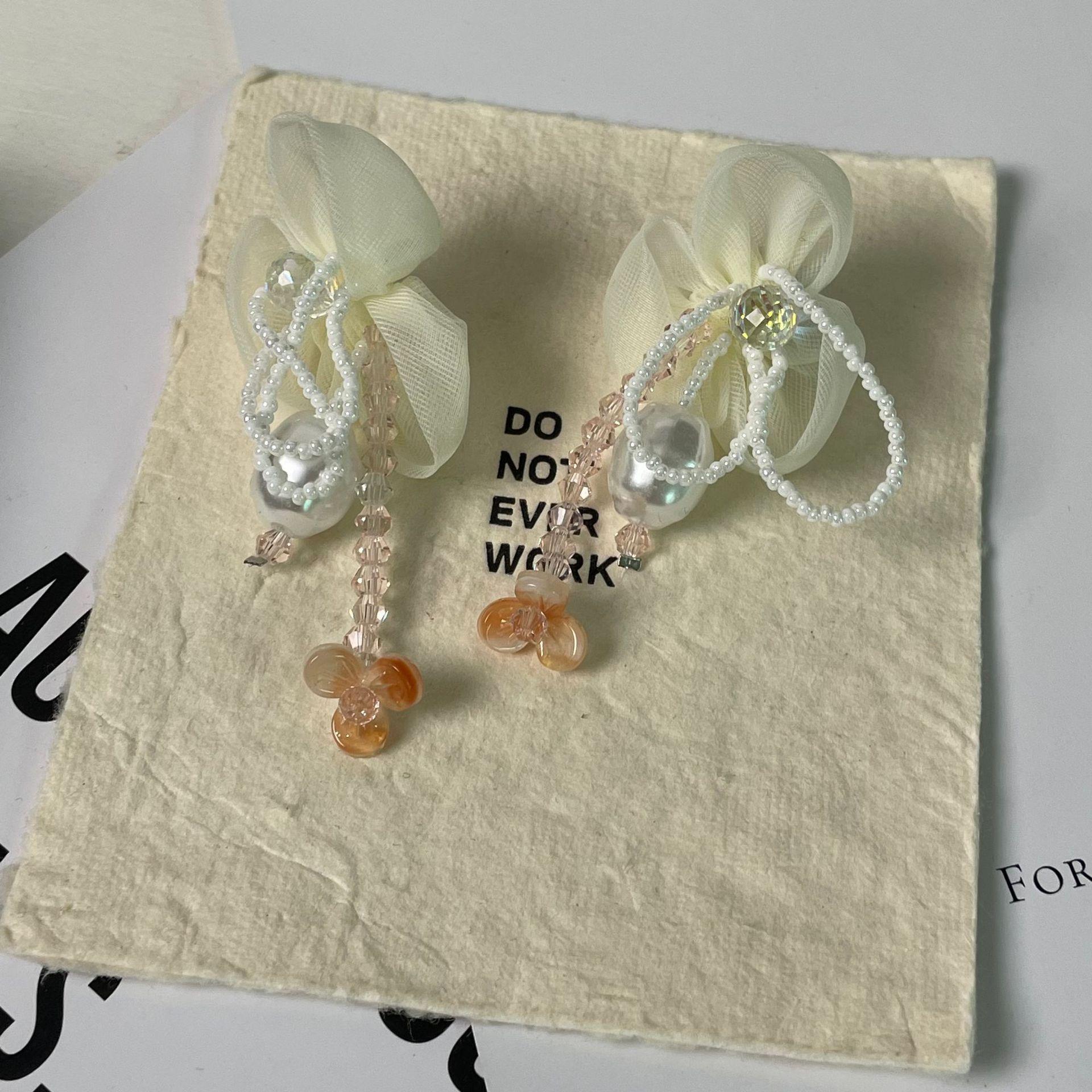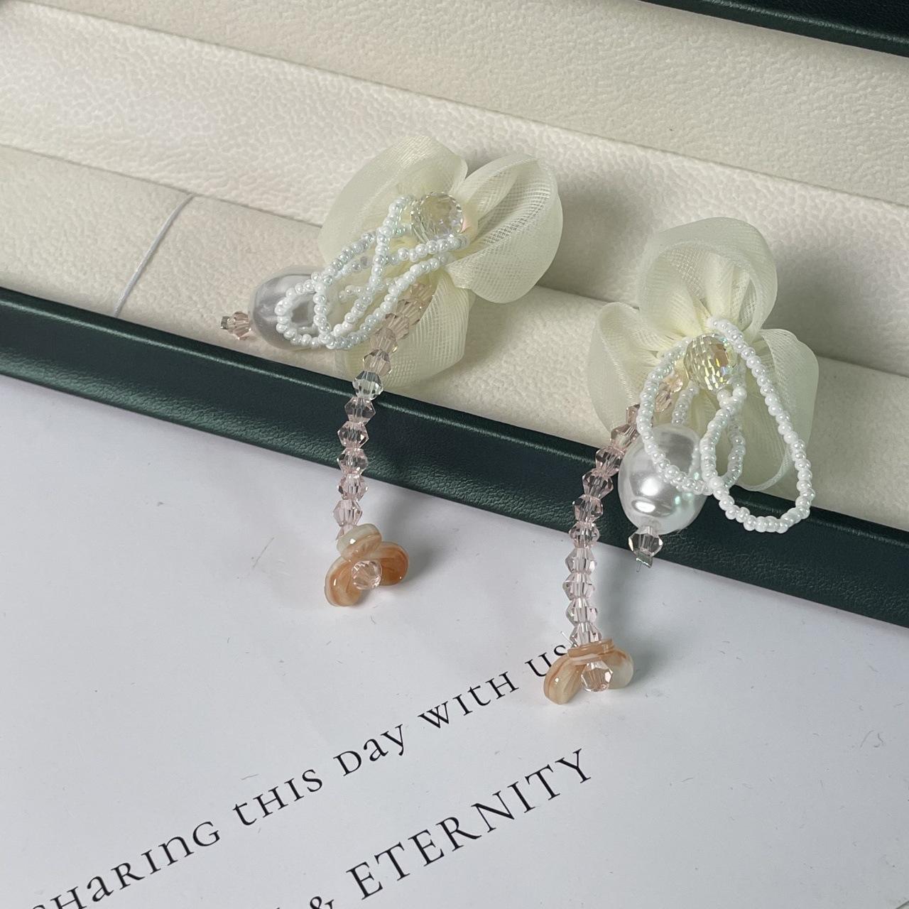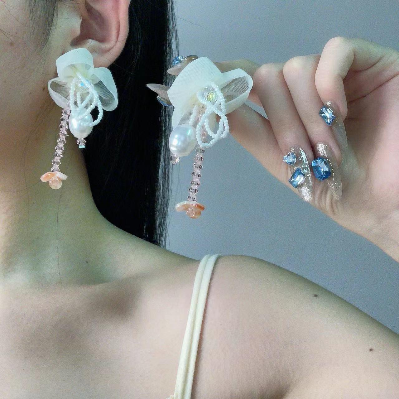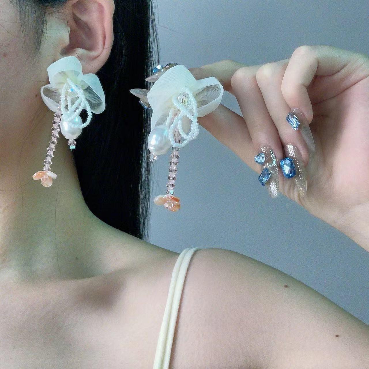 Pendientes de Borla de Cristal de Perla de Flor de Chica Súper Hada Dulce Dama Elegante Moda Estilo Ins Pendientes de Nicho para Mujer