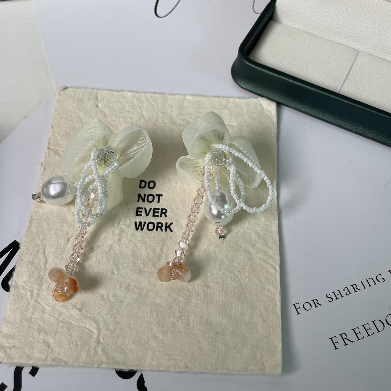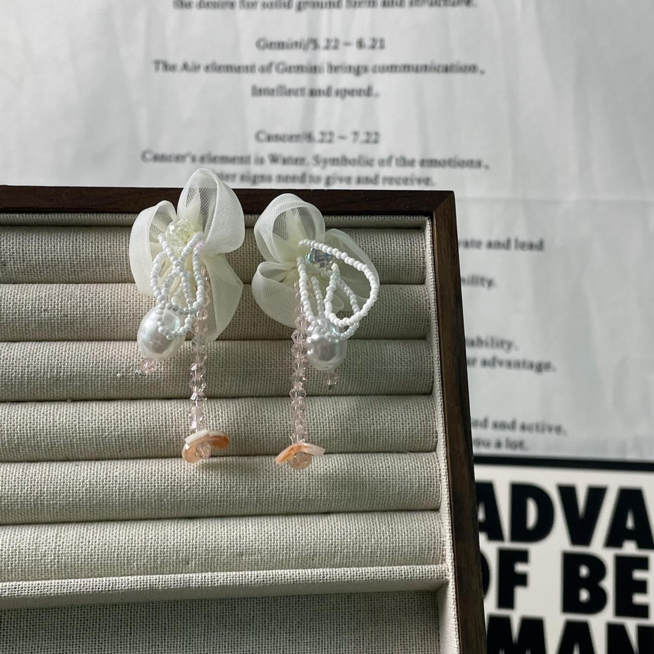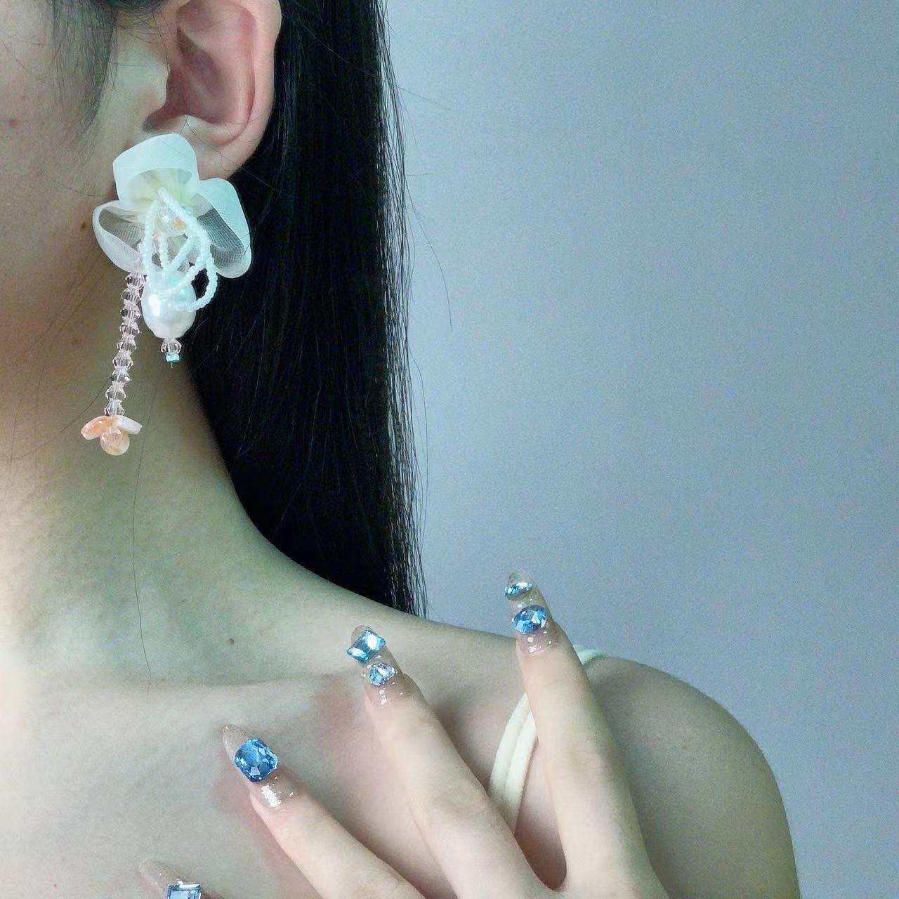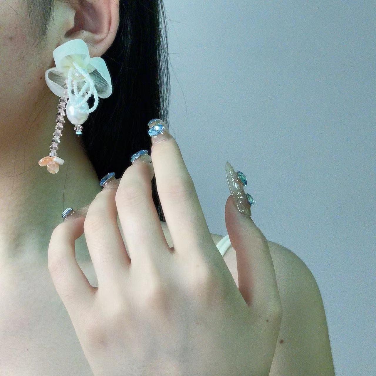 Pendientes de Borla de Cristal de Perla de Flor de Chica Súper Hada Dulce Dama Elegante Moda Estilo Ins Pendientes de Nicho para Mujer