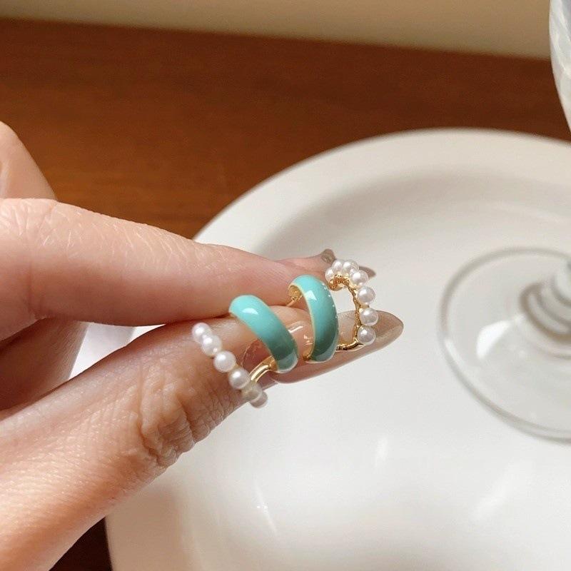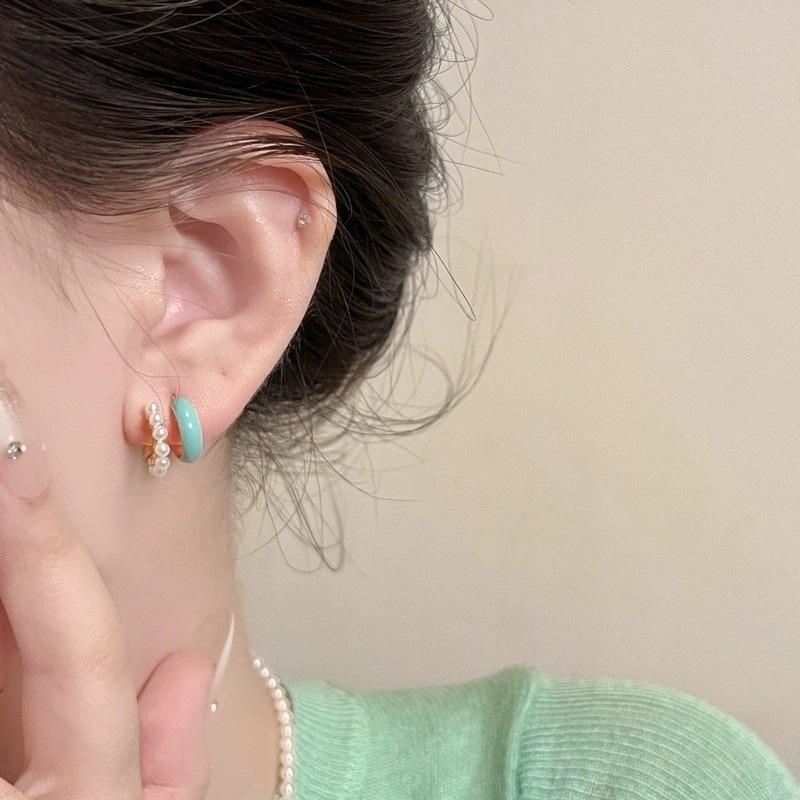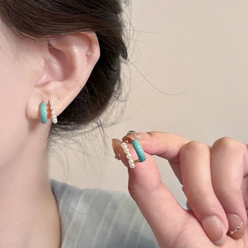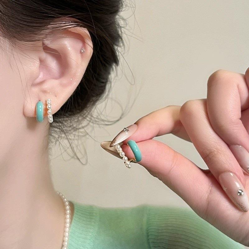 Aretes Elegantes de Perlas de Doble Capa en Forma de C con Esmalte Goteado para Primavera y Verano para Mujer Aretes de Diseño Nicho Joyería de Oreja de Alta Gama de Lujo Accesible