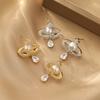 Drop glaze c-shaped pearl earrings