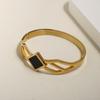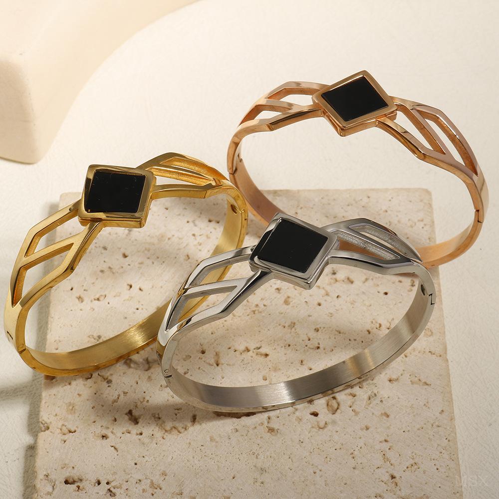 Pulsera Europea y Americana Estilo Ins de Acero Inoxidable Estilo Frío Diamante Hueco Concha Negra Cuadrada Geométrica Simple para Mujer