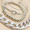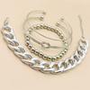 Popular Pulsera Europea y Americana Punk de Cadena Gruesa Anudada con Cuentas Redondas Abierta con Cuentas Set de 4 Pulseras