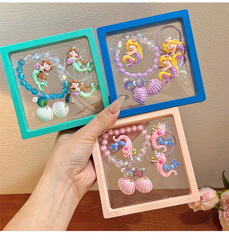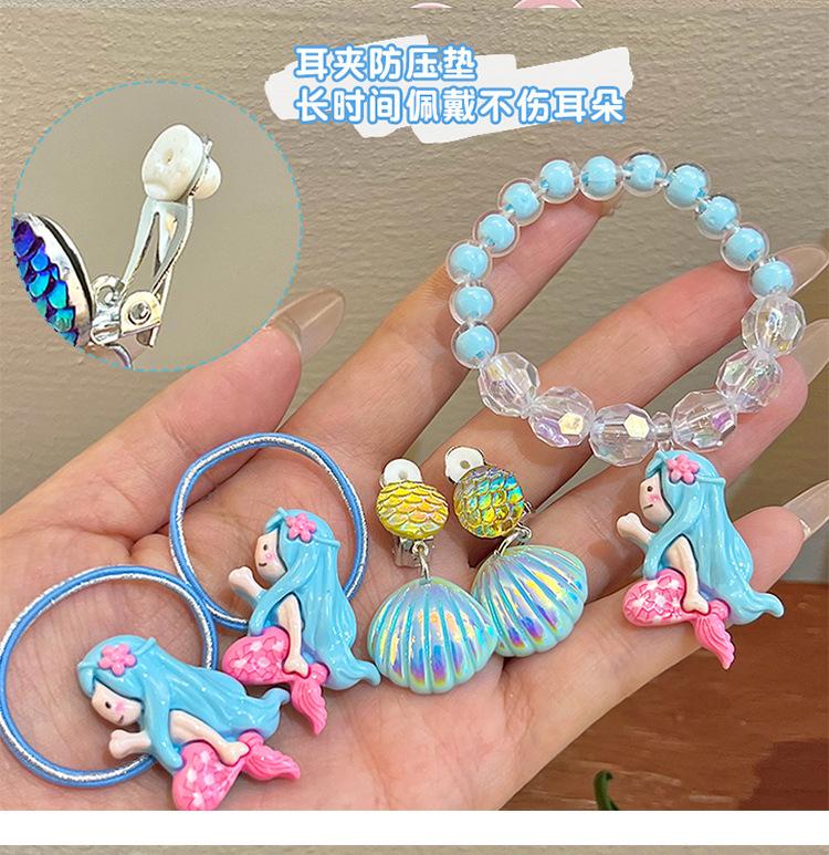 Celebridad de Internet Nuevo Brazalete Infantil de Sirena Lindo Concha Clip para la Oreja sin Dolor Diadema de Princesa Sirena Traje Caja de Regalo