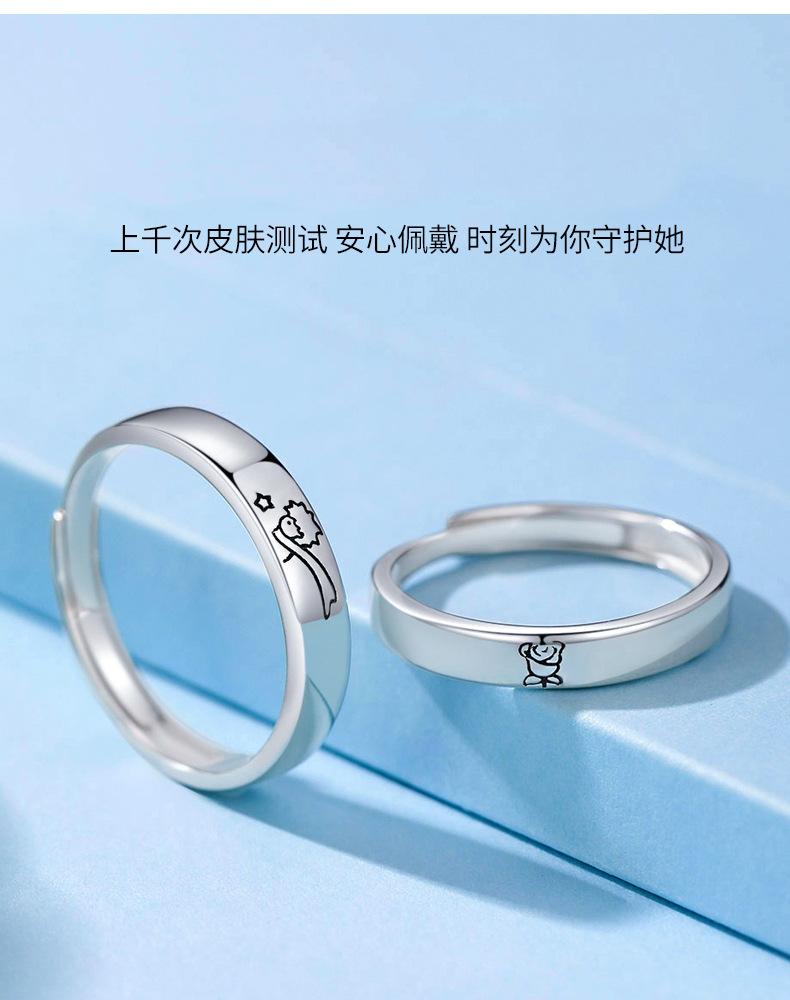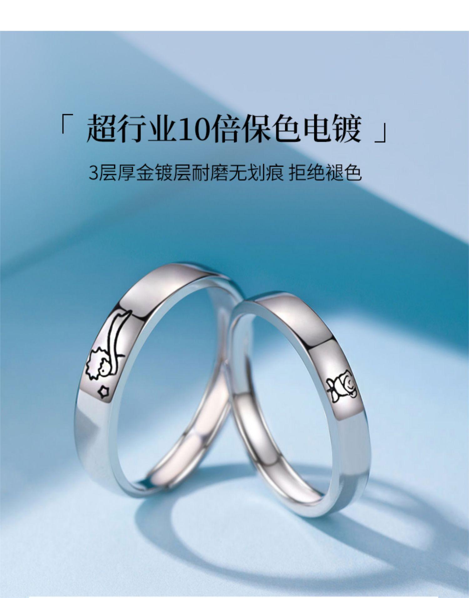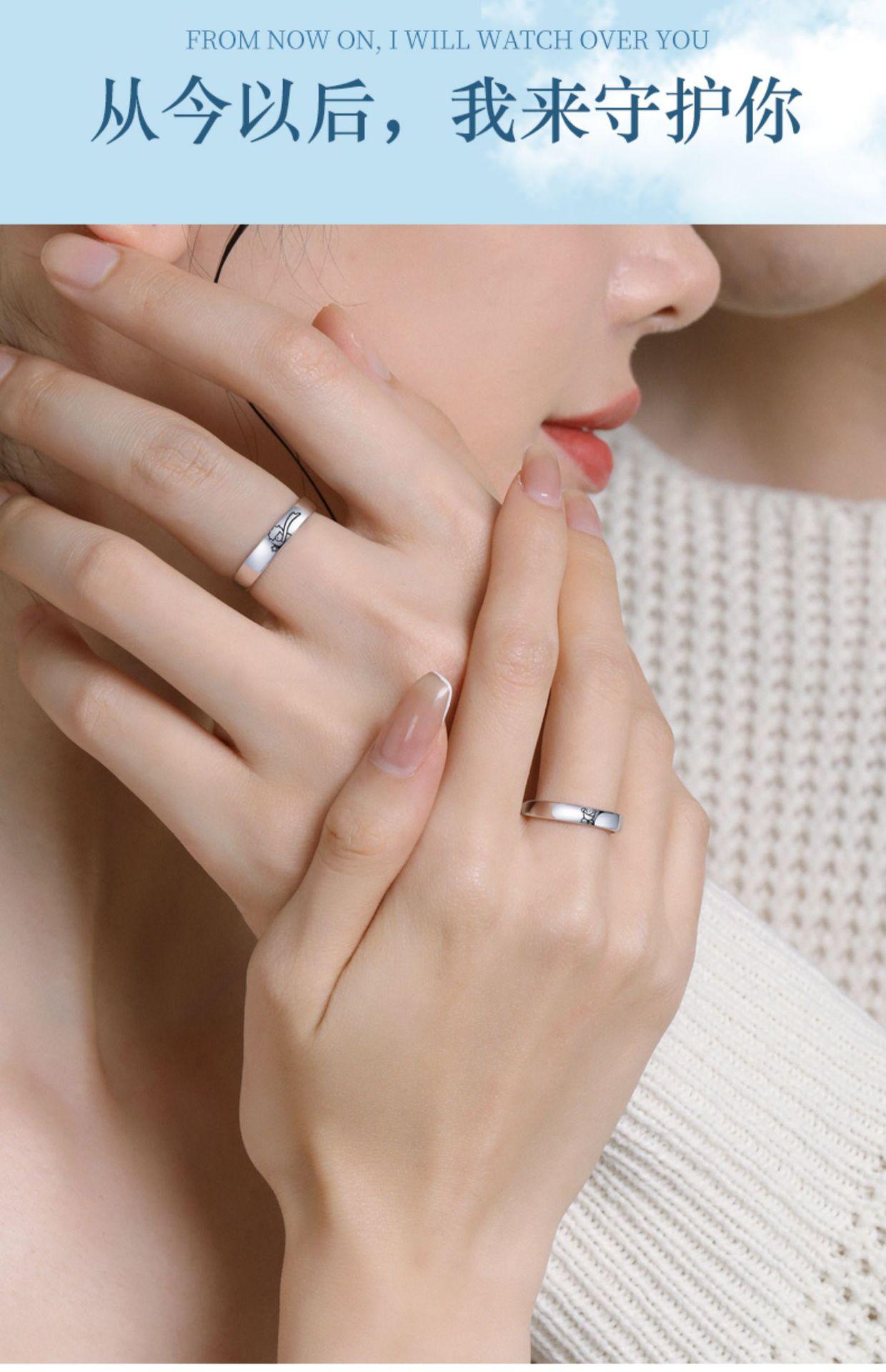 Anillo de pareja Runxin Yilu You Ni con diamantes azules para hombre y mujer, un par de diamantes, anillo de asta de ciervo, anillo abierto de celebridades de Internet.