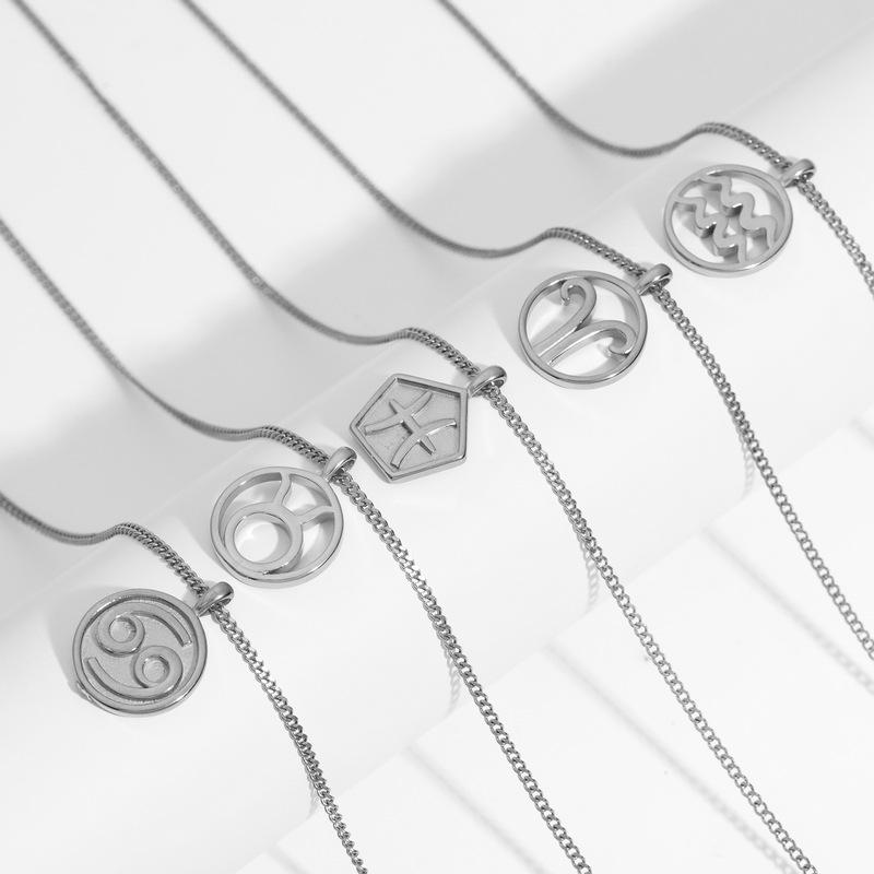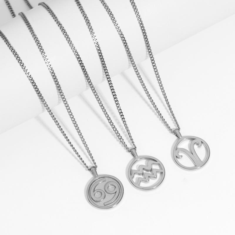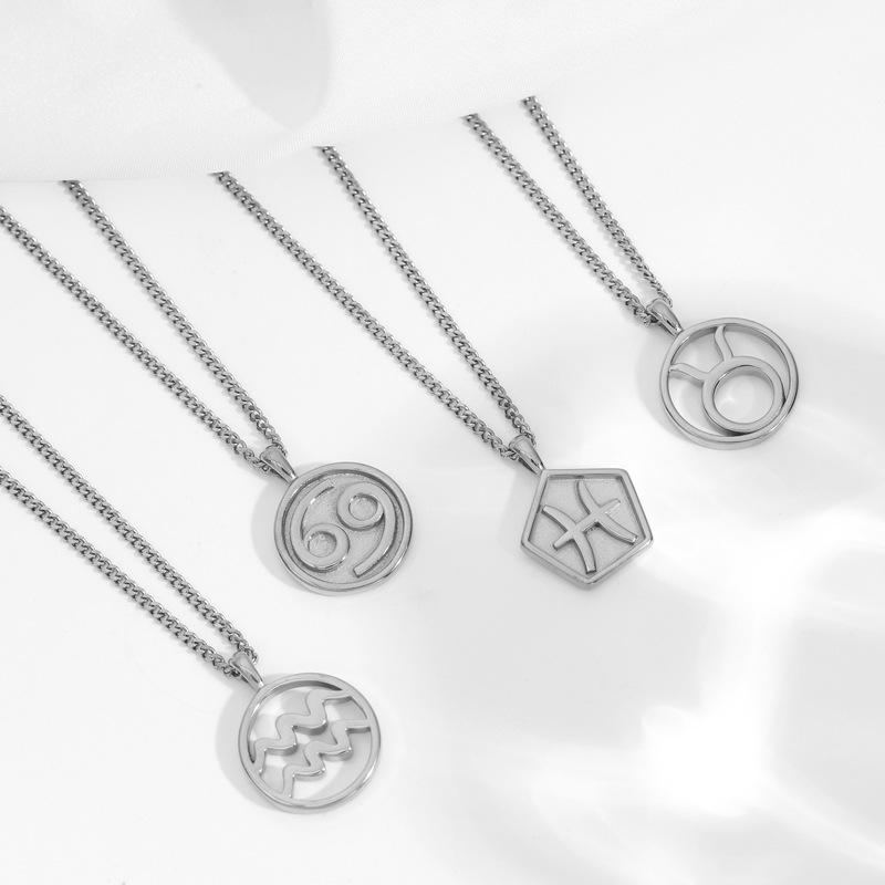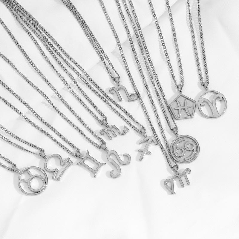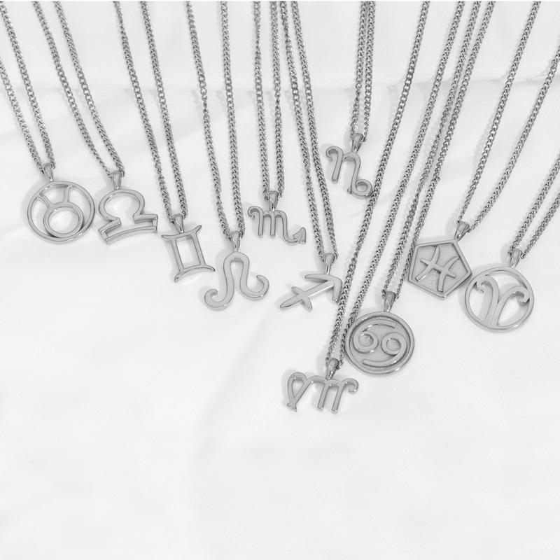 Collar Acero Inoxidable de Alta Calidad Joyería Inmarcesible Accesorios Moda Europea y Americana Cadena de Lana para Hombre y Mujer Colgante de 12 Constelaciones