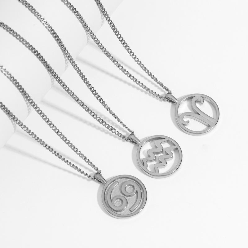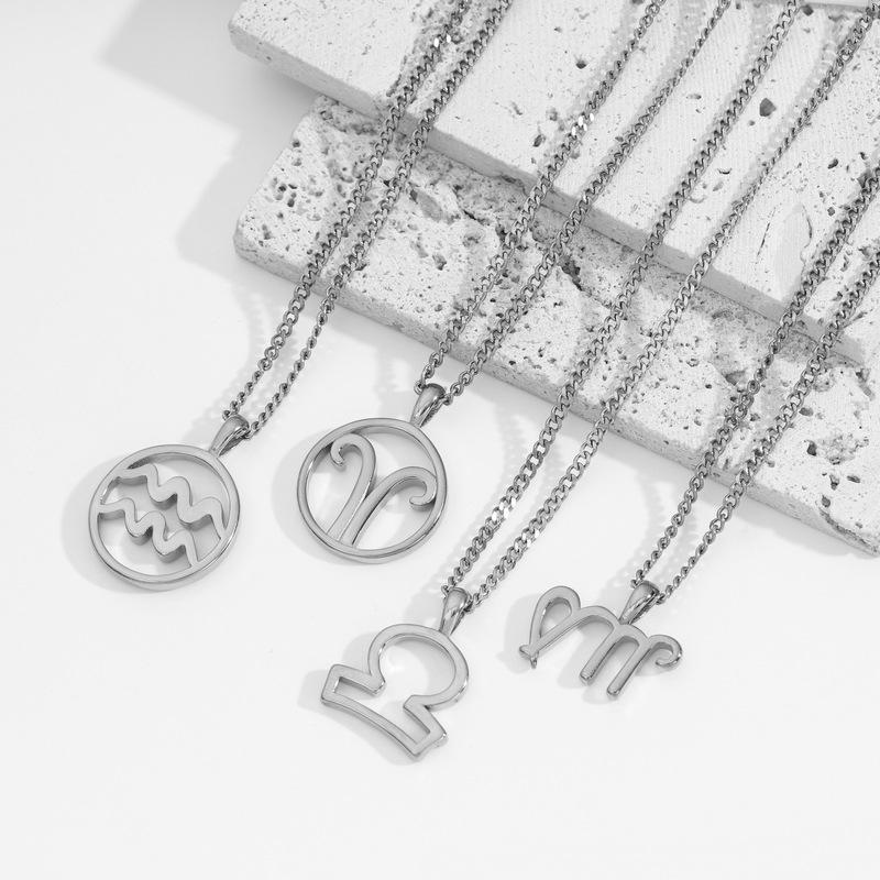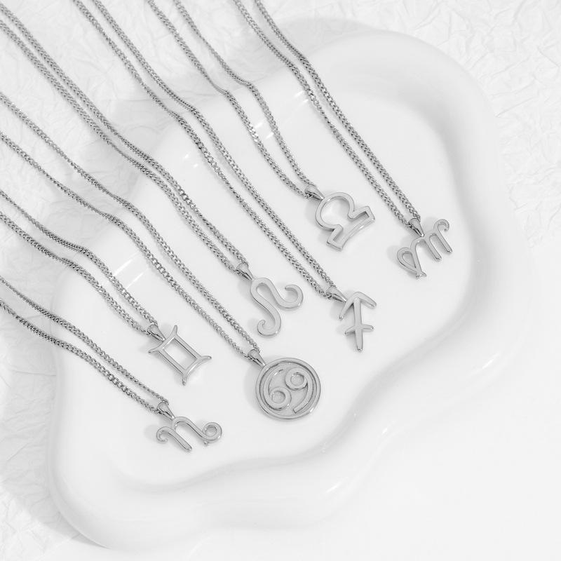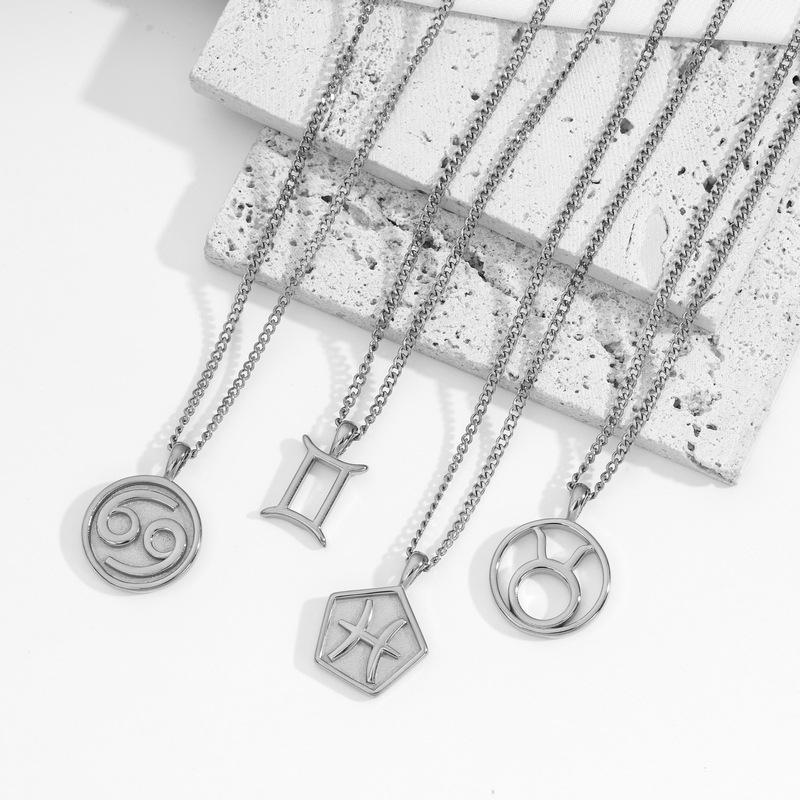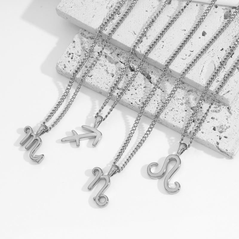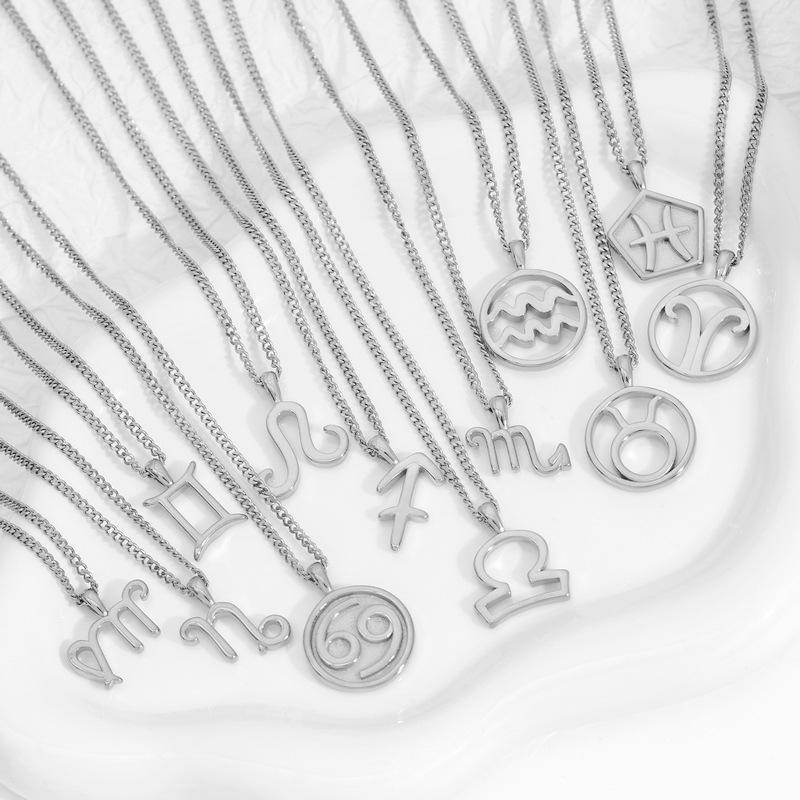 Collar Acero Inoxidable de Alta Calidad Joyería Inmarcesible Accesorios Moda Europea y Americana Cadena de Lana para Hombre y Mujer Colgante de 12 Constelaciones