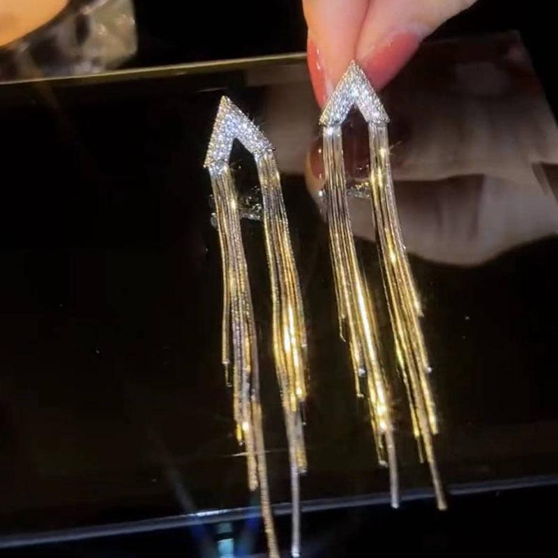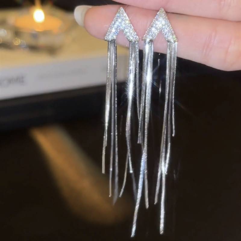 Pendientes de Borla Triangular de Circonita Super Flash Aguja de Plata Moda Estilo Popular en Internet Pendientes Elegantes Lujo Ligero de Alta Gama Pendientes Personalizados