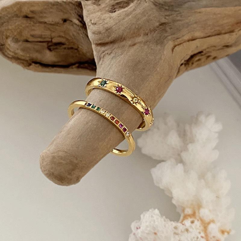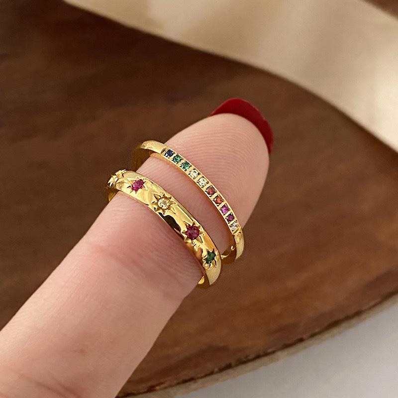 Anillo de Estrella de Oro de Moda de Lujo Ligero Ins Colorido Exquisito Diamante de Zircón Combinable Diseño Nicho Femenino