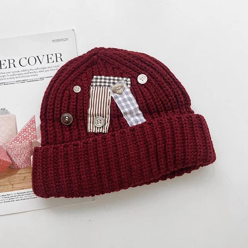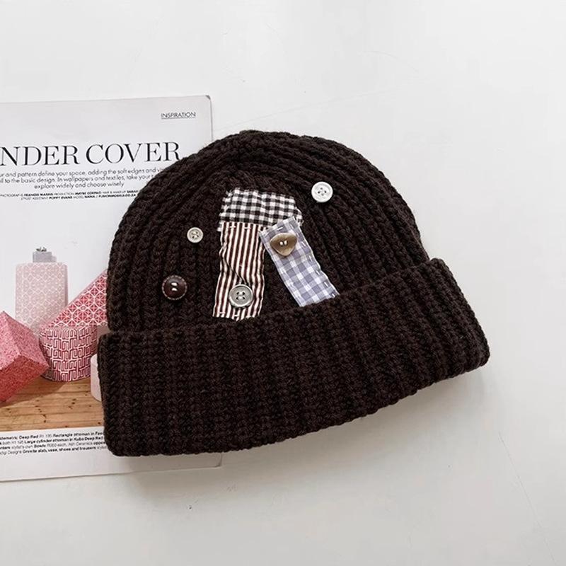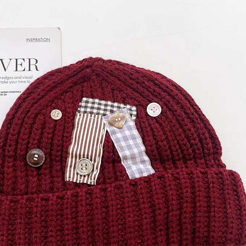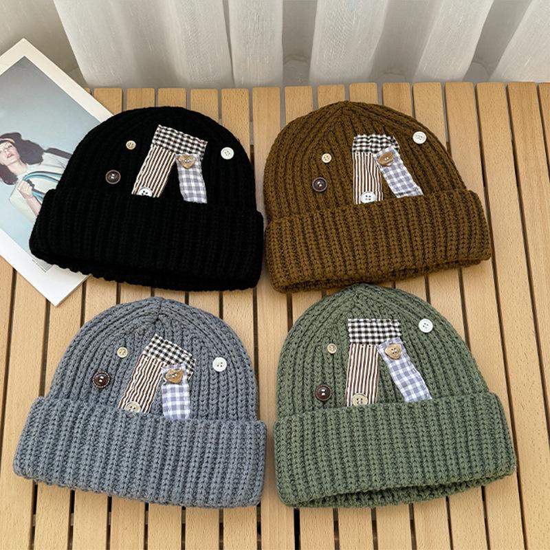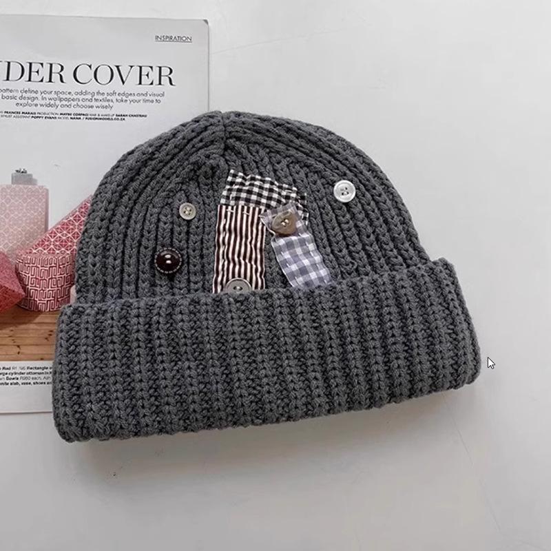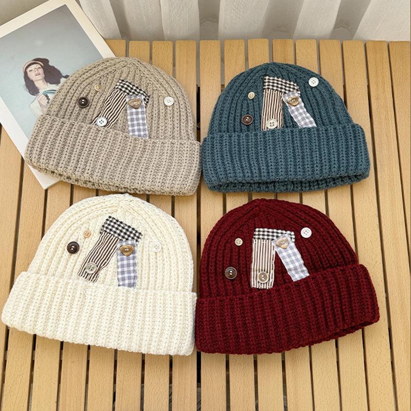 Compra Gorro de punto con botón de parche para hombres y mujeres, estilo coreano, circunferencia de cabeza grande, gorro pequeño que favorece el rostro, gorro de lana cálido y cortavientos para otoño e invierno al por mayor en Joom.pro