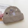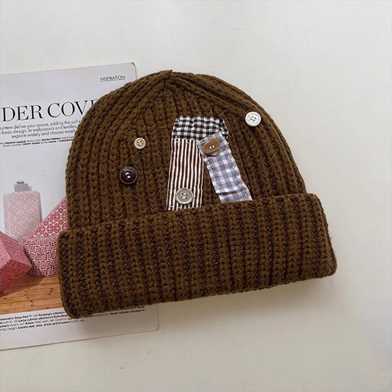 Gorro de punto con botón de parche para hombres y mujeres, estilo coreano, circunferencia de cabeza grande, gorro pequeño que favorece el rostro, gorro de lana cálido y cortavientos para otoño e invierno