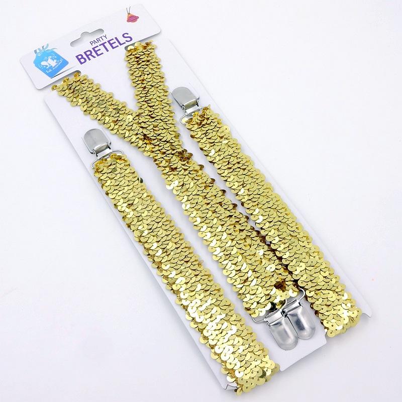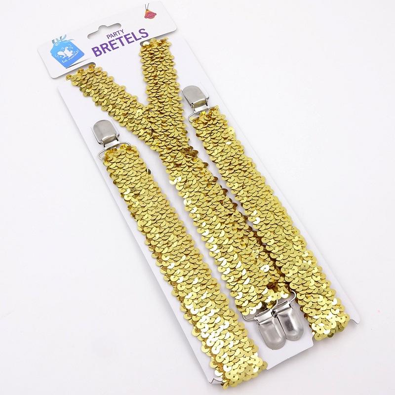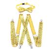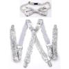 Silver individual strap with four clips, Gold individual strap with four clips, Gold suspenders + bow tie, Silver strap + bow tie