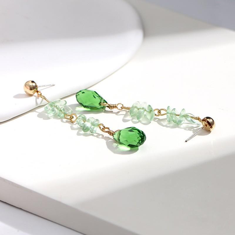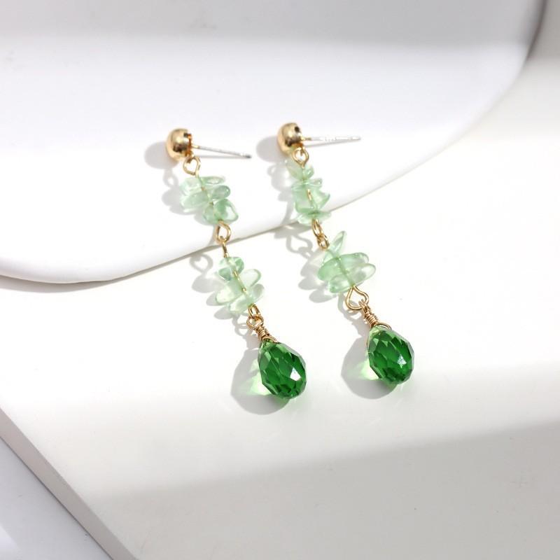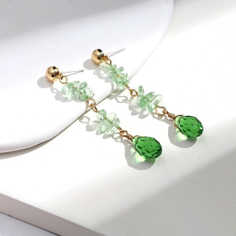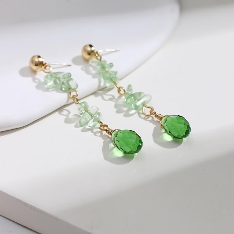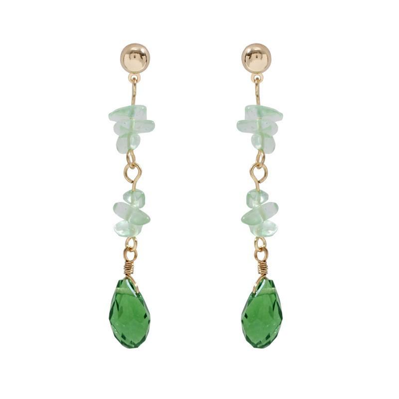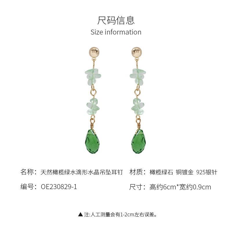 Aretes colgantes de cristal verde oliva natural