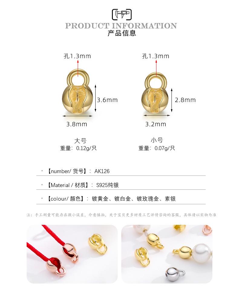 Hebilla de Bolso de Frijol de Plata de Ley S925 DIY Nudo de Hilo Hebilla de Acabado Cuenta de Posicionamiento Hebilla de Bolso Pulsera Collar Material de Accesorios Chapado en Oro de 18K