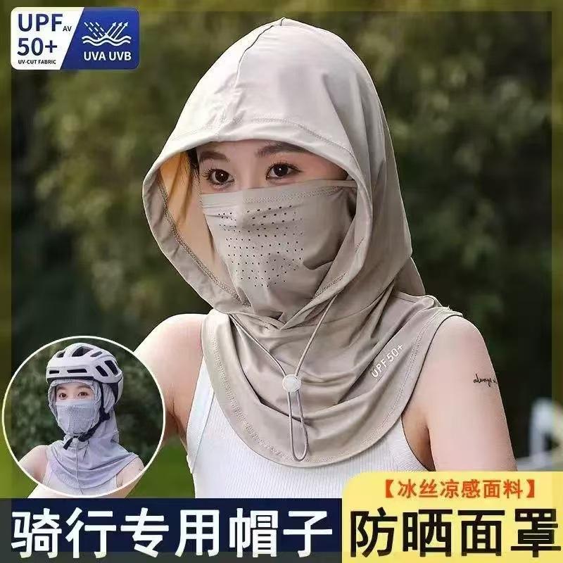 Primavera y Verano Nueva Máscara de Protección Solar Máscara Facial Completa Parasol para Conducir Verano Anti-Uv Máscara Facial de Seda de Hielo para Protección de Cuello para Mujer