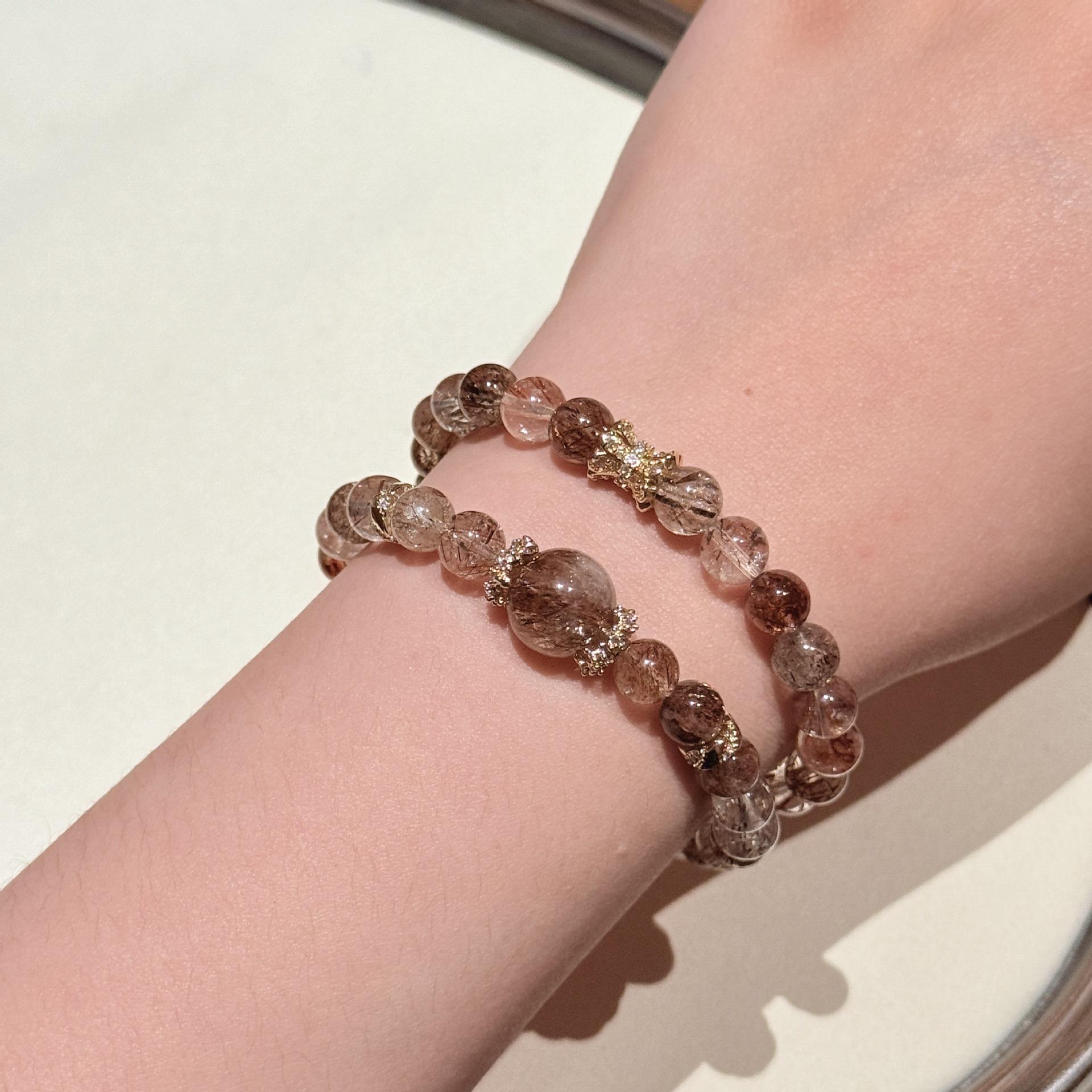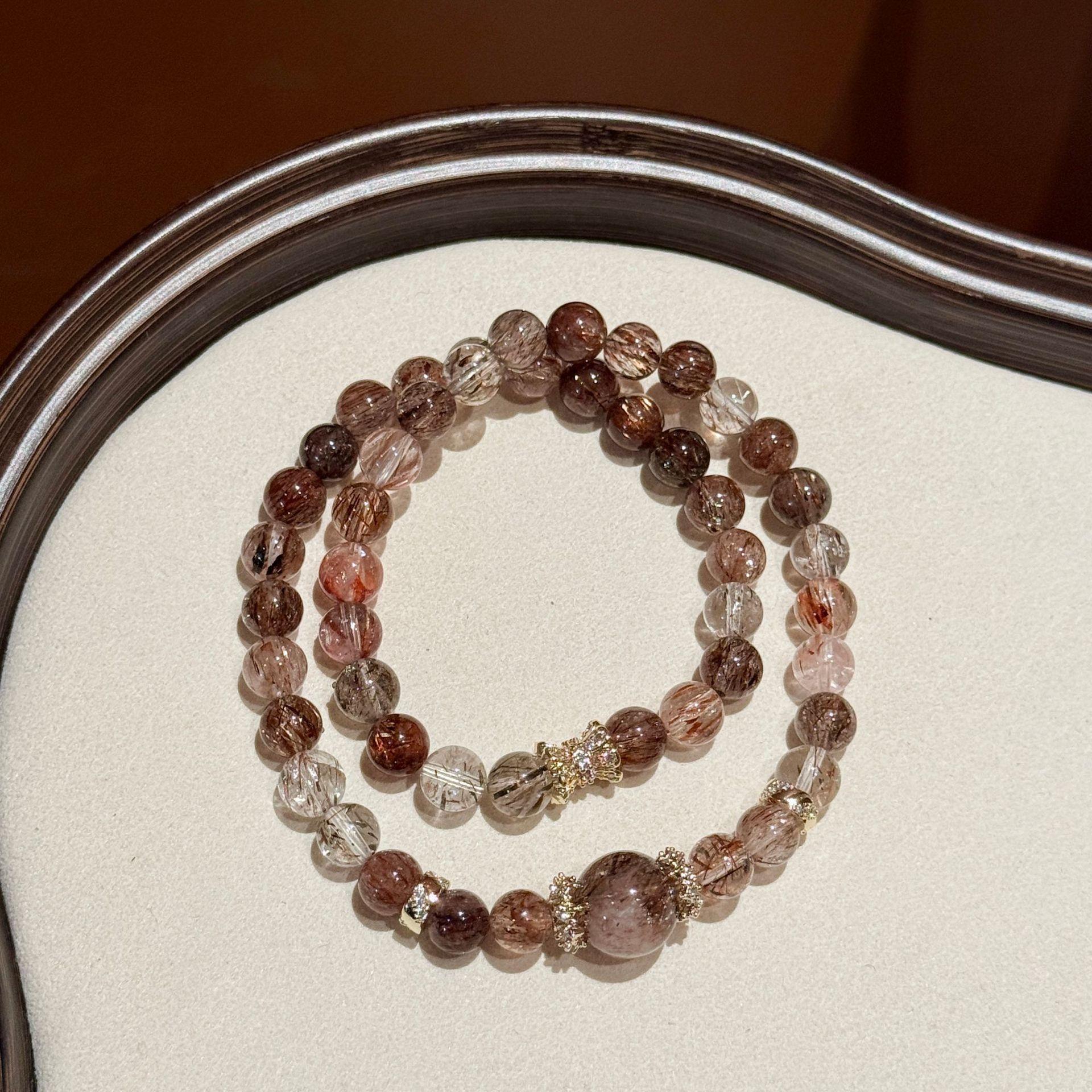 Pulsera de Cristal Super Seven de Cabello Negro Natural Pulsera de Cristal de Doble Capa para Apilar Pulsera de Cintura Pequeña para Hombre Pulsera de Moda de Alta Gama para Mujer