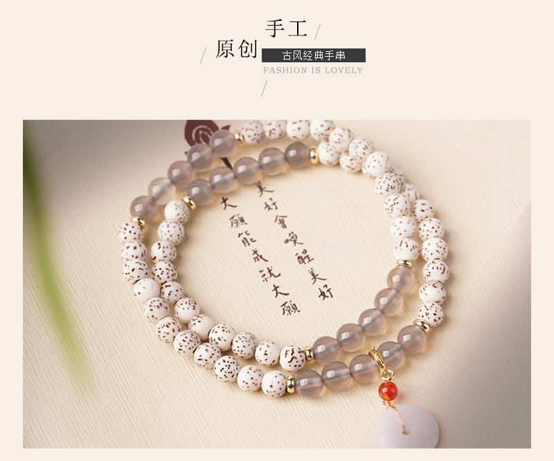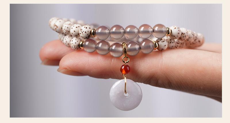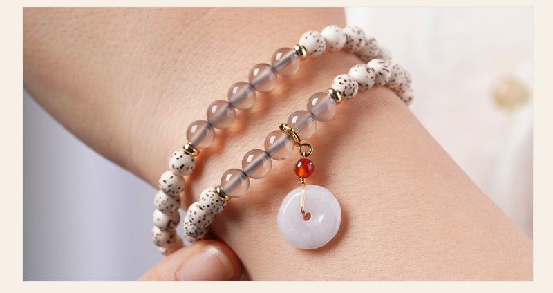Xingyue bodhi 6mm double circle jade safety buckle, Xingyue 6*8mm six-character spacer beads, Star and moon bu...