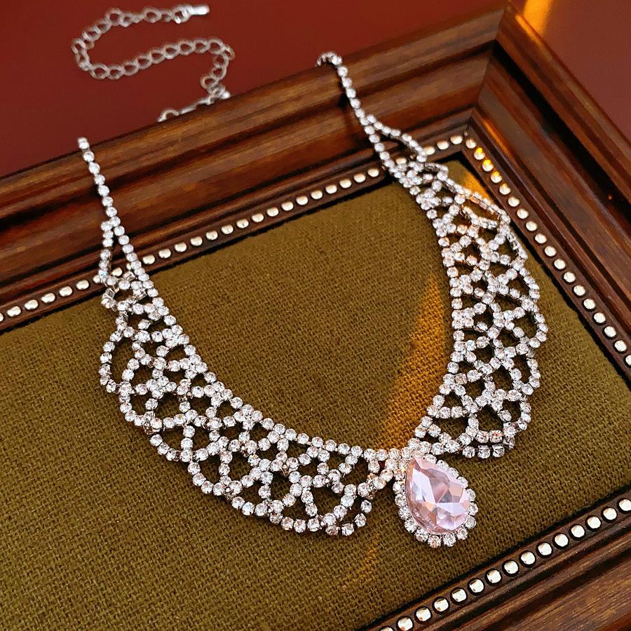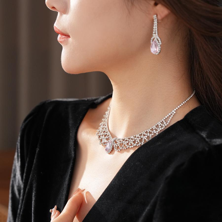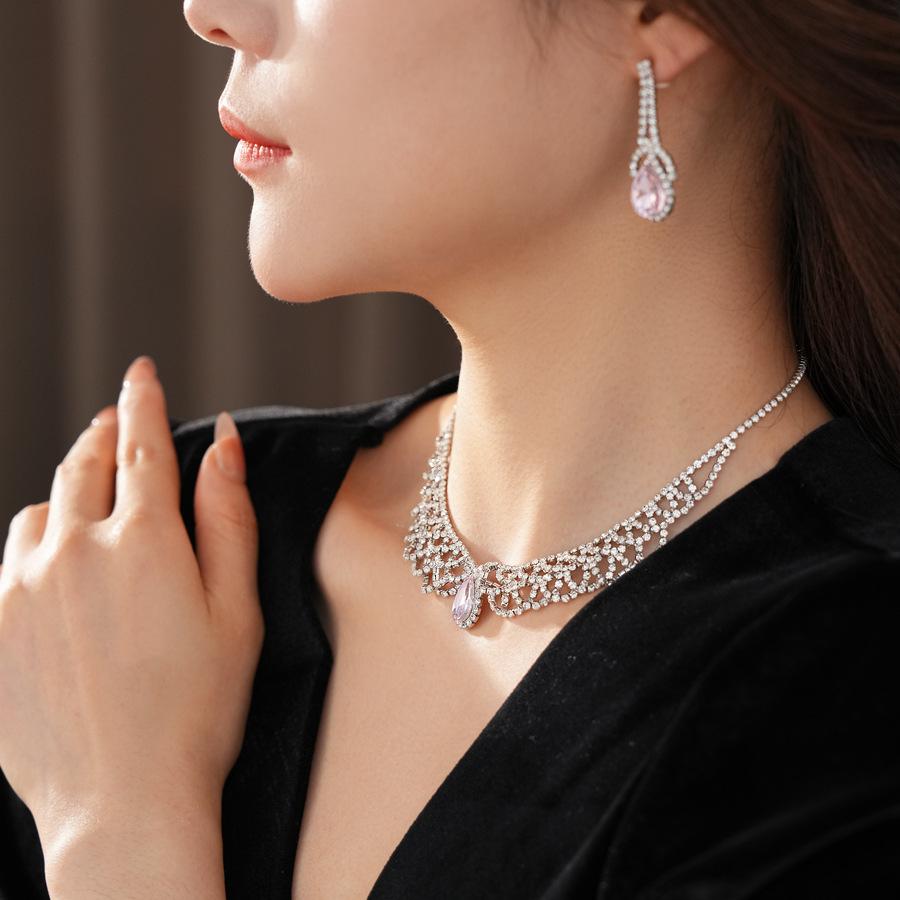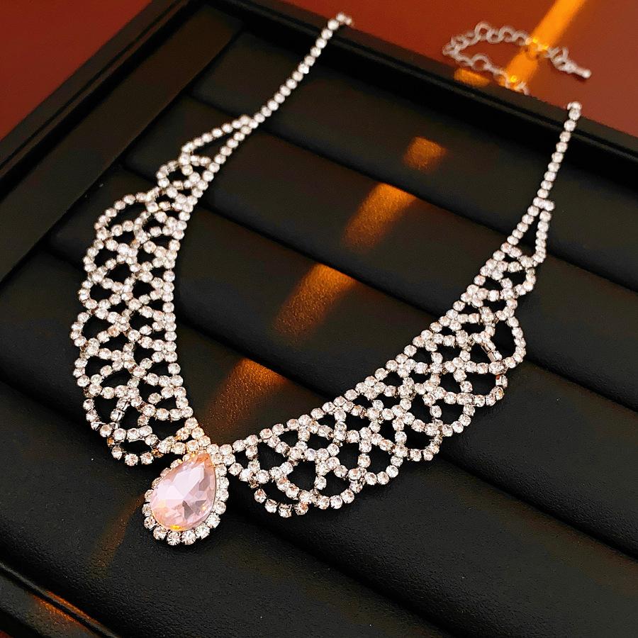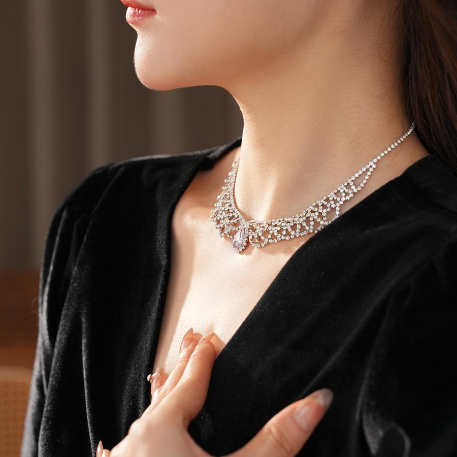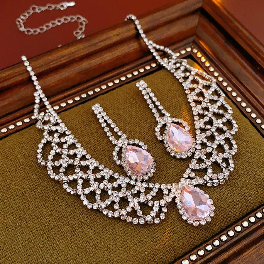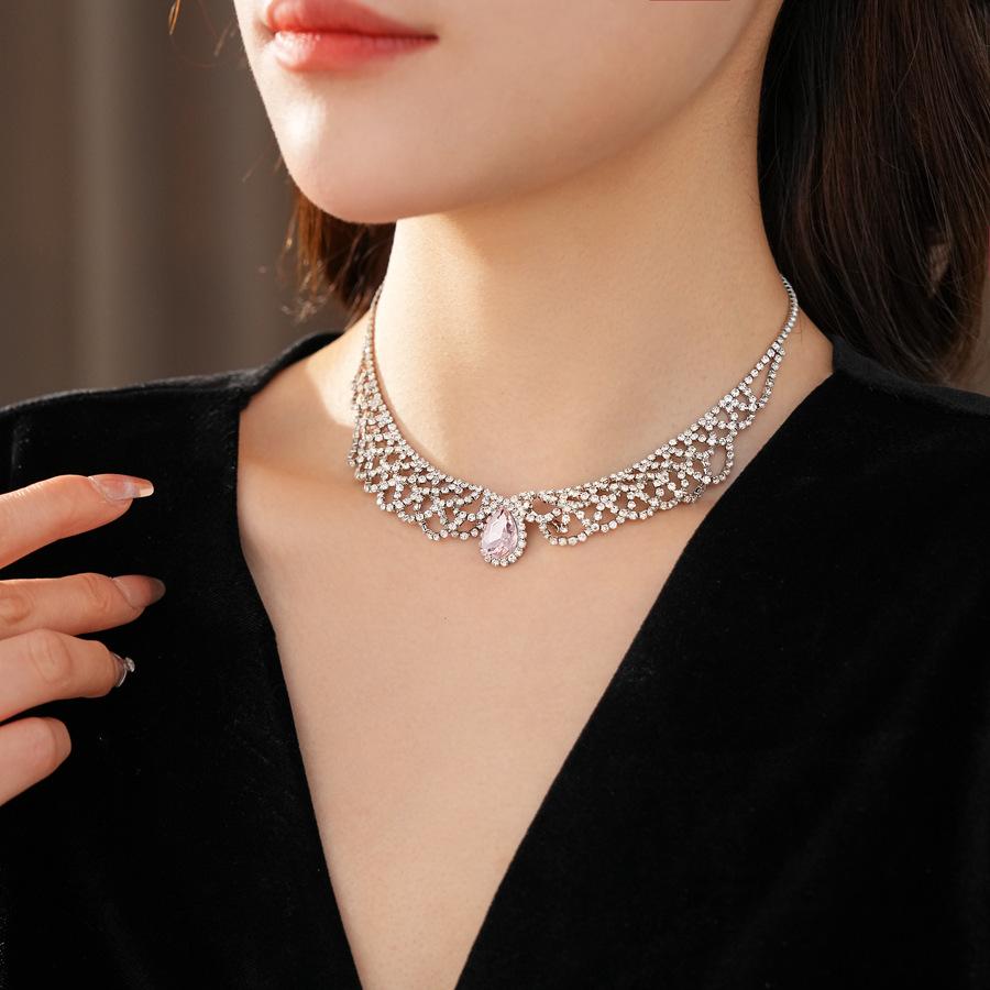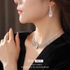 Juego de collar y aretes de gota de agua de encaje de diamante, estilo corte de lujo ligero, exquisita cadena para la clavícula, versátil, conjunto de dos piezas de alta gama