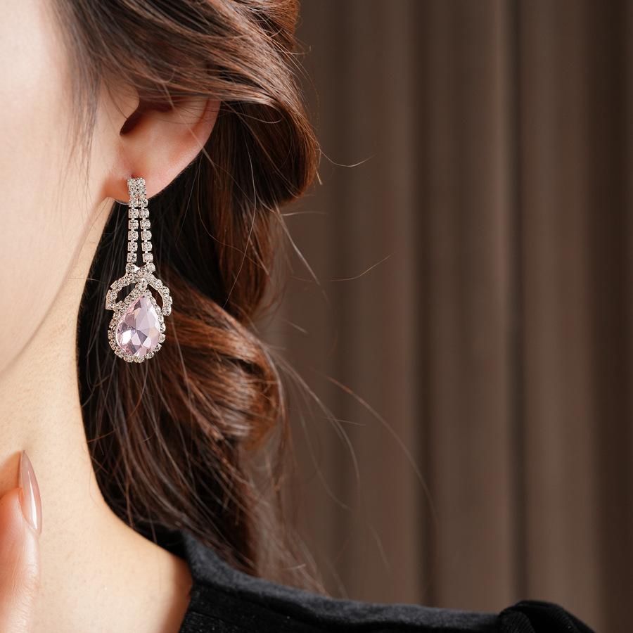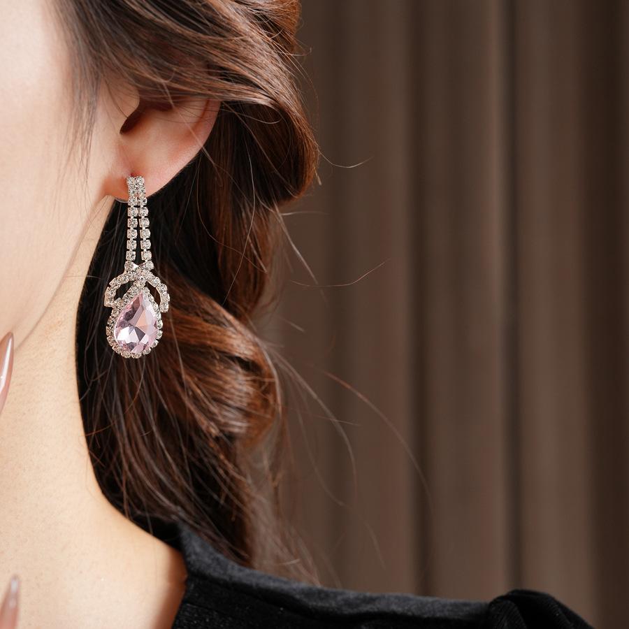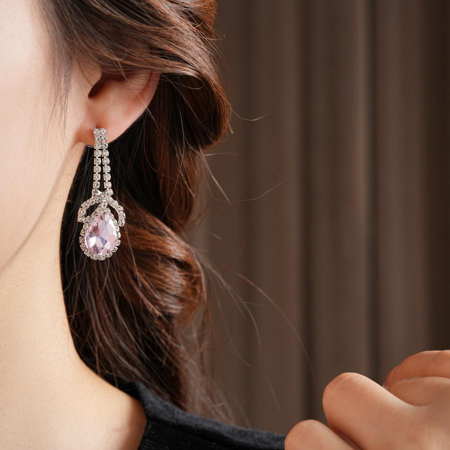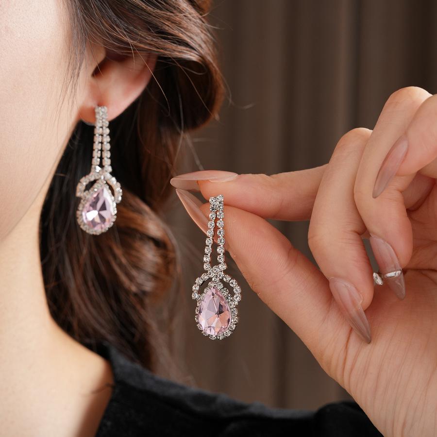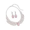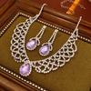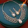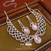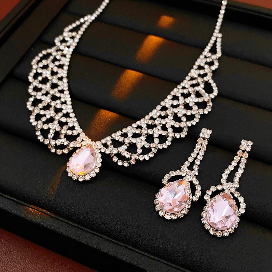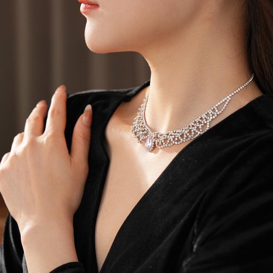 Juego de collar y aretes de gota de agua de encaje de diamante, estilo corte de lujo ligero, exquisita cadena para la clavícula, versátil, conjunto de dos piezas de alta gama