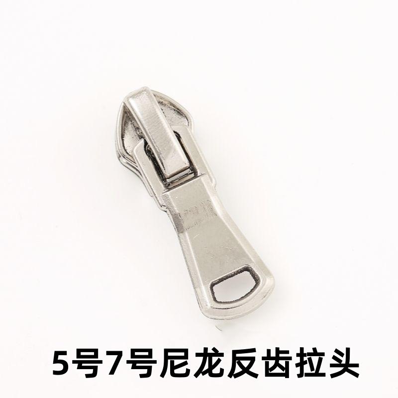 No. 5 No. 7 Cabeza de Cremallera Universal de Nylon con Dientes Inversos Negro Plata Metal Reverso Impermeable Autoblocante Cabeza de Cremallera en Stock