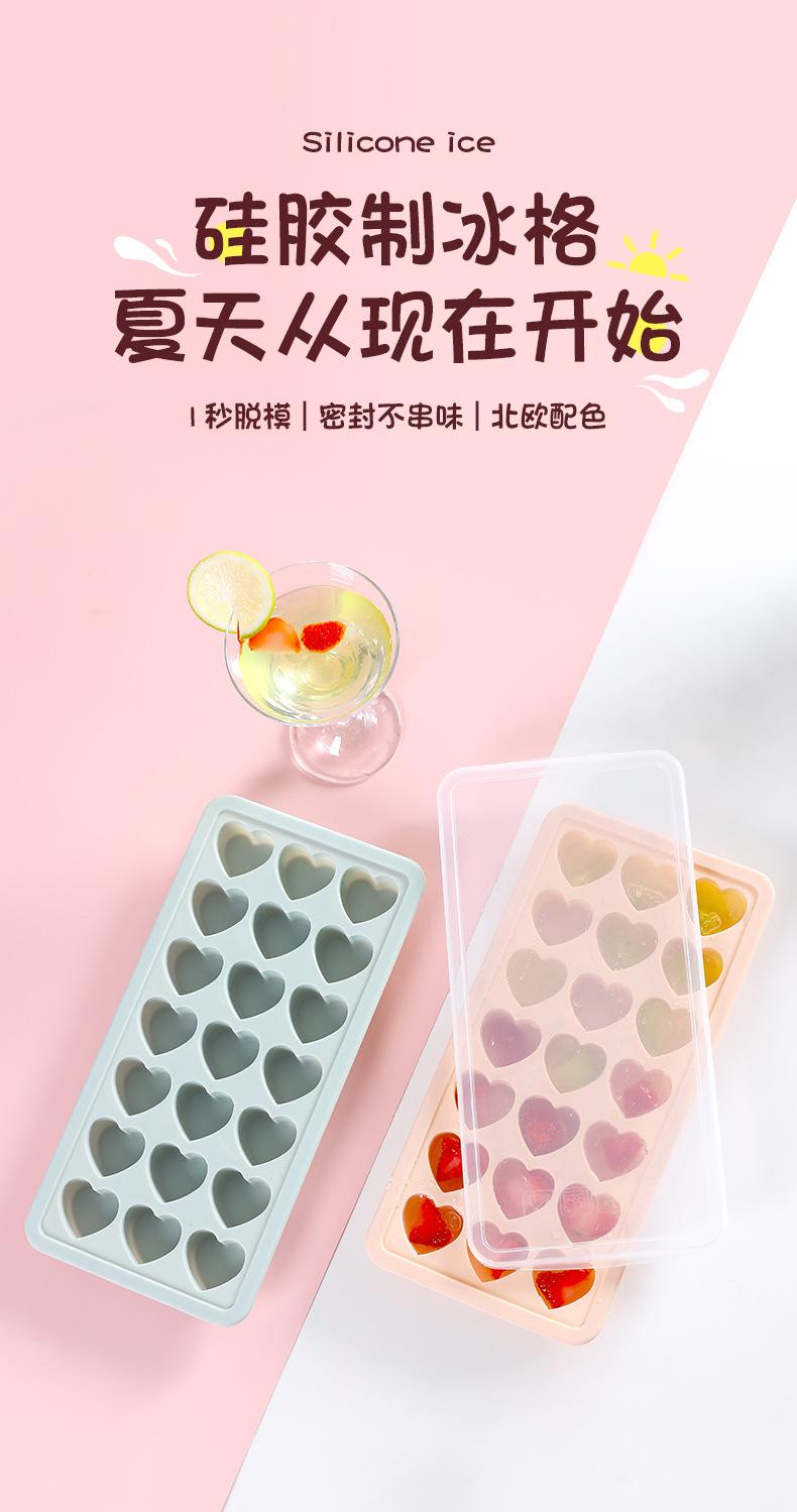 Hielera Creativa Molde para Cubitos de Hielo en Forma de Corazón Hielera Doméstica Congelada Hielera Cuadrada de Plástico Silicona con Tapa Caja para Suplementos Alimenticios DIY Venta al por Mayor