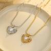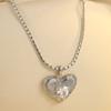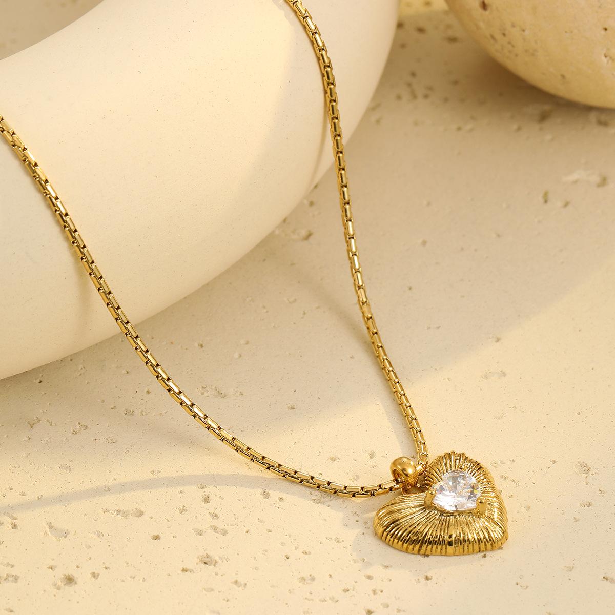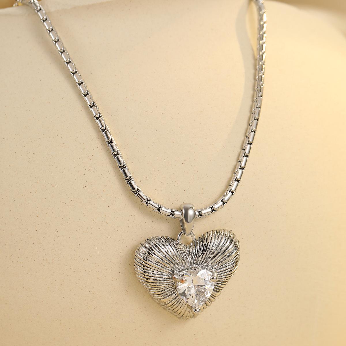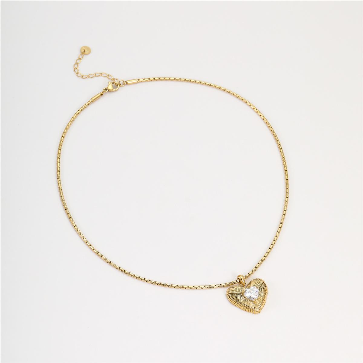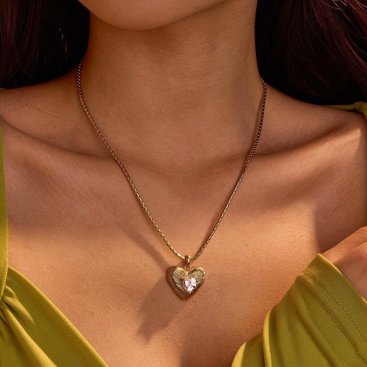 NIMAI Corazón Transfronterizo Corazón Corazón Colgante de Circonio de Color Rayado Collar de Acero Inoxidable Personalidad Collar de Moda Simple
