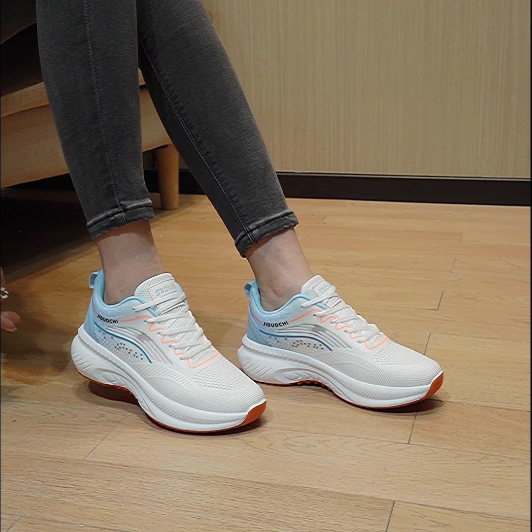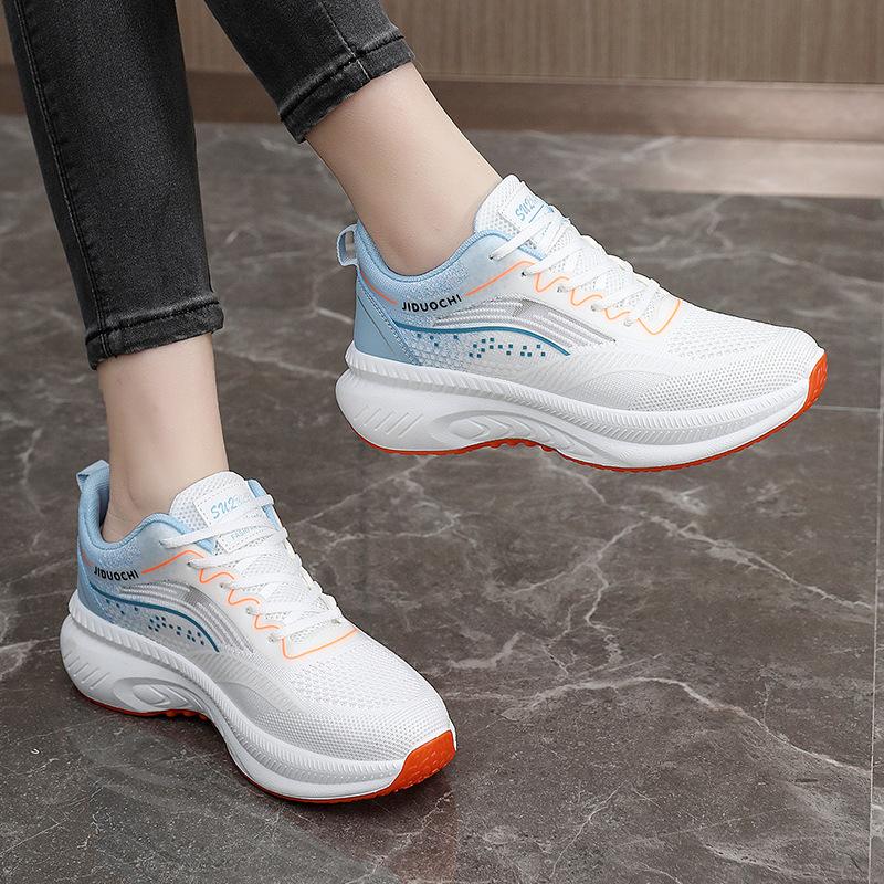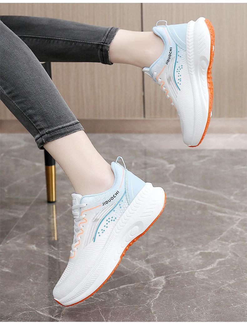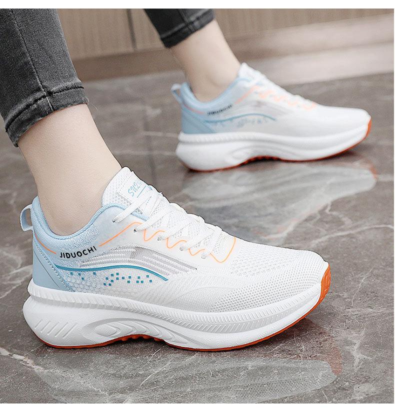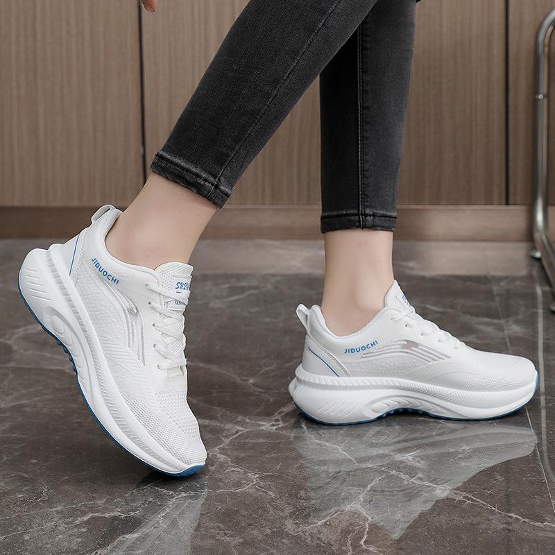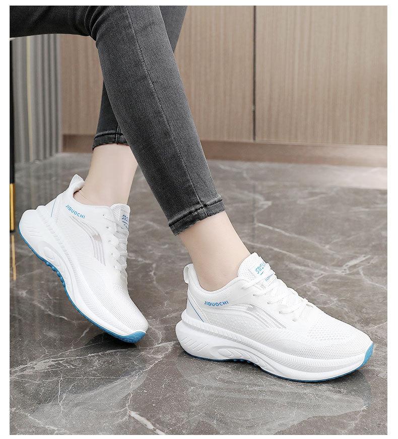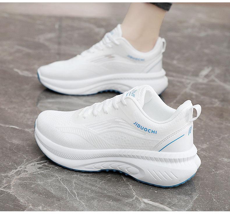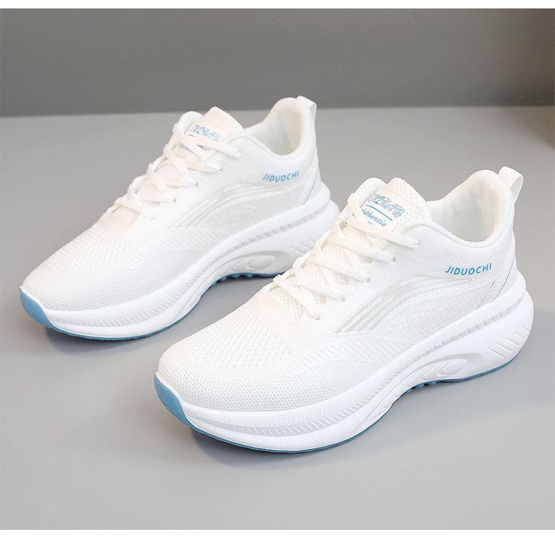 2025 verano nuevo deportes zapatos de mujer blanco moda casual suela gruesa zapatos pequeños blancos malla suave transpirable zapatos para caminar