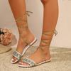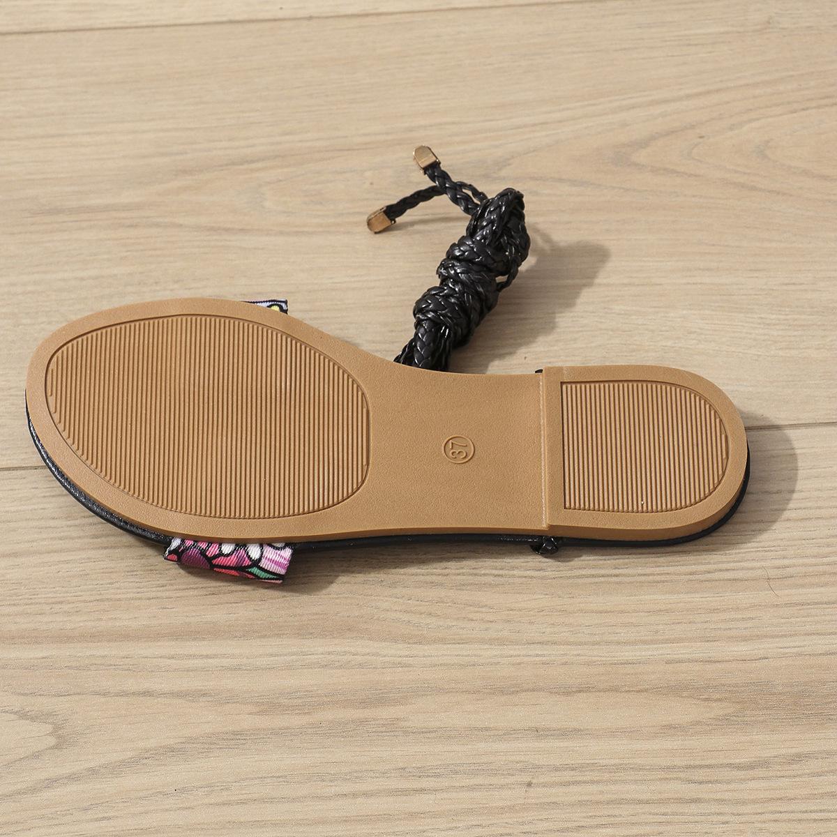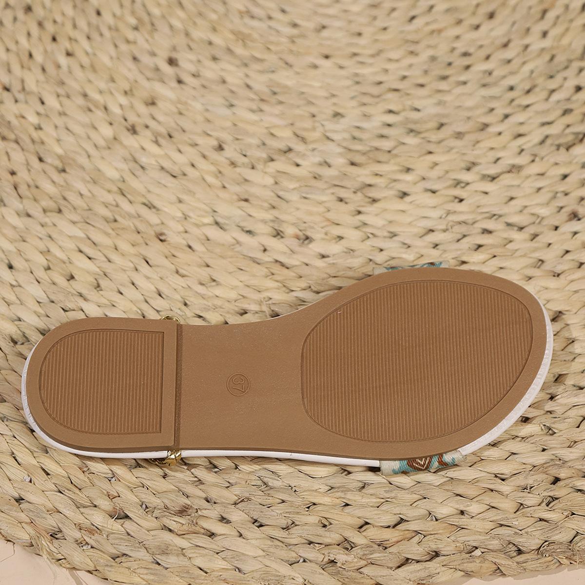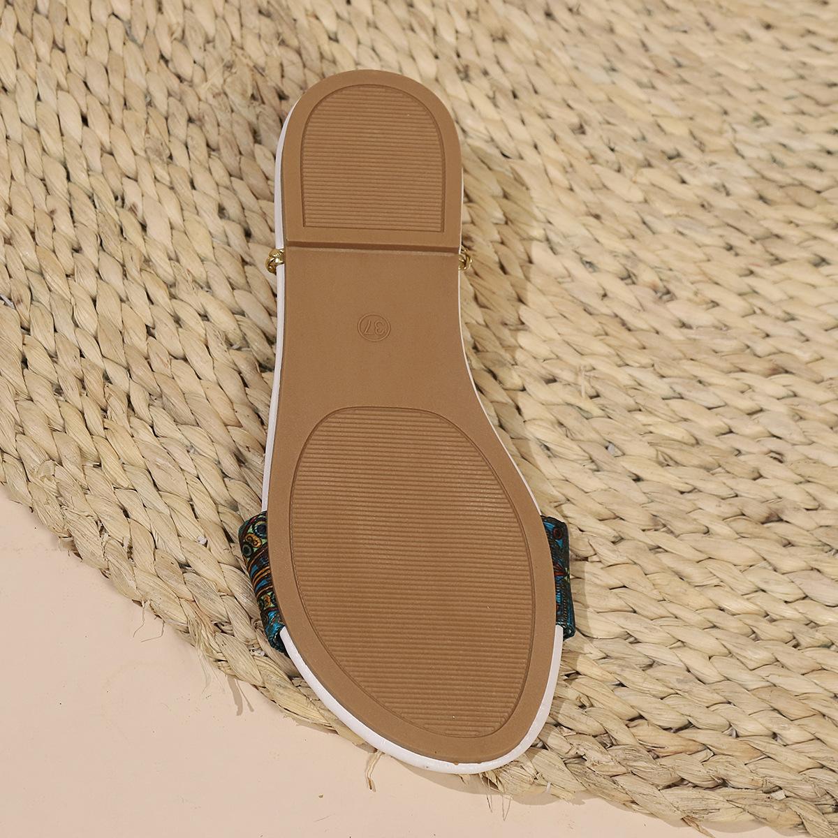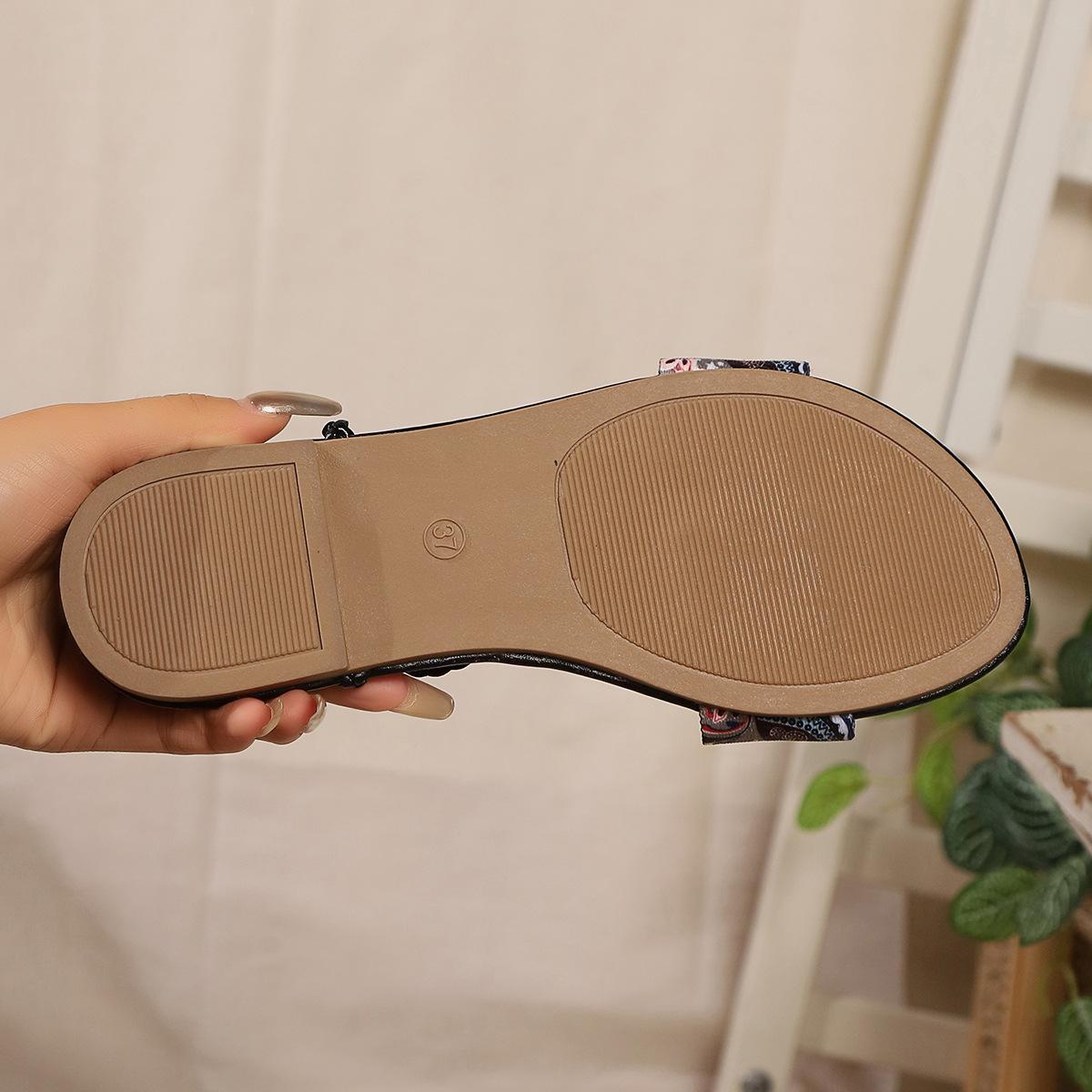 Sandalias planas casuales para mujer 2025 verano nueva llegada estampadas de dedo romano estilo retro coloridas con tiras talla grande