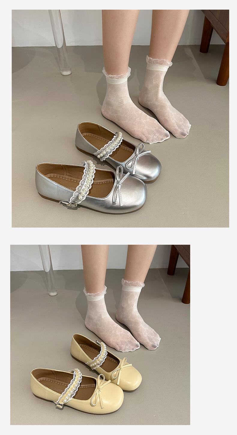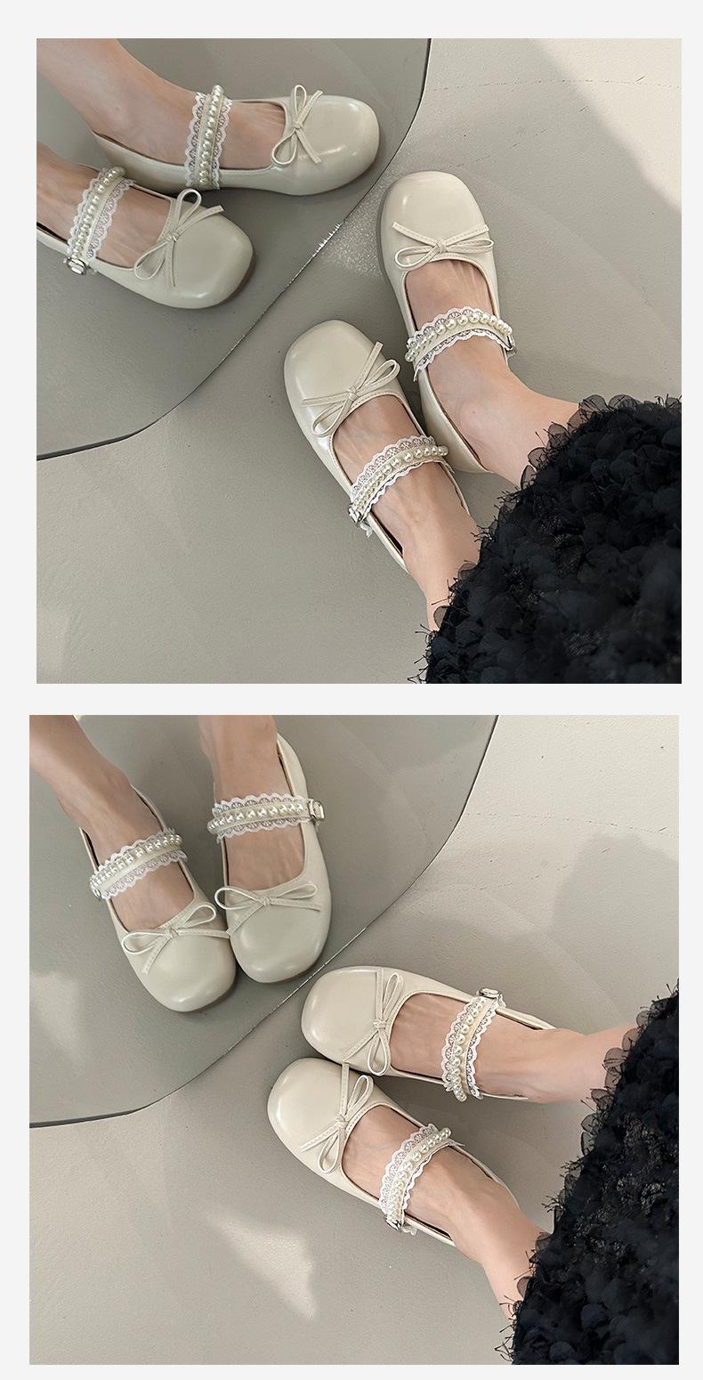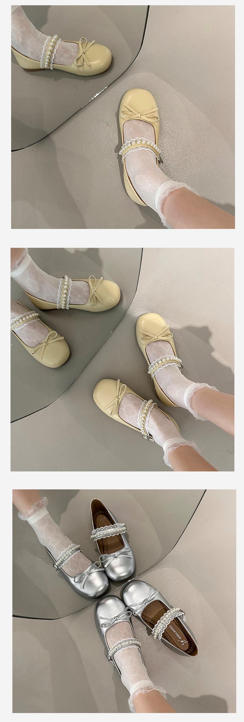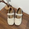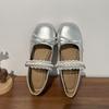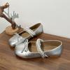 Zapatos Mary Jane de Lazo Plateado Primavera/Verano 2025 Correa de Perla Francesa Boca Baja Tacones que Aumentan la Altura