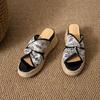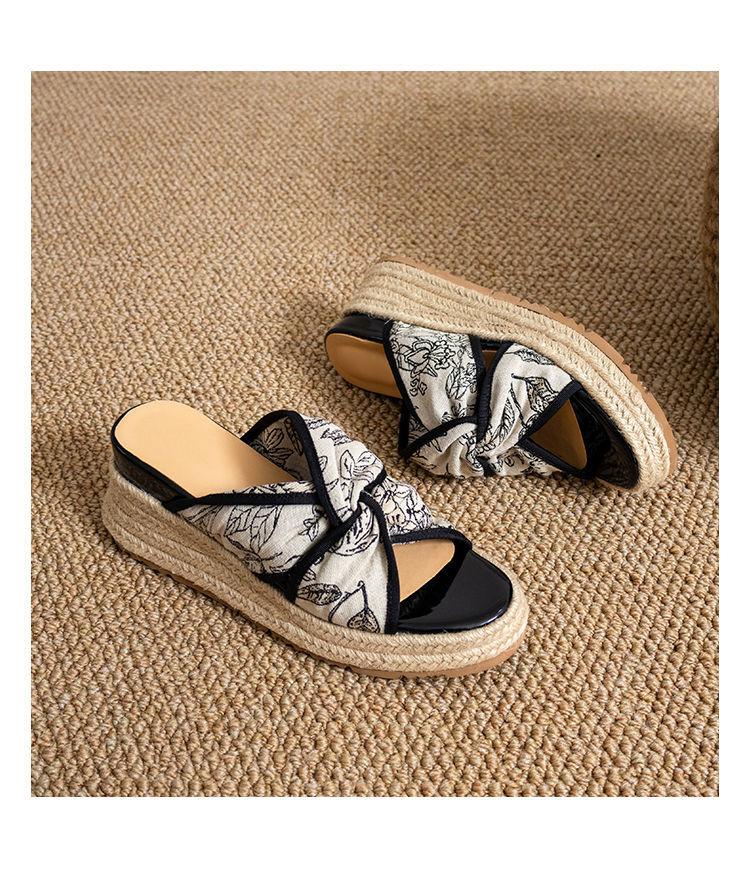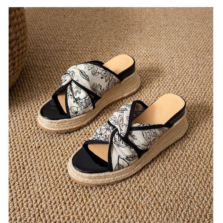 Zapatillas Retro Bordadas con Cuña para Mujer Verano 2025 Nuevos Zapatos de Playa para Exterior que Aumentan la Altura Sandalias de Tacón Alto con Punta Abierta