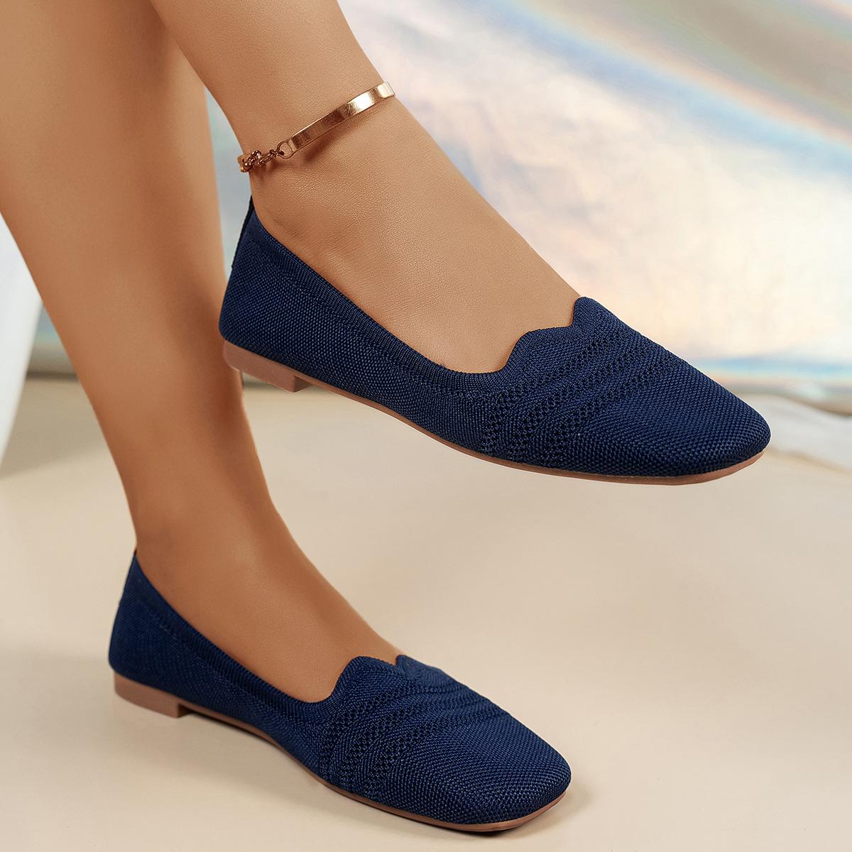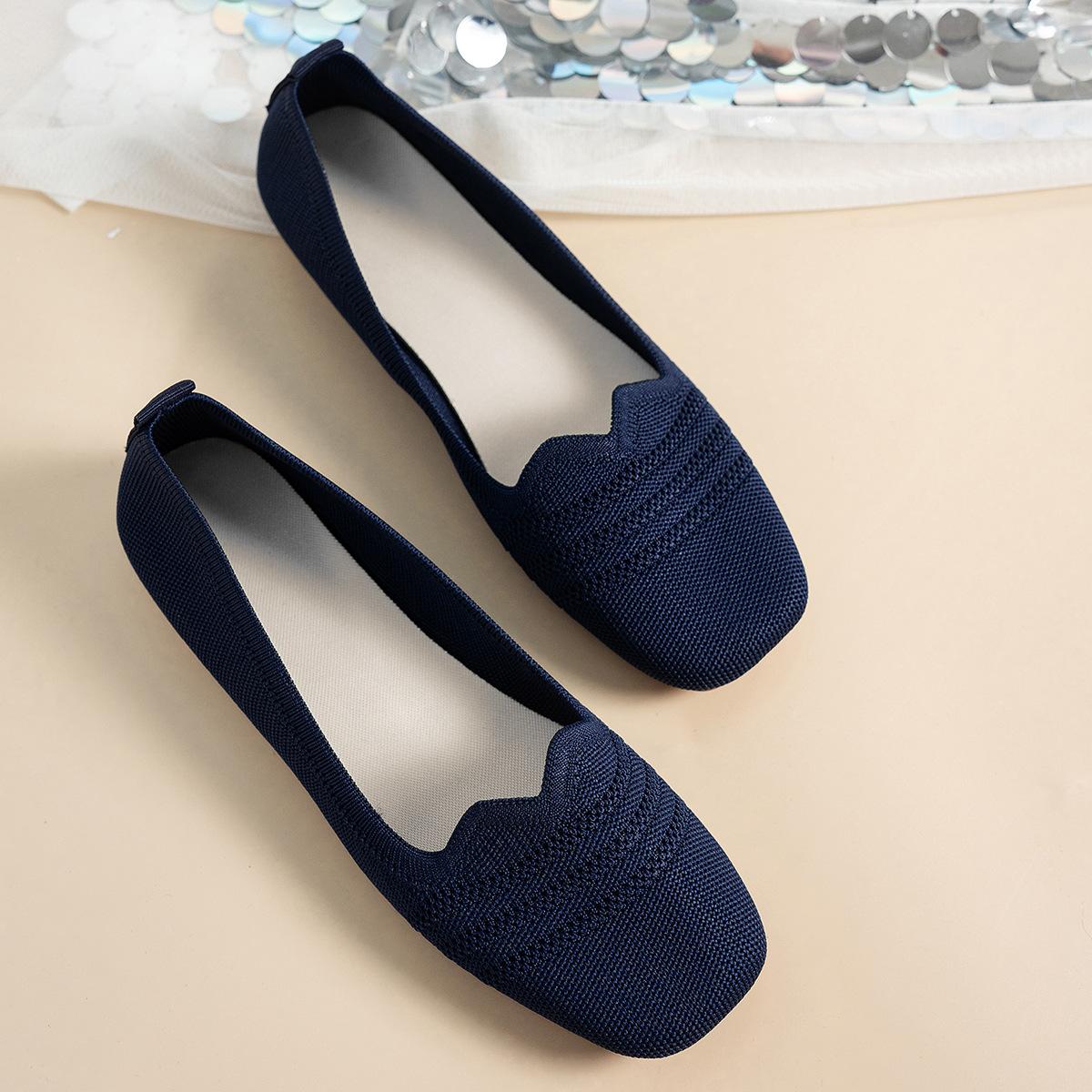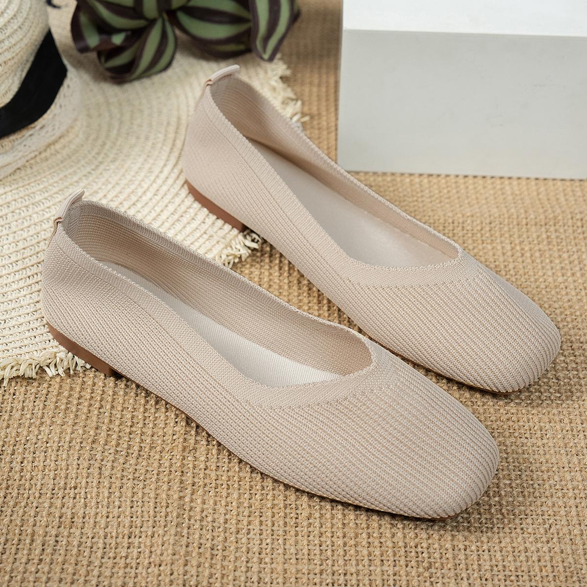 Zapatos de Moda para Mujer talla grande 2025 Nuevos Punta Cuadrada Cómodos Planos Suela Suave Poco Profundos Casuales Tejidos