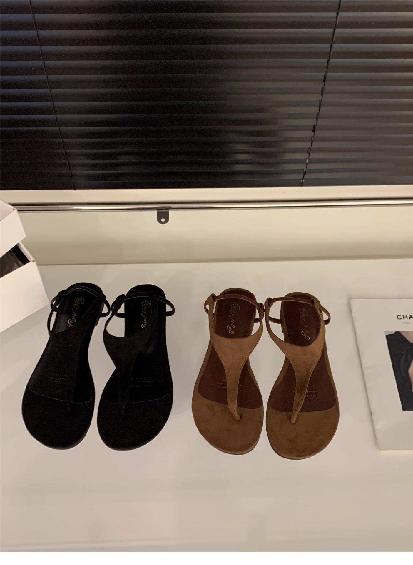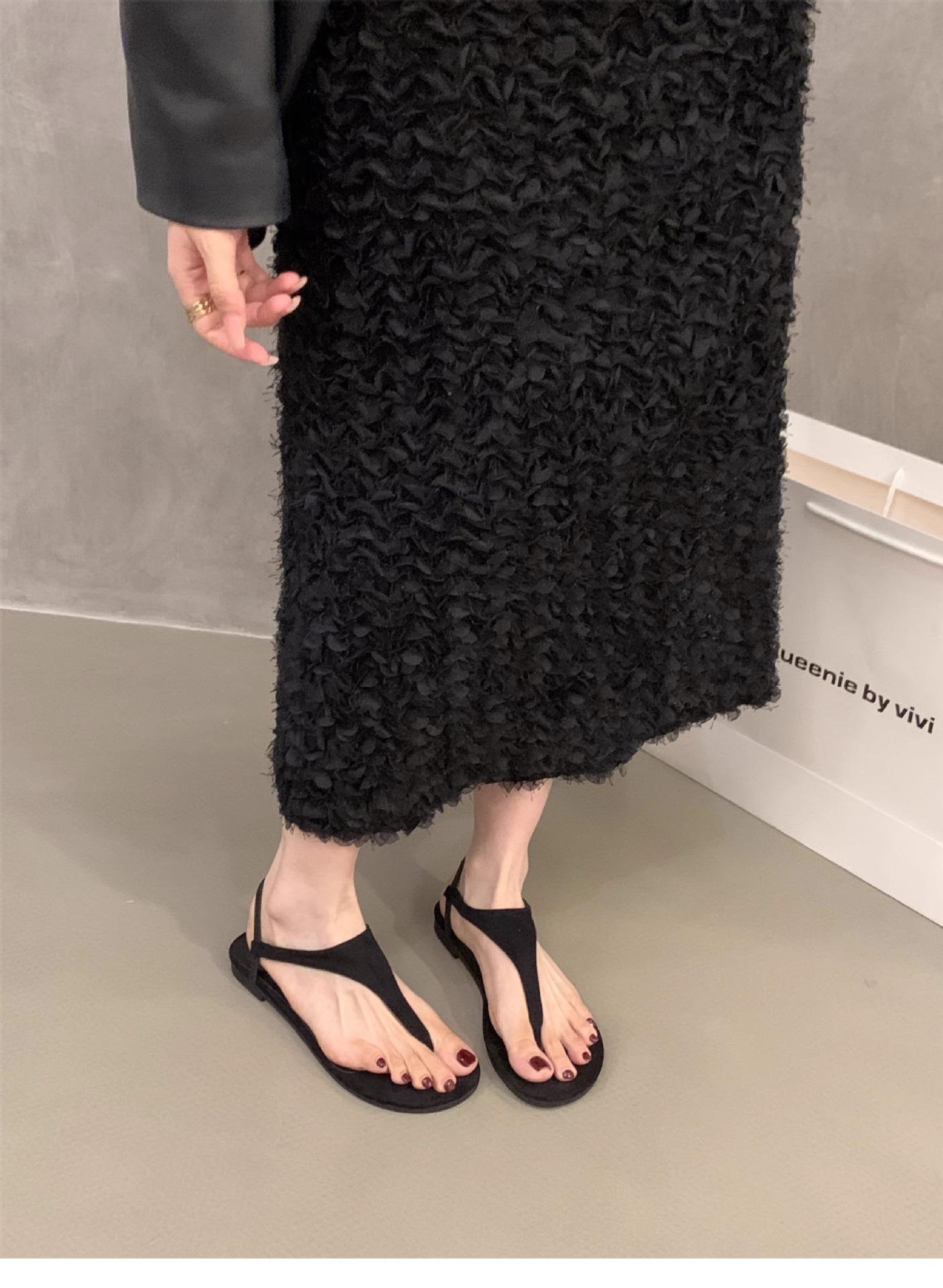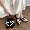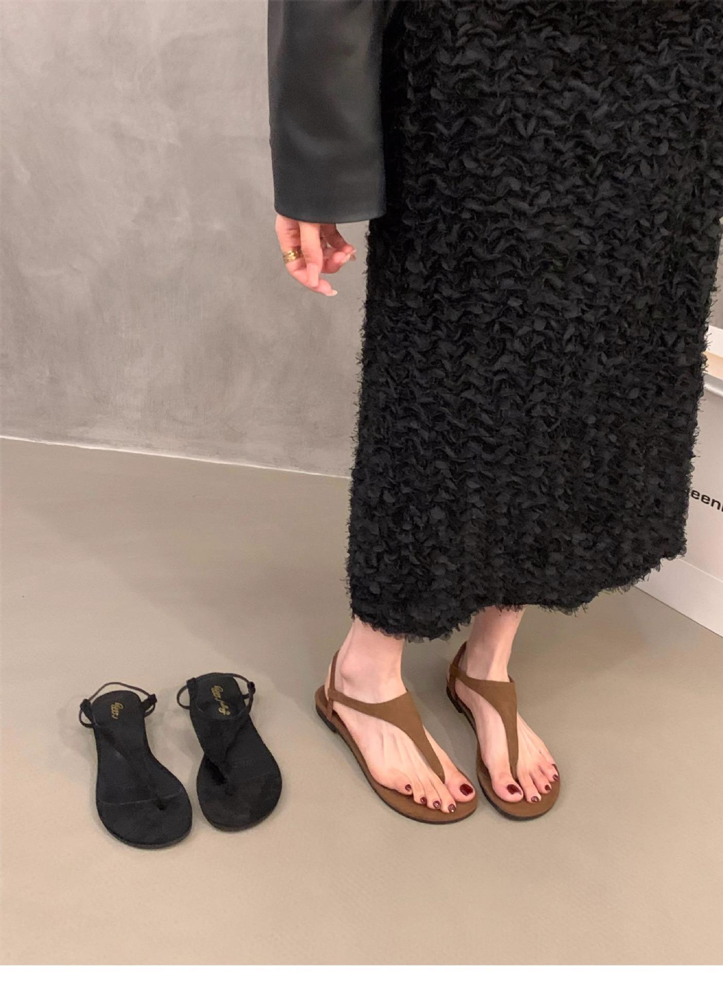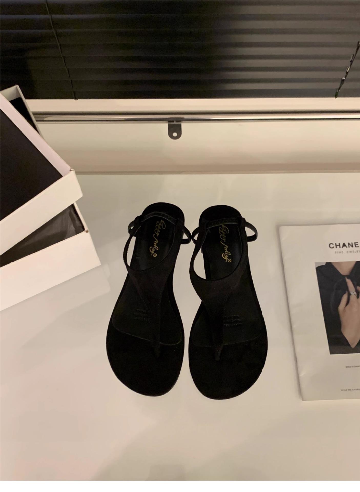 2025 Nuevo Verano Negro Versátil Playa Romanos Zapatos Planos Retro Estilo Vacacional Sandalias Flip-Up Zapatos de Hada
