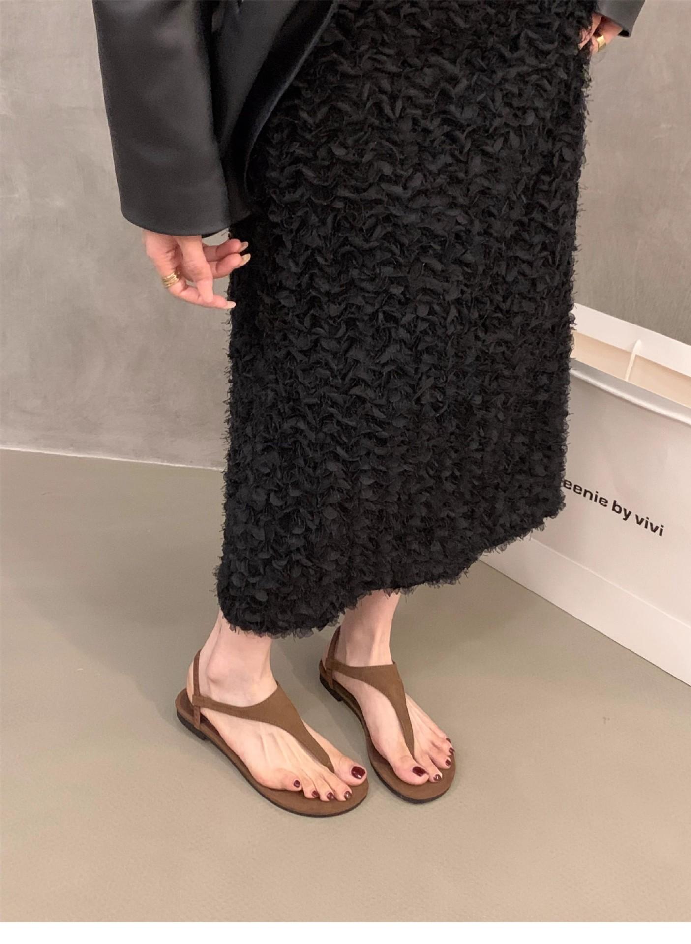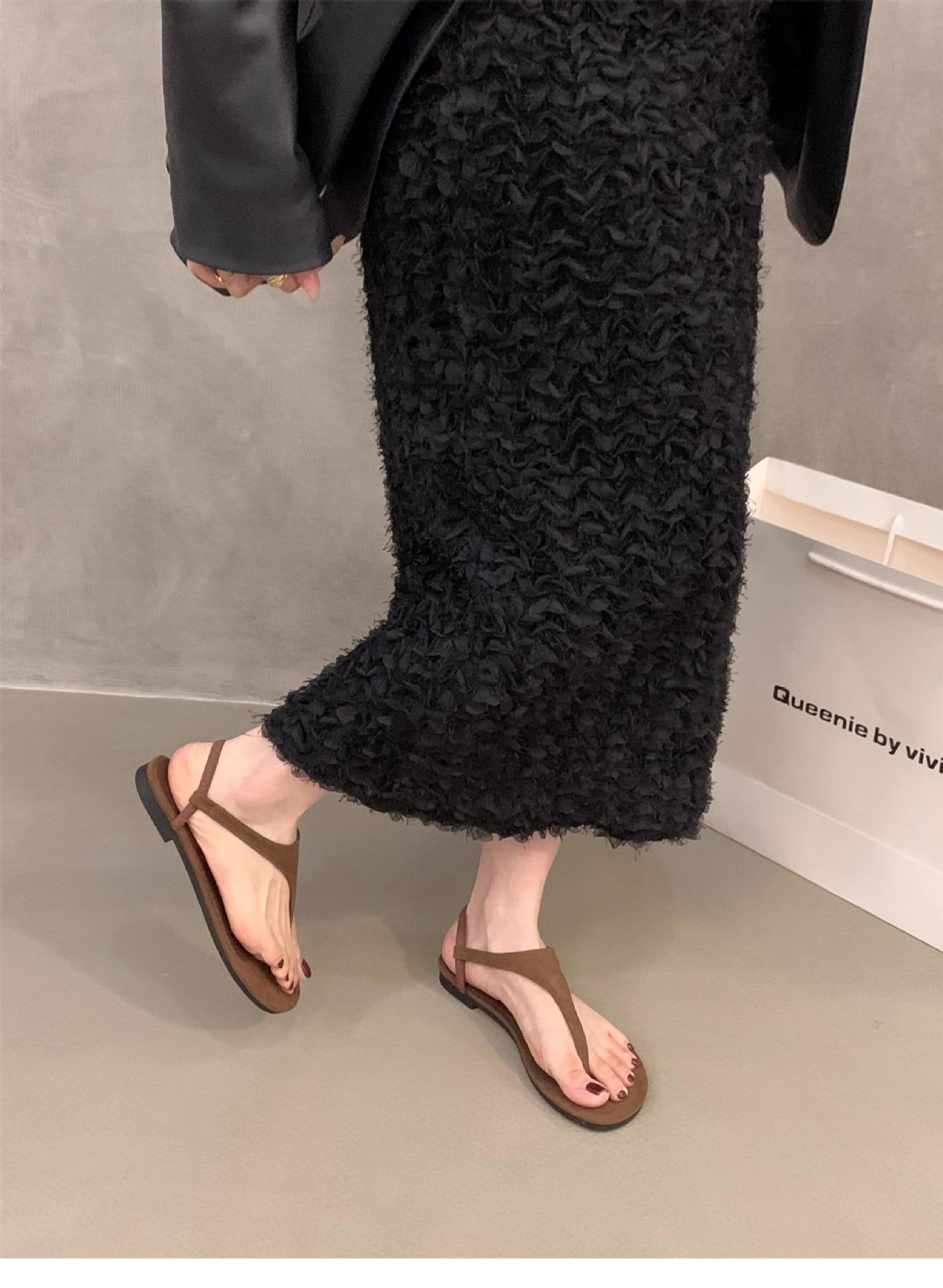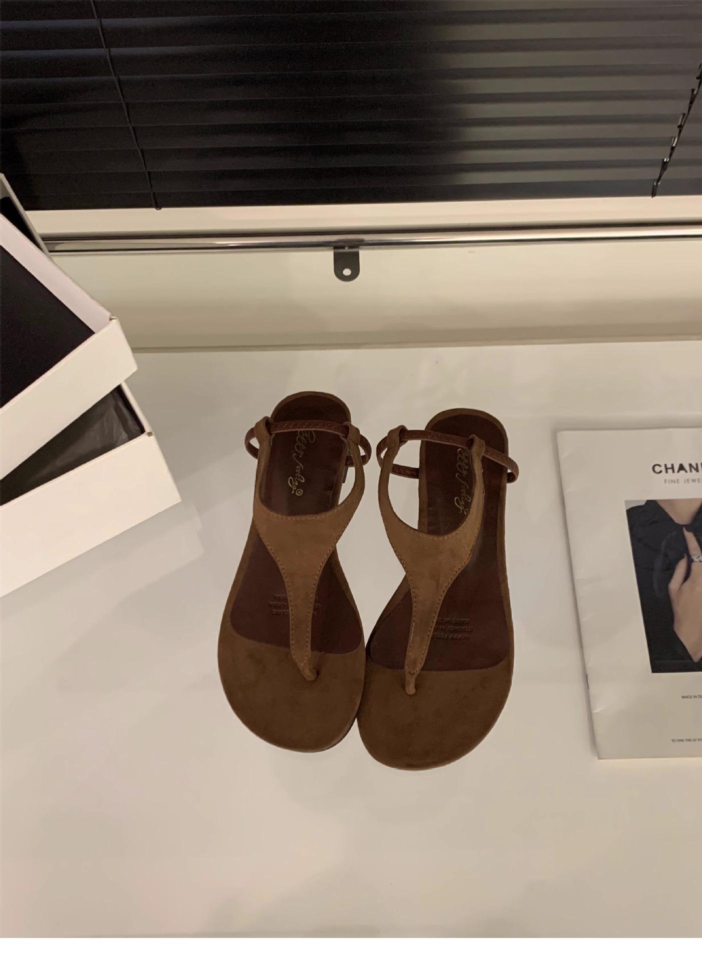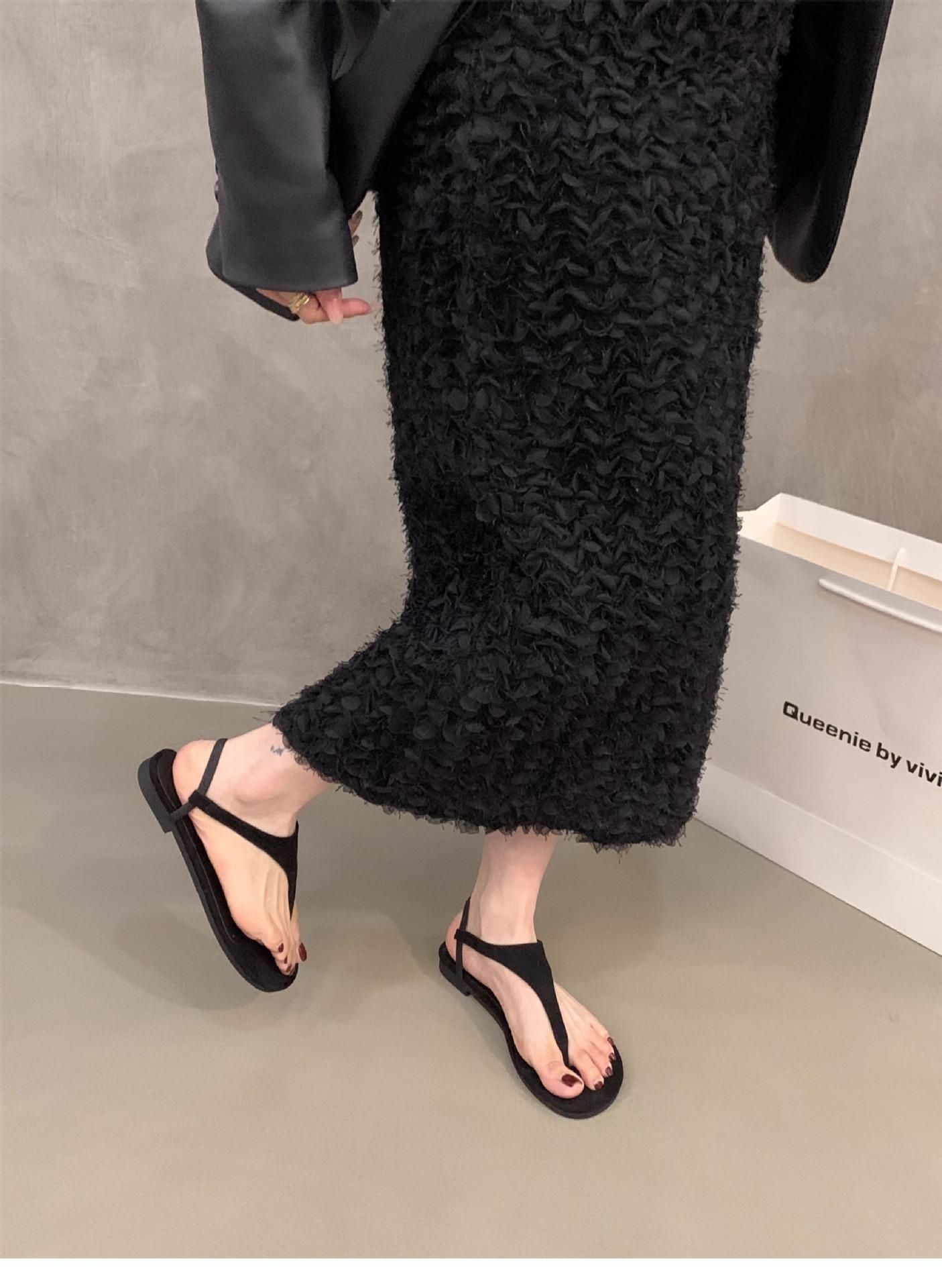 2025 Nuevo Verano Negro Versátil Playa Romanos Zapatos Planos Retro Estilo Vacacional Sandalias Flip-Up Zapatos de Hada