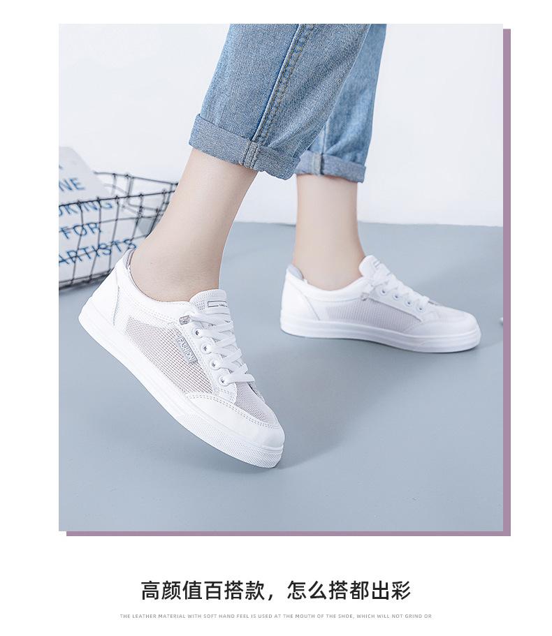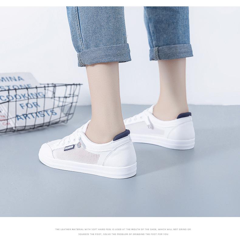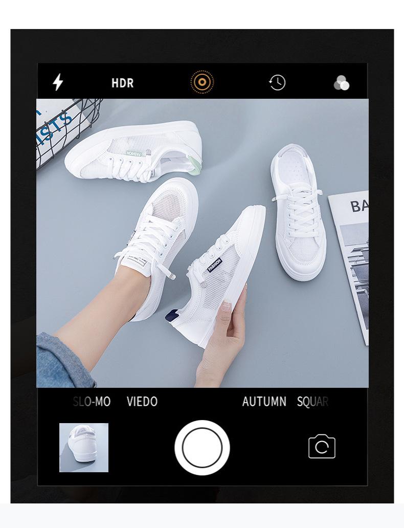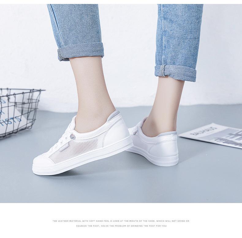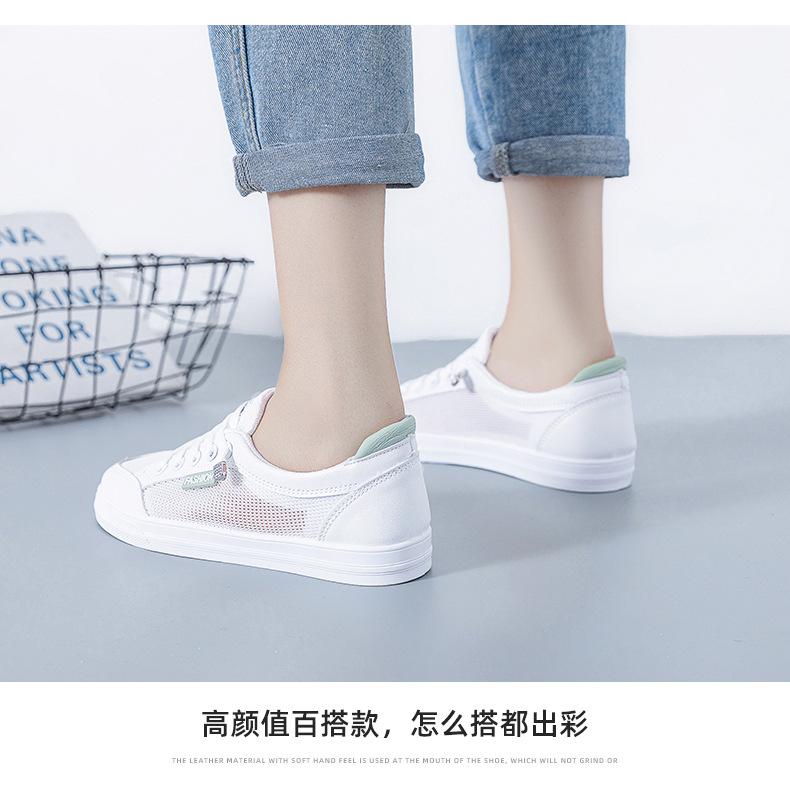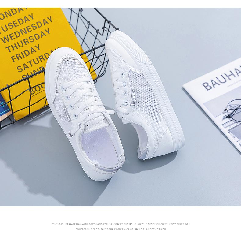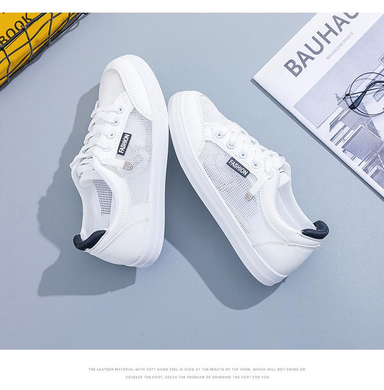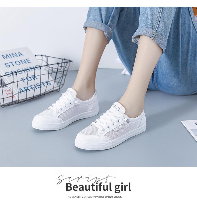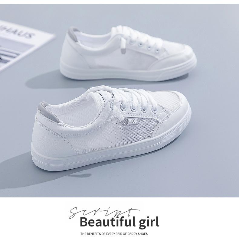 Zapatos Blancos de Mujer Primavera y Verano 2025 Nuevo Estilo Zapatos de Malla Superficie de Malla Transpirable Versátiles Zapatillas Planas Casuales Delgadas para Primavera y Otoño