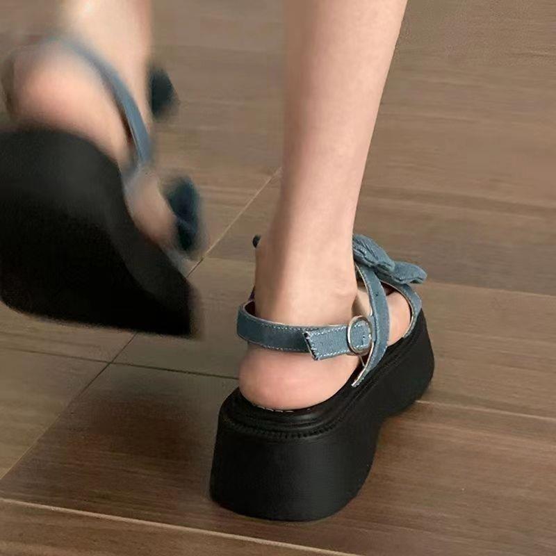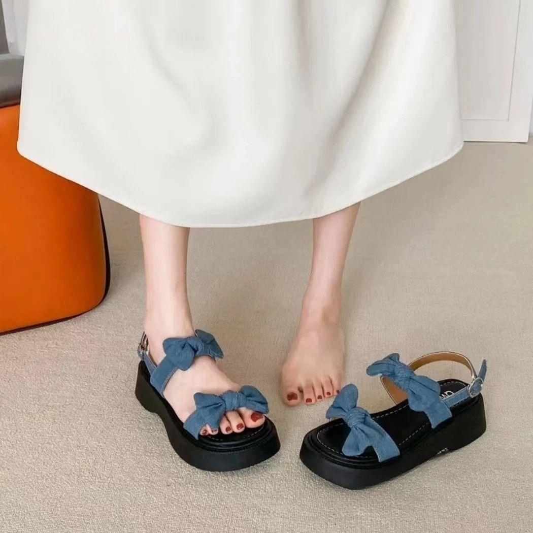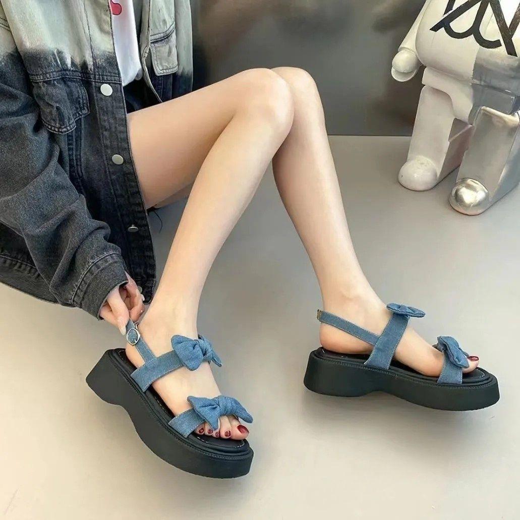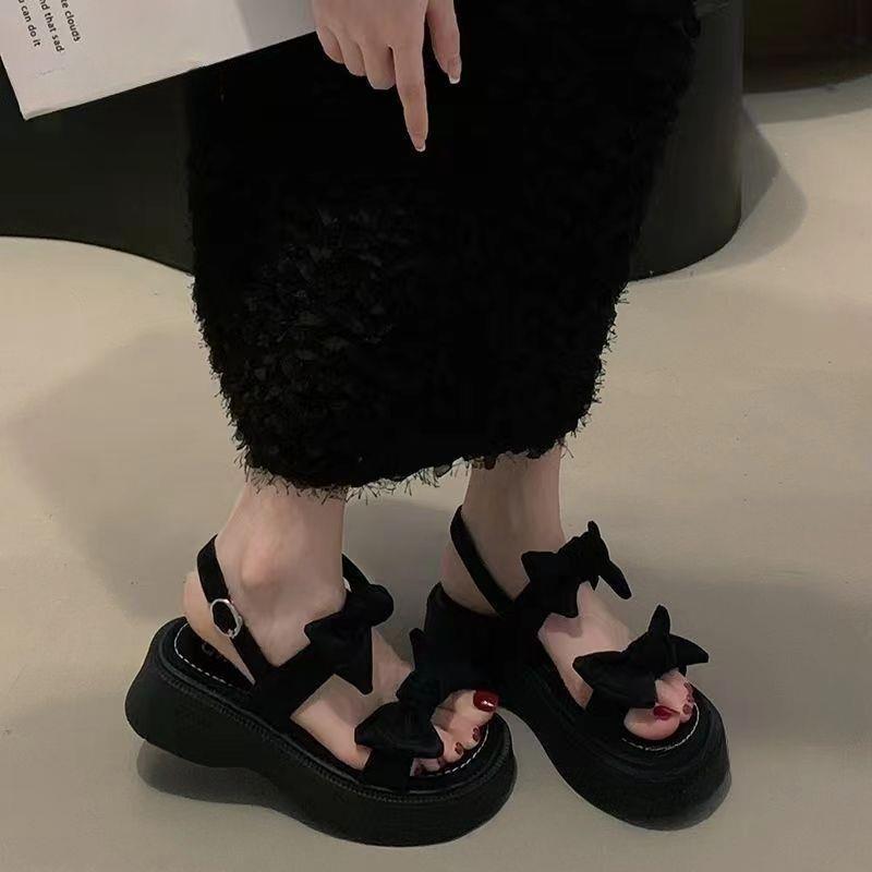 Sandalias de Suela Gruesa Estilo Romano para Mujer 2023 Verano Nuevo Combinación Total Lazo de Hada Antideslizantes Zapatos de Playa